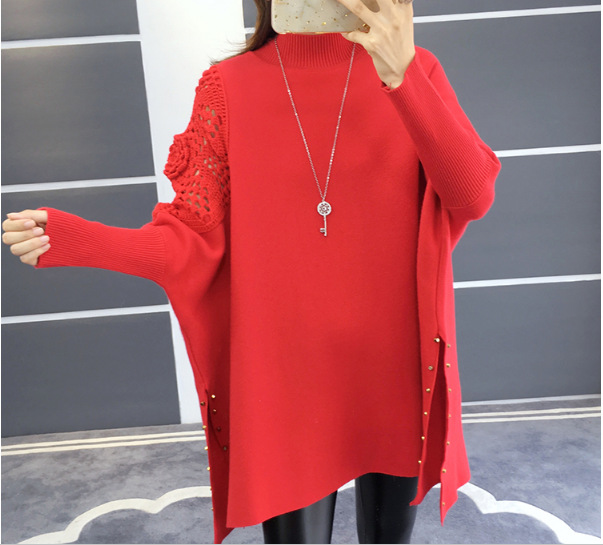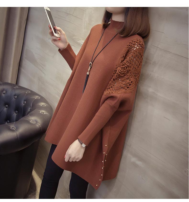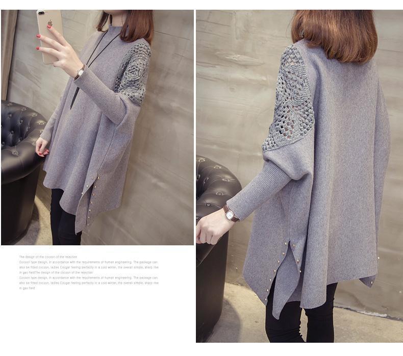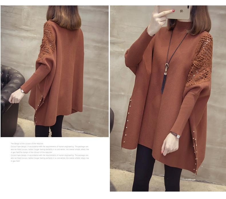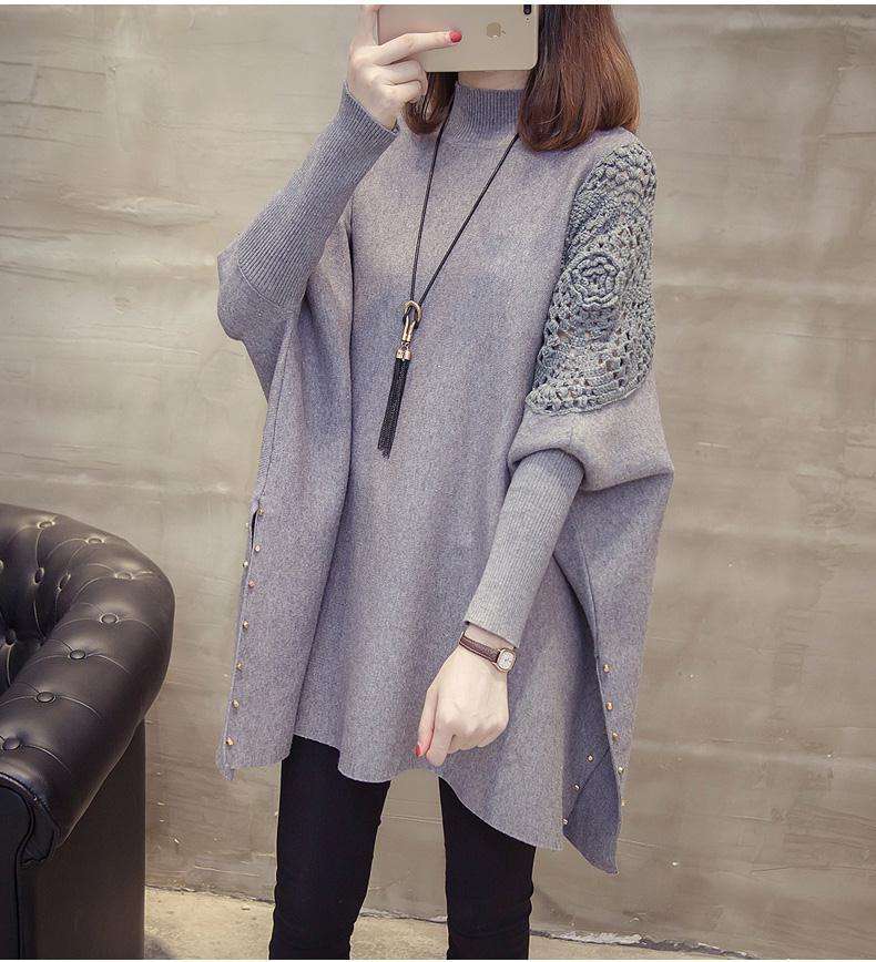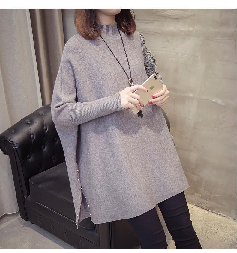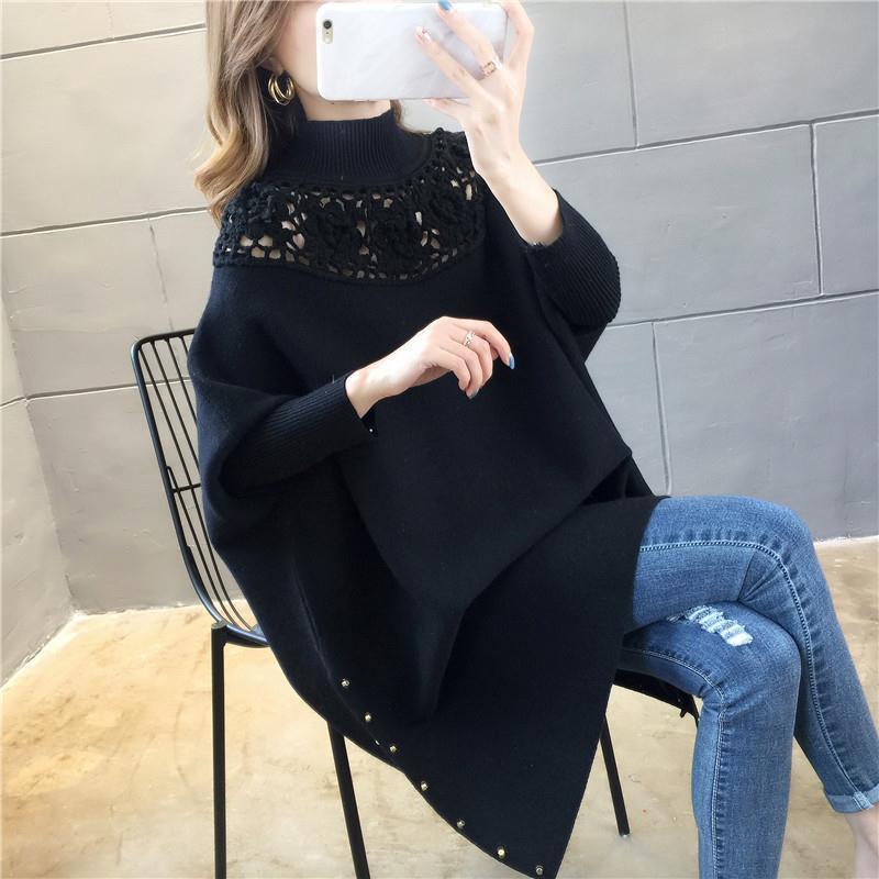 가을과 겨울 새로운 중간 길이 배트모빌 셔츠 반 터틀넥 스웨터 니트웨어 느슨한 플러스 사이즈 숄 판초 여성의 두꺼운 코트스토어 가기