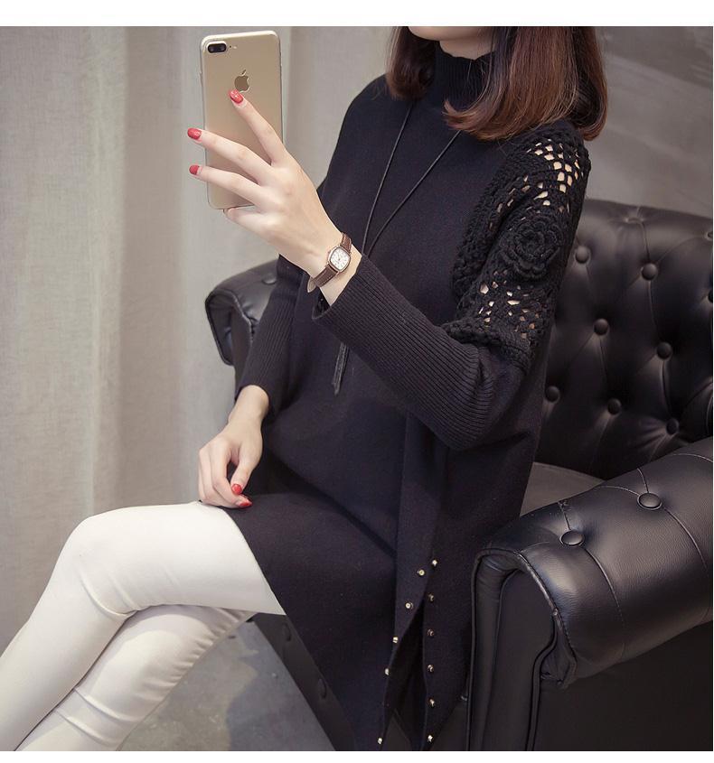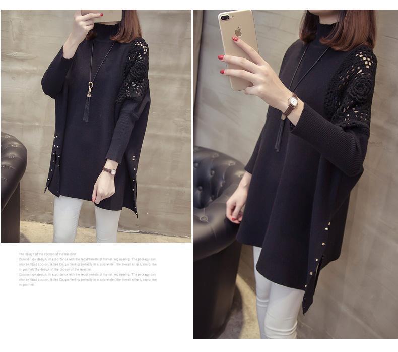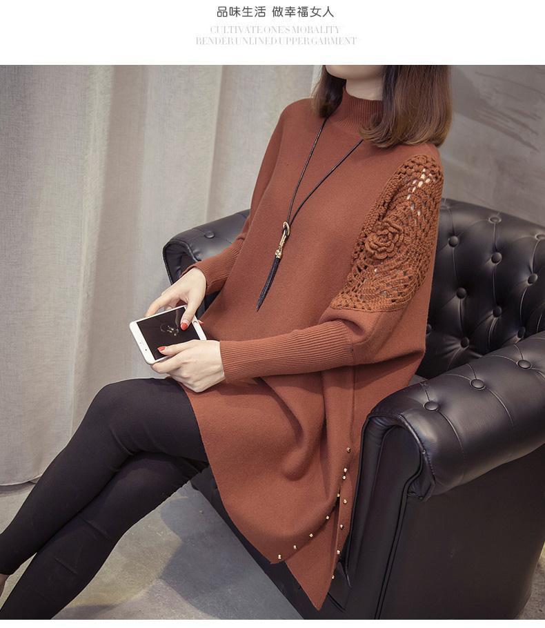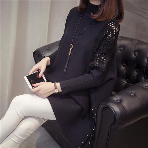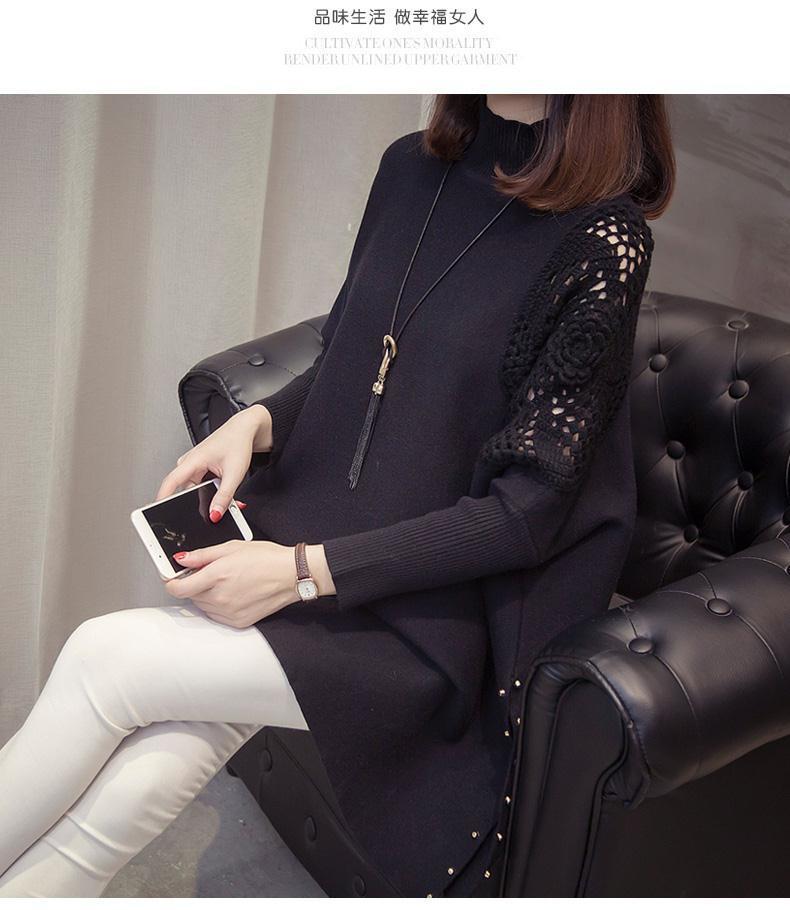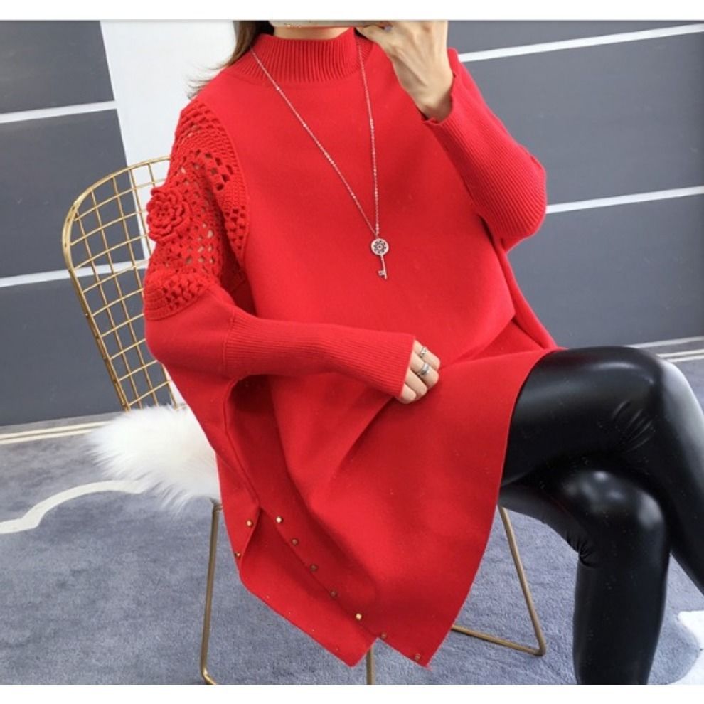 가을과 겨울 새로운 중간 길이 배트모빌 셔츠 반 터틀넥 스웨터 니트웨어 느슨한 플러스 사이즈 숄 판초 여성의 두꺼운 코트스토어 가기