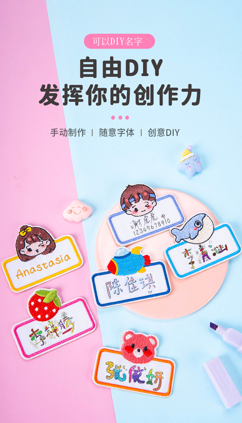 원래 수업 만들기 이름 스티커 입학복 초등학교 중학교 이름 스티커 수 놓은 수 놓은 천 스티커 학생 번호 스티커스토어 가기