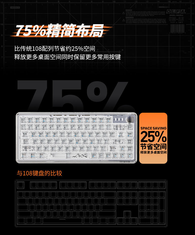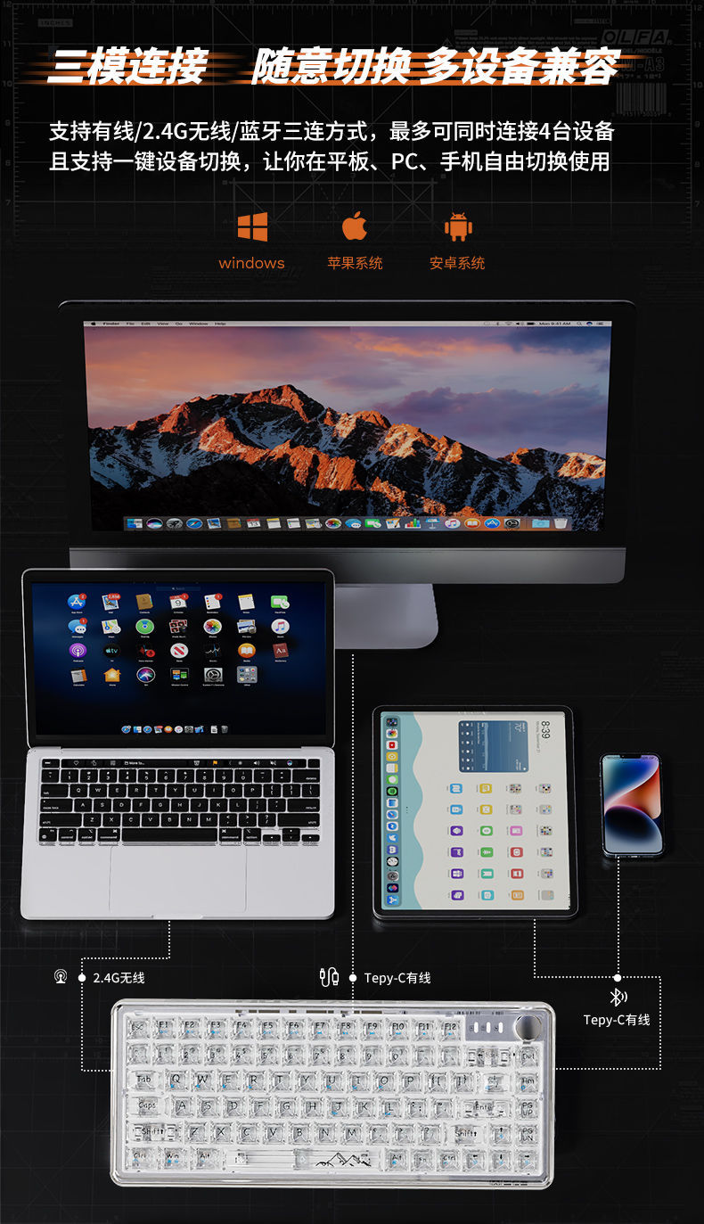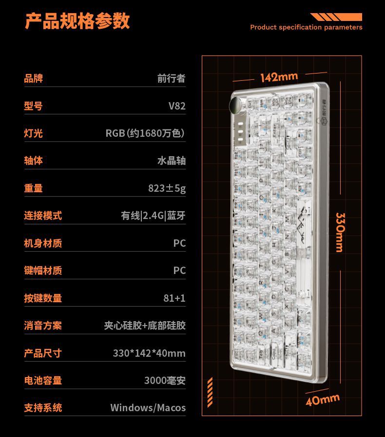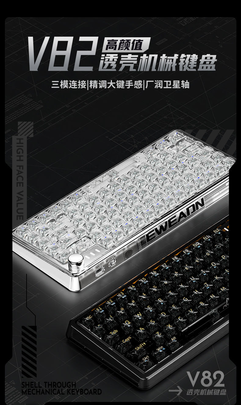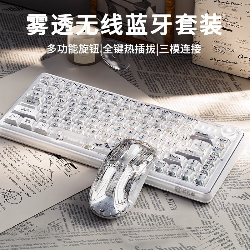 선두 주자 V82 크리스탈 안개 무선 기계식 키보드 여자 사무실 게임 아이스 블록 블루투스 세 모델 75% 일치스토어 가기