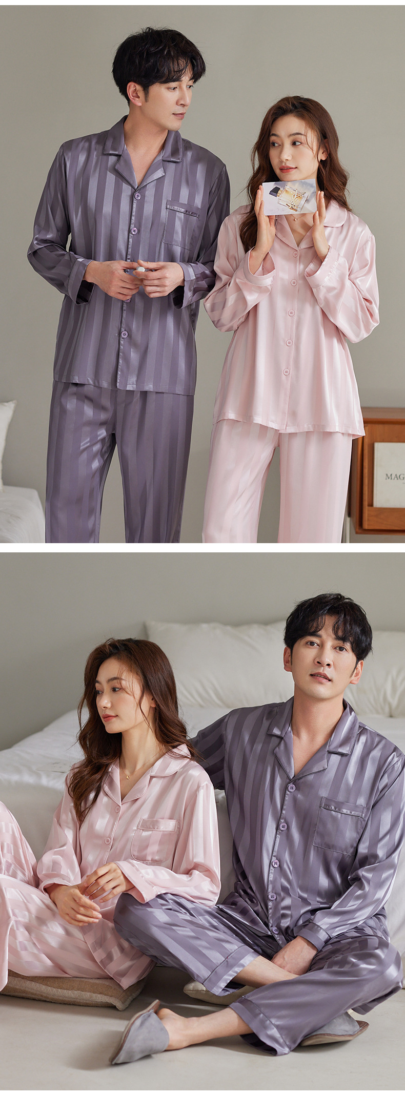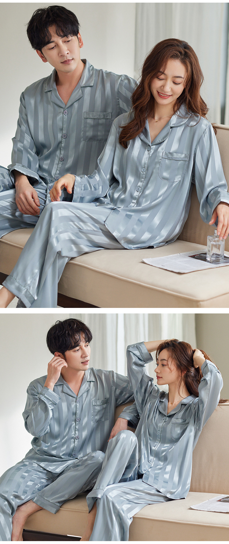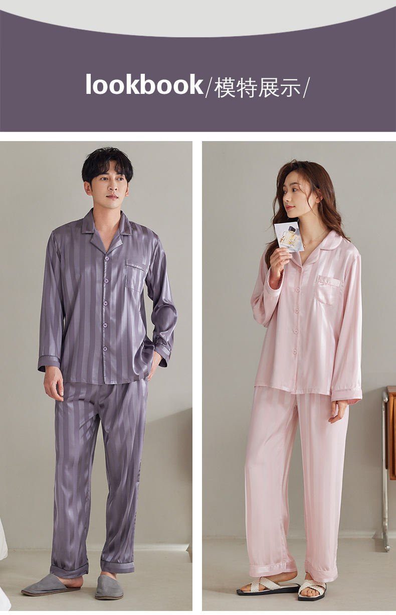커플 아이스 실크 잠옷 남성과 여성의 고급 긴팔 봄과 가을 투피스 세트 여름 여성 모조 실크 가정복스토어 가기