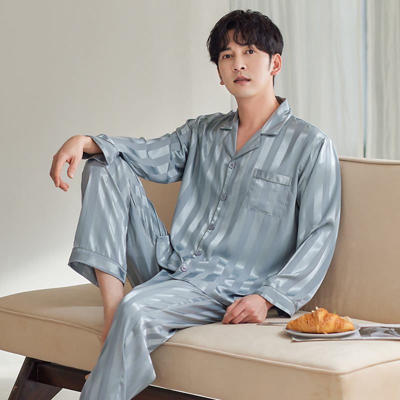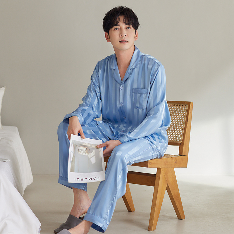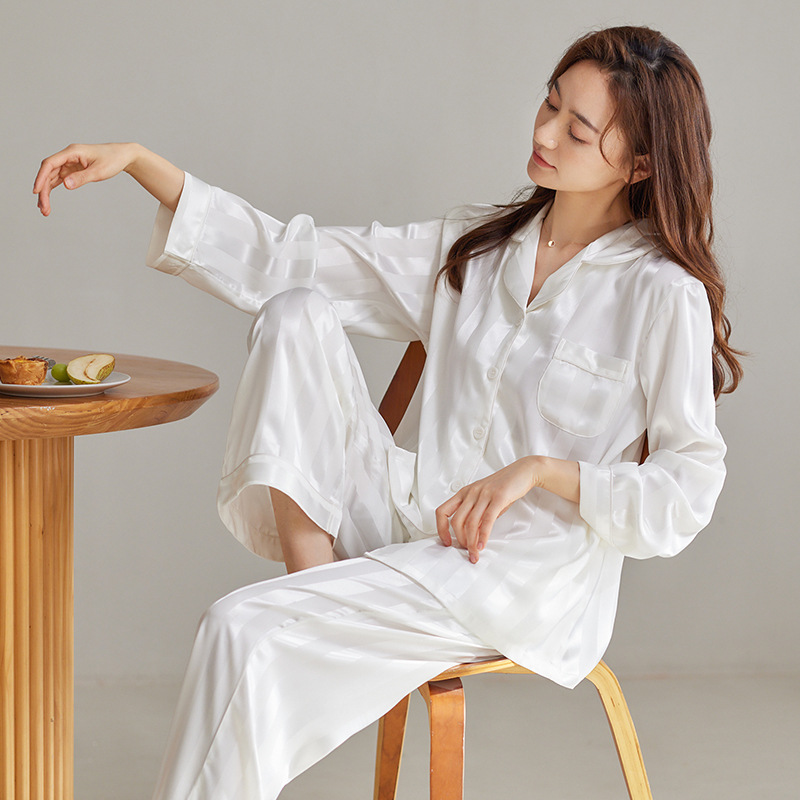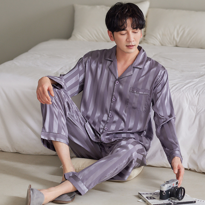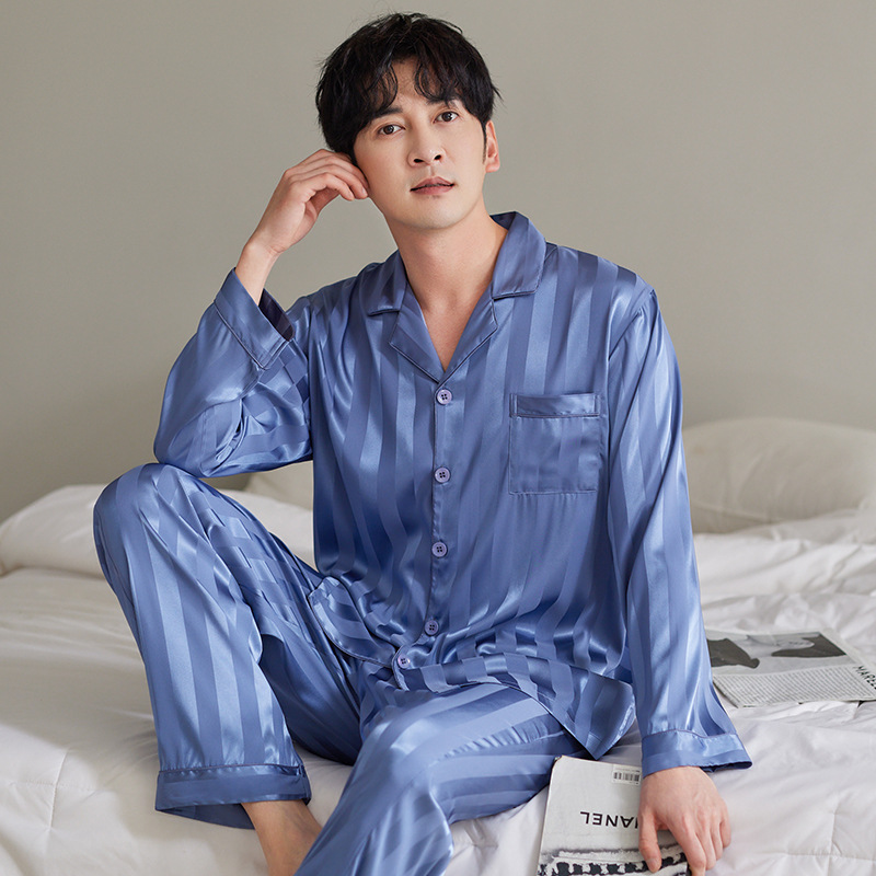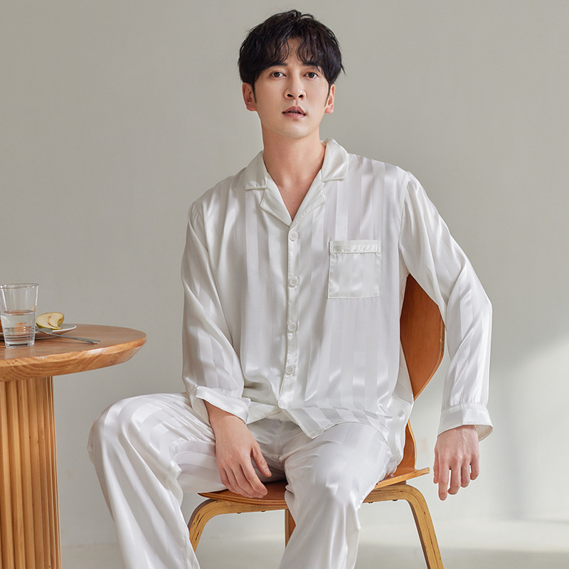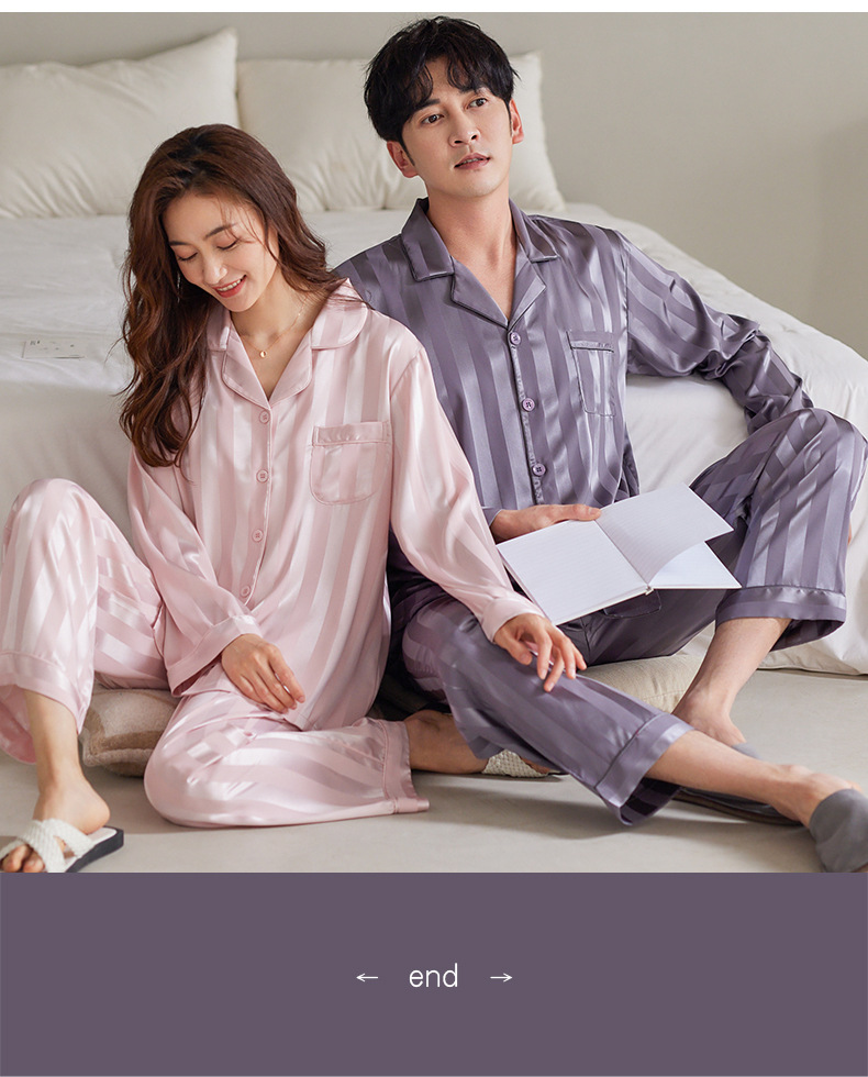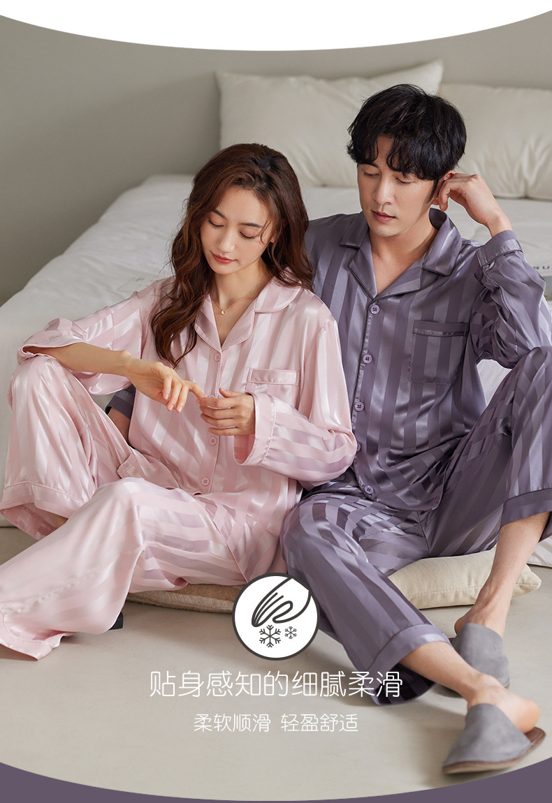 커플 아이스 실크 잠옷 남성과 여성의 고급 긴팔 봄과 가을 투피스 세트 여름 여성 모조 실크 가정복