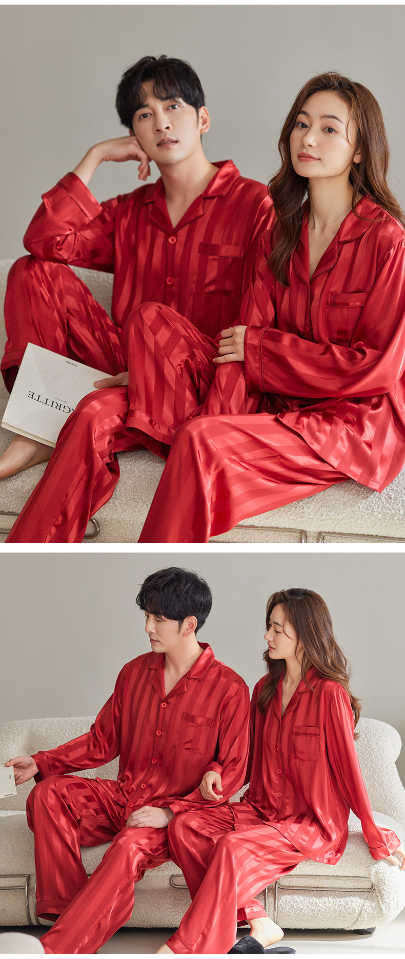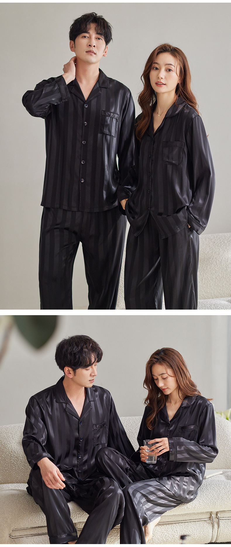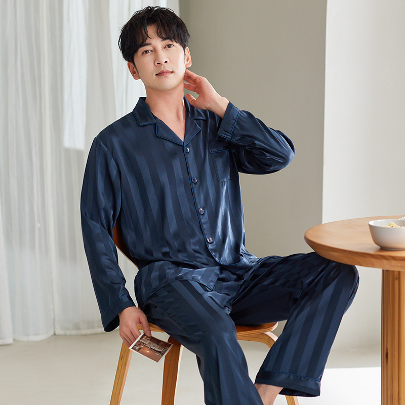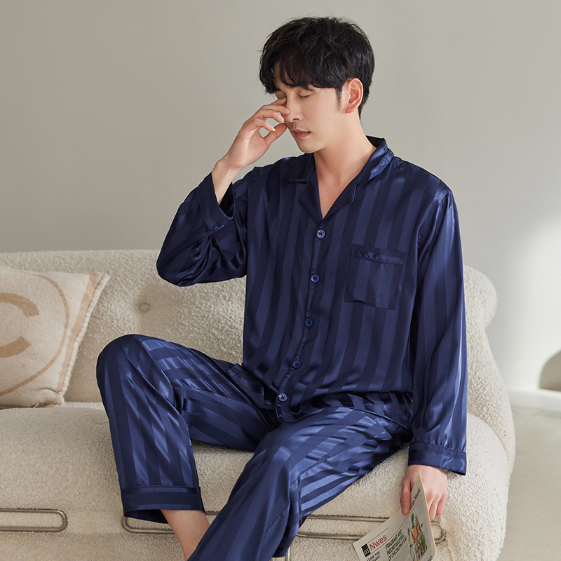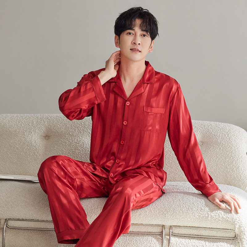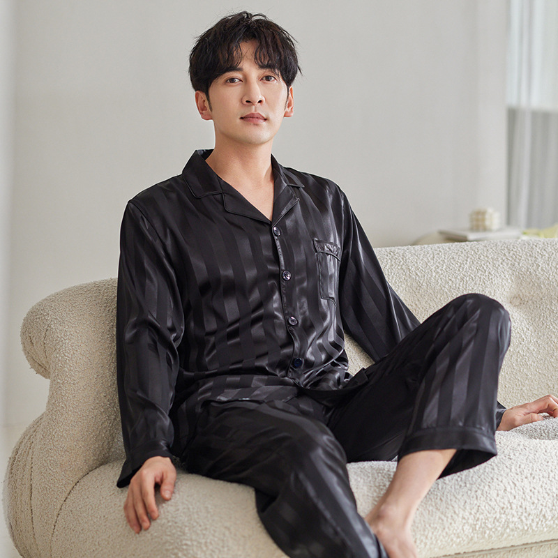 커플 아이스 실크 잠옷 남성과 여성의 고급 긴팔 봄과 가을 투피스 세트 여름 여성 모조 실크 가정복