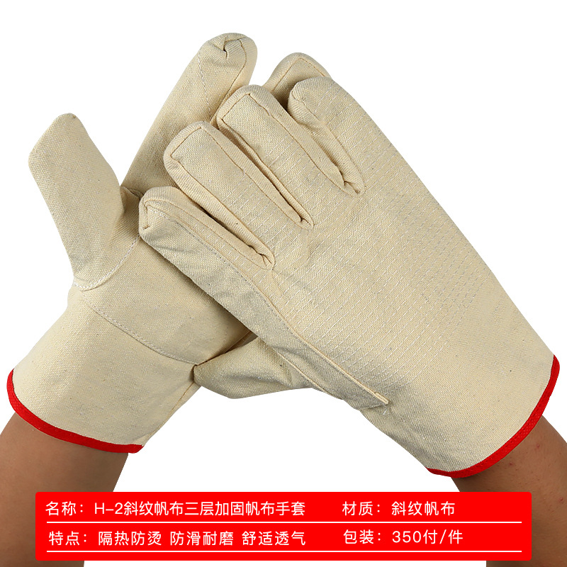노동 보호 용접기 장갑 2 층 강화 내마모성 내유성 단열 능직 캔버스 3 층 강화 캔버스 장갑 도매