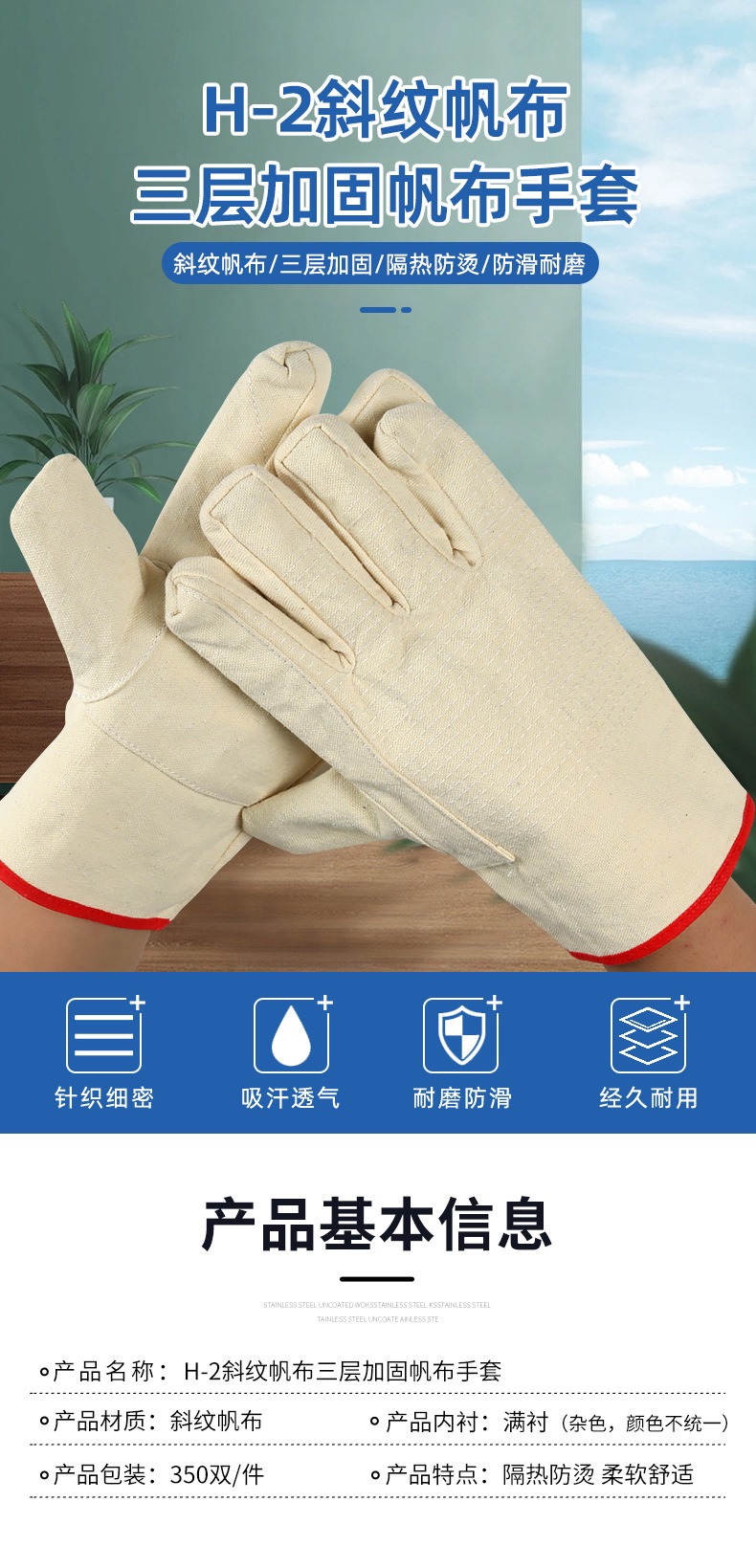 • H-6 능직 캔버스 3 층 강화 캔버스 장갑 6