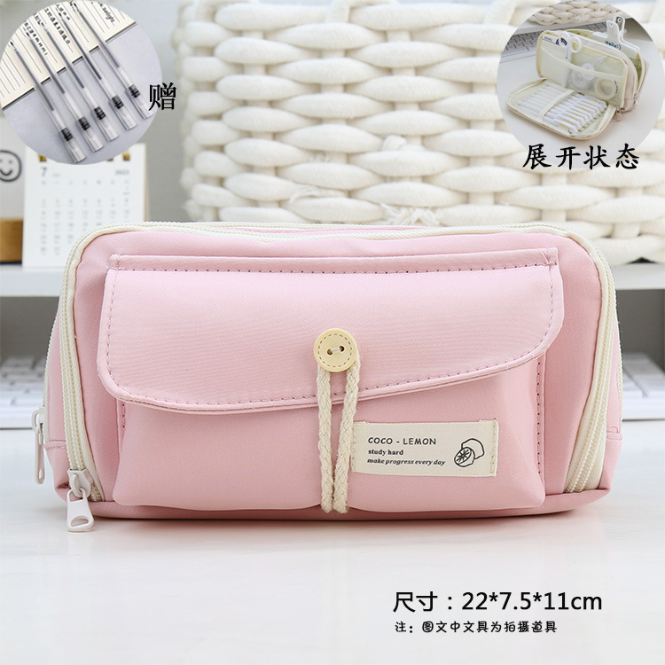 코튼 로프 스토리 대용량 학생 새로운 하이 컬러 값 연필 가방 간단한 일본 중학교 학생 문구 가방 필통