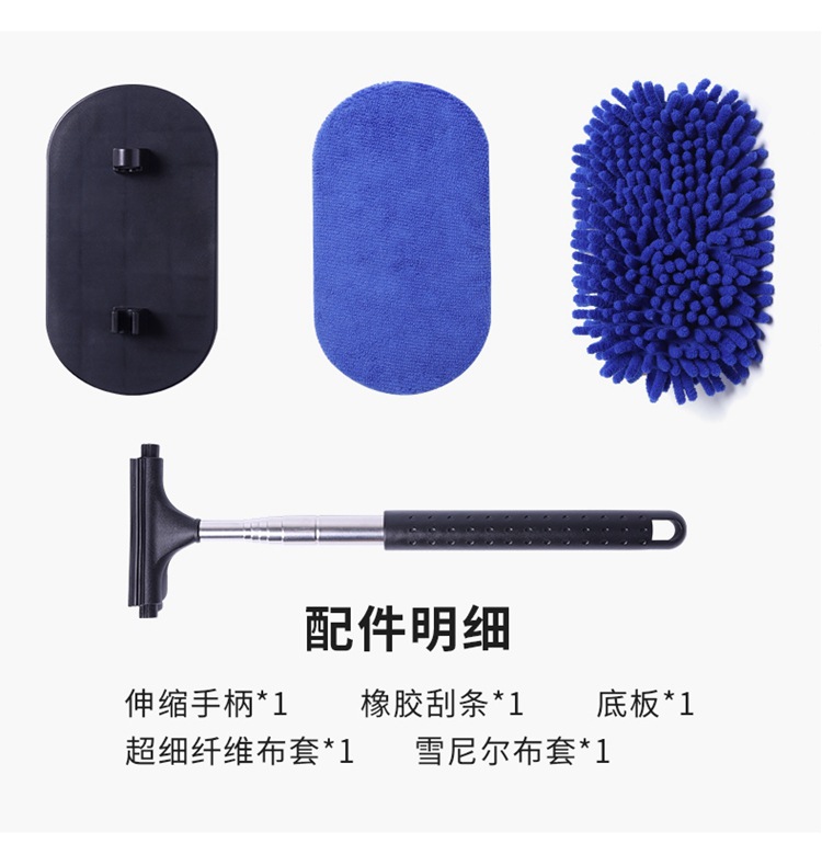 配件:手柄1套,刮板1只,雪尼尔布套1只,超细纤维布套1只。