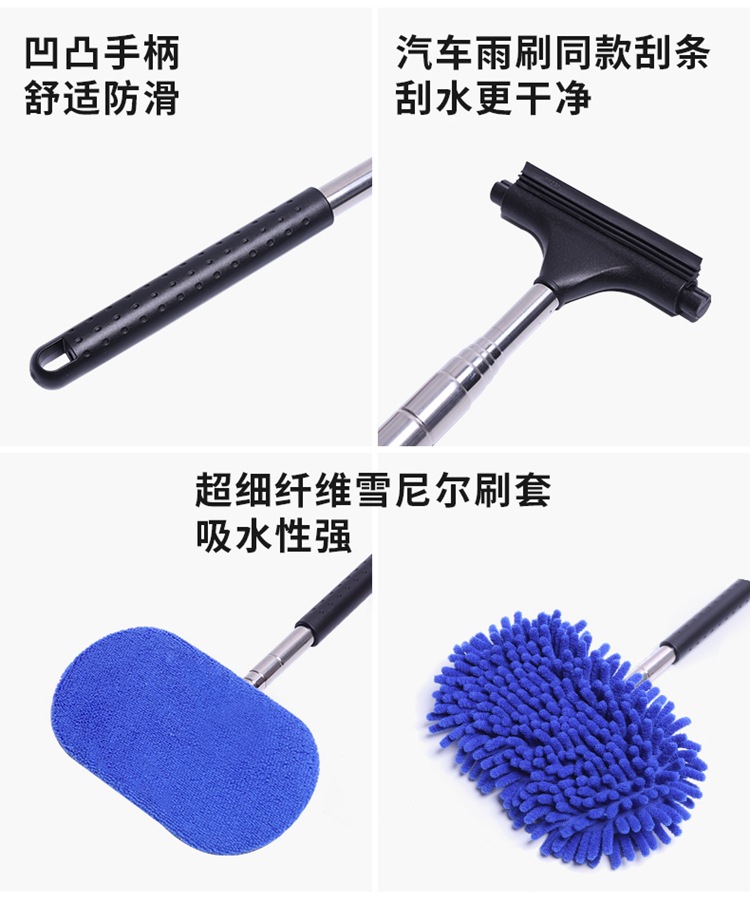 2、伸缩范围大,伸缩杆可伸长至101cm,车顶和另一侧后视镜都可以轻松擦洗。