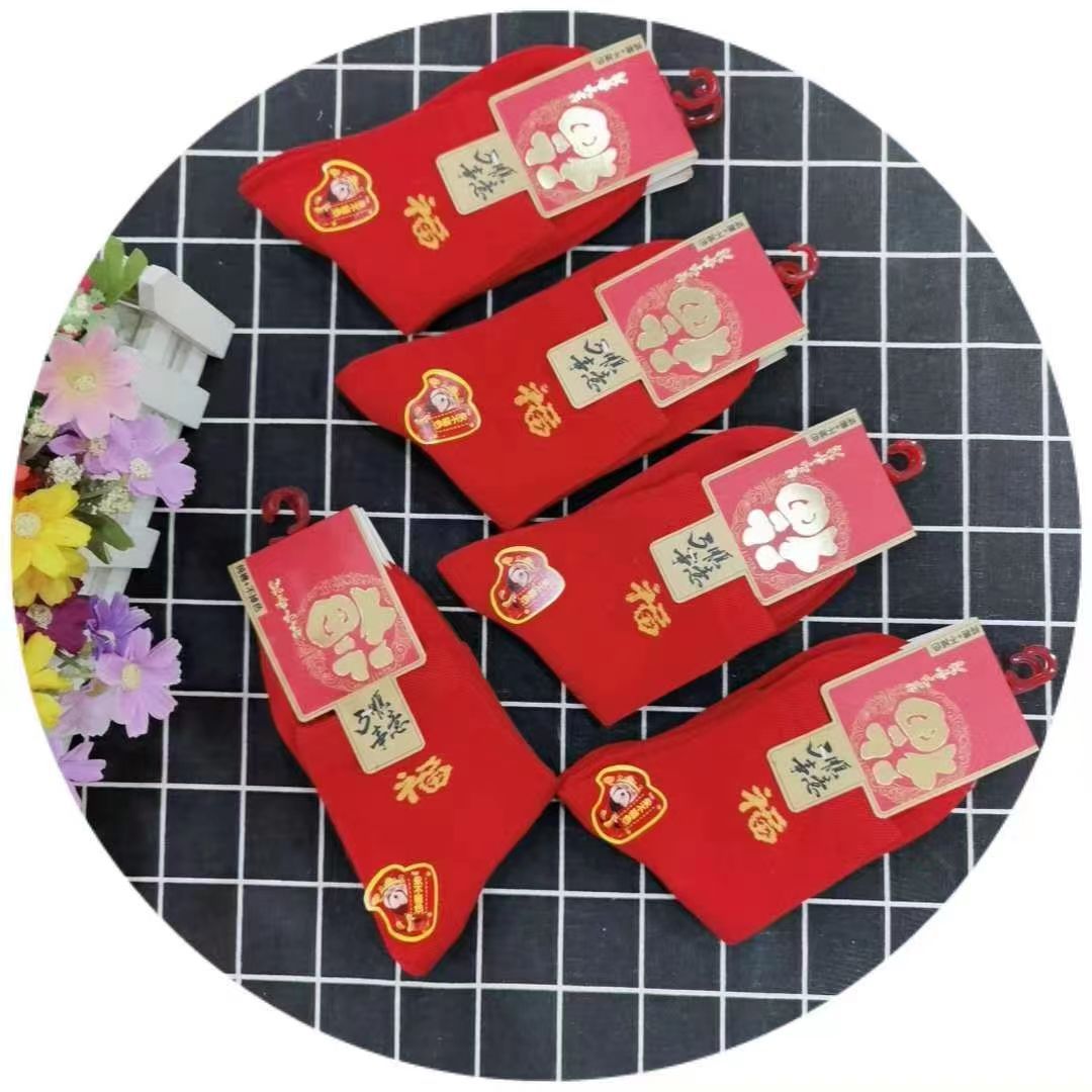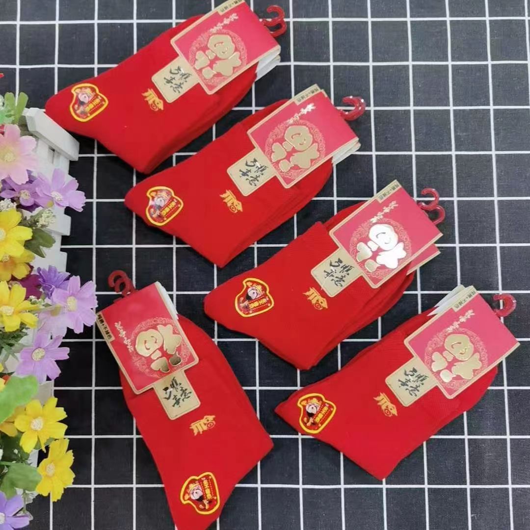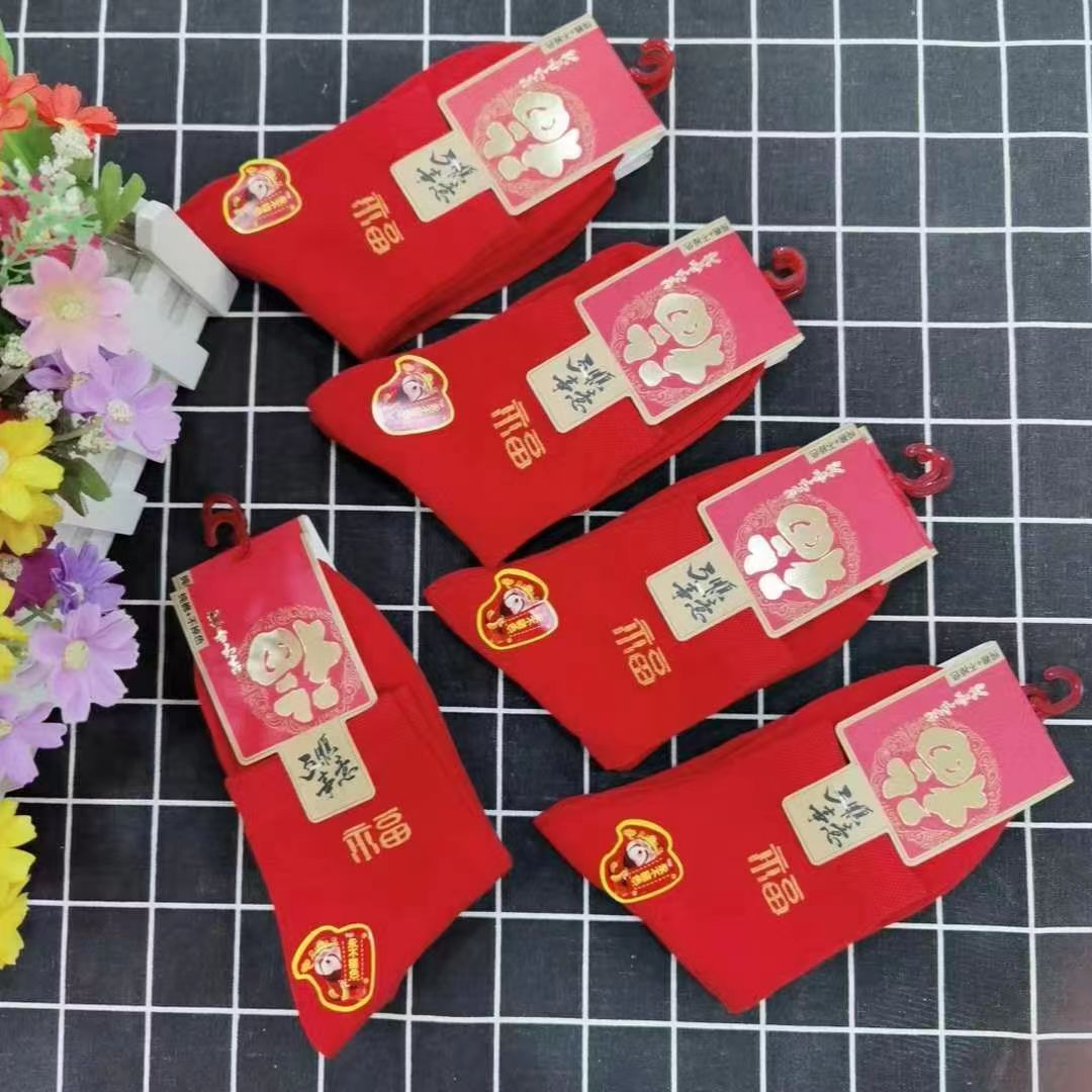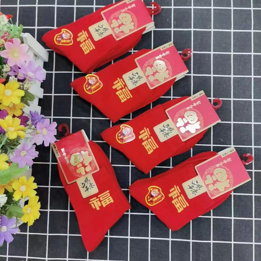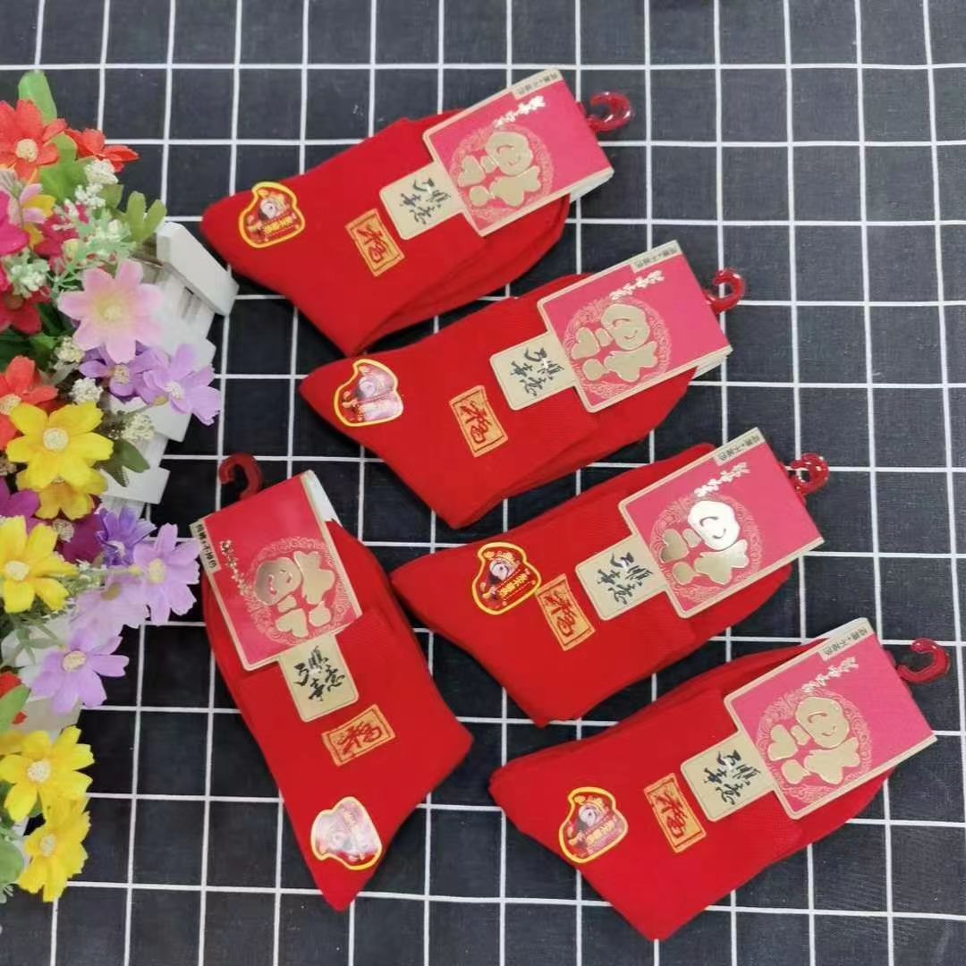 양말 가을과 겨울 빨간 남자와 여자의 중간 허리 비행기 결혼식 올해 남자와 여자의 빨간 면 양말 재고 도매스토어 가기