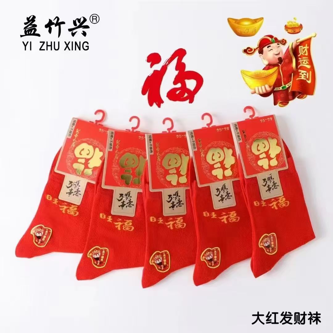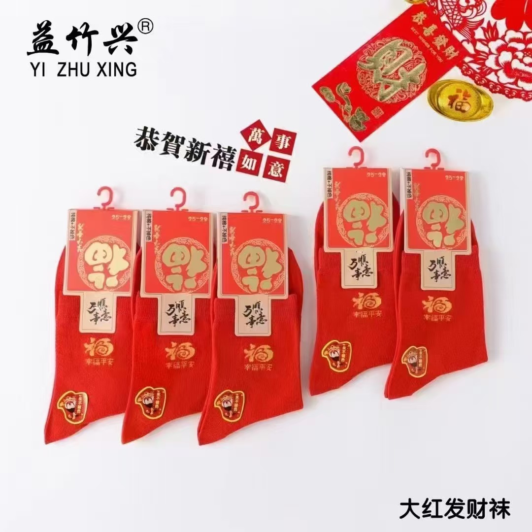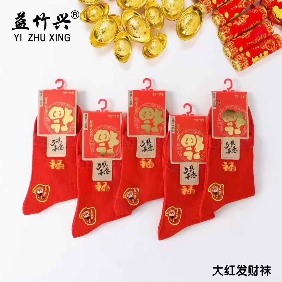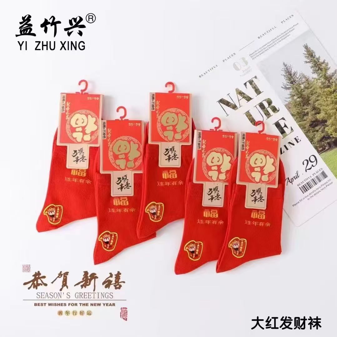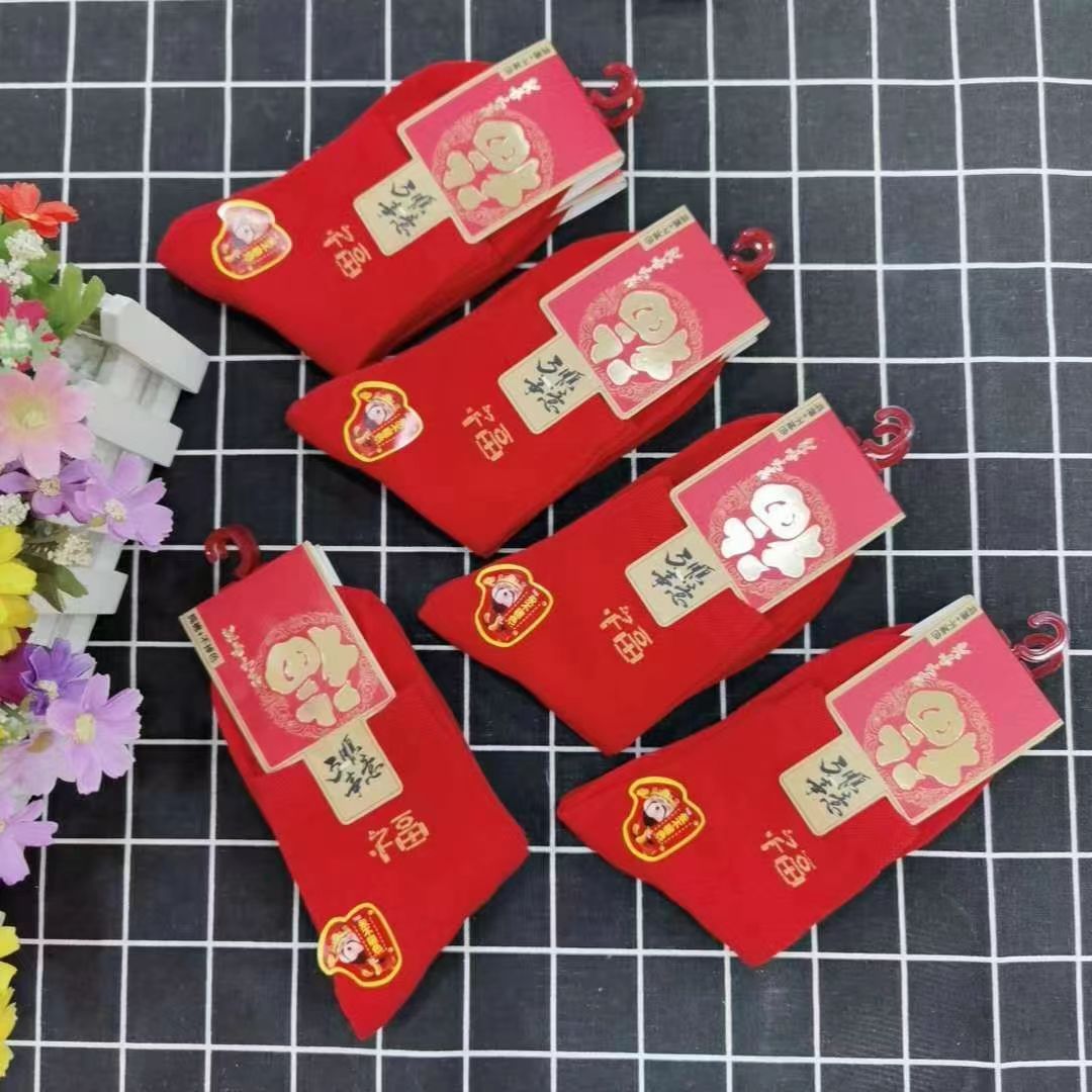 양말 가을과 겨울 빨간 남자와 여자의 중간 허리 비행기 결혼식 올해 남자와 여자의 빨간 면 양말 재고 도매스토어 가기
