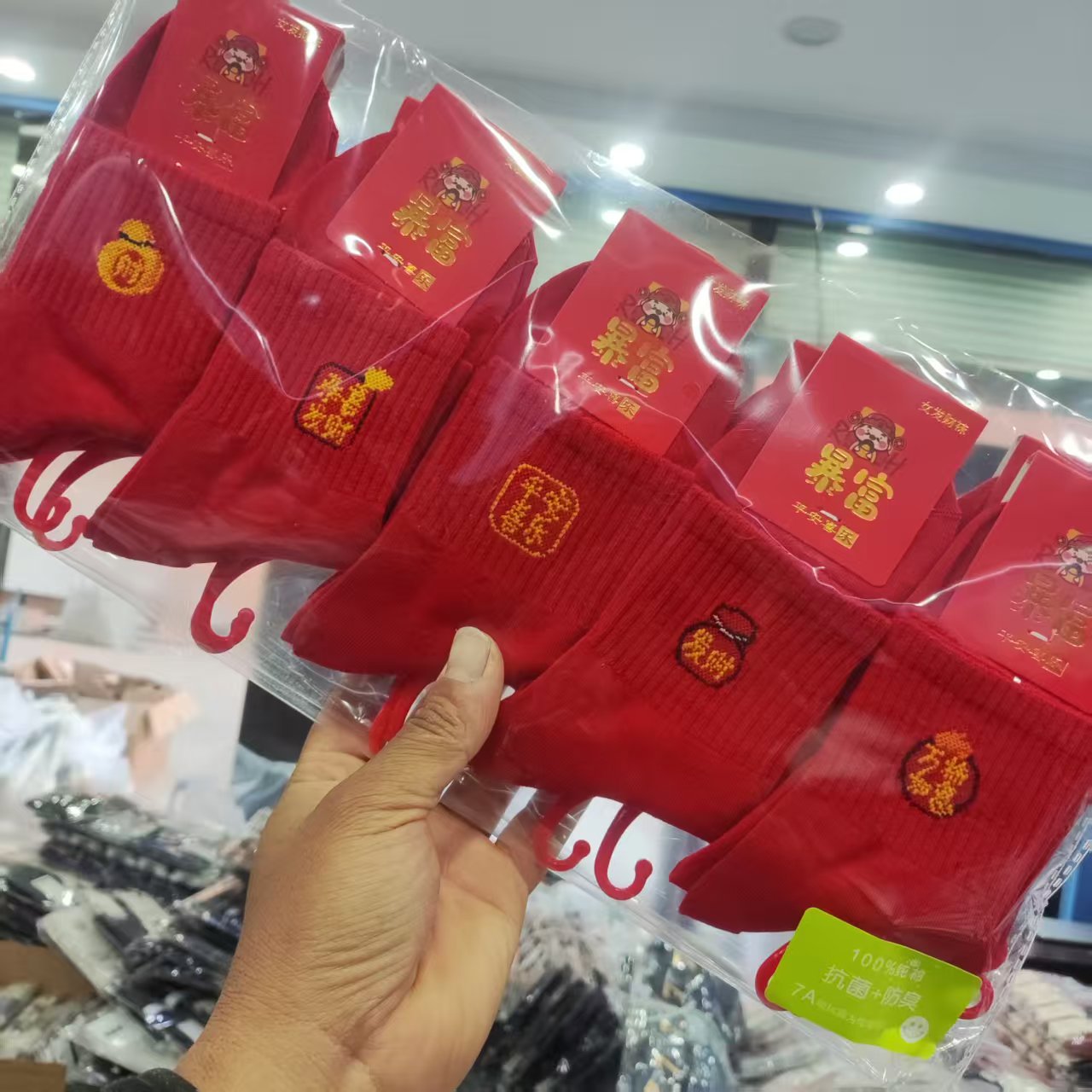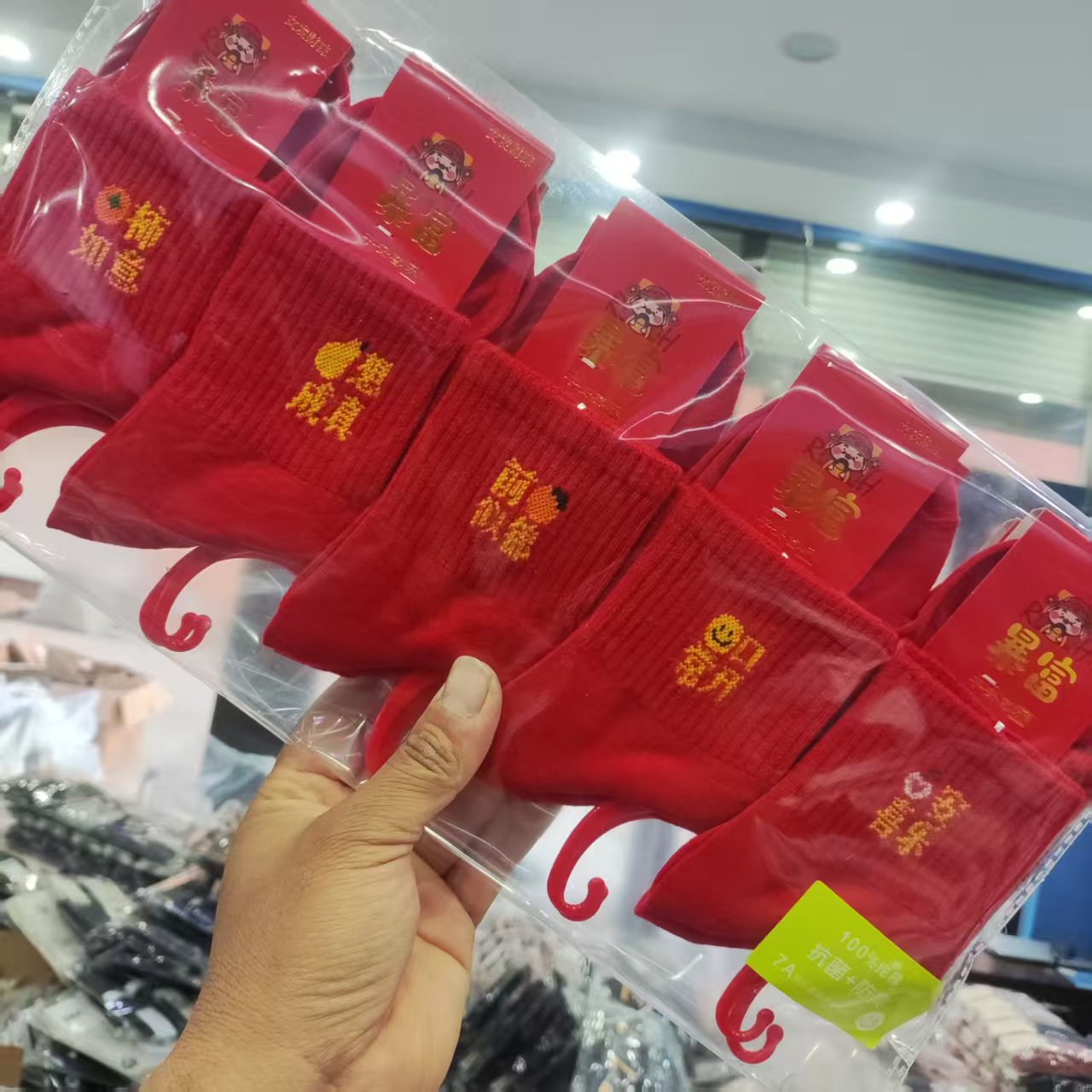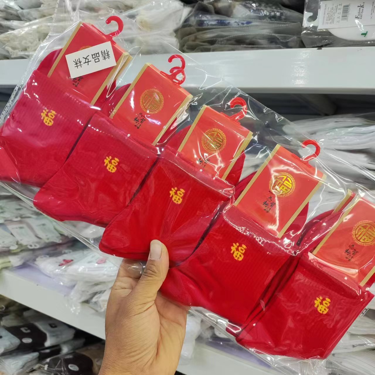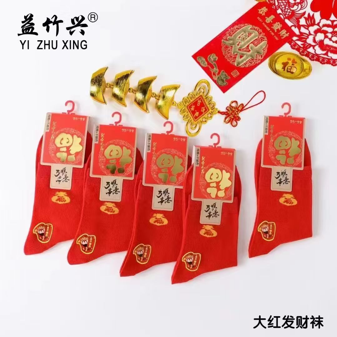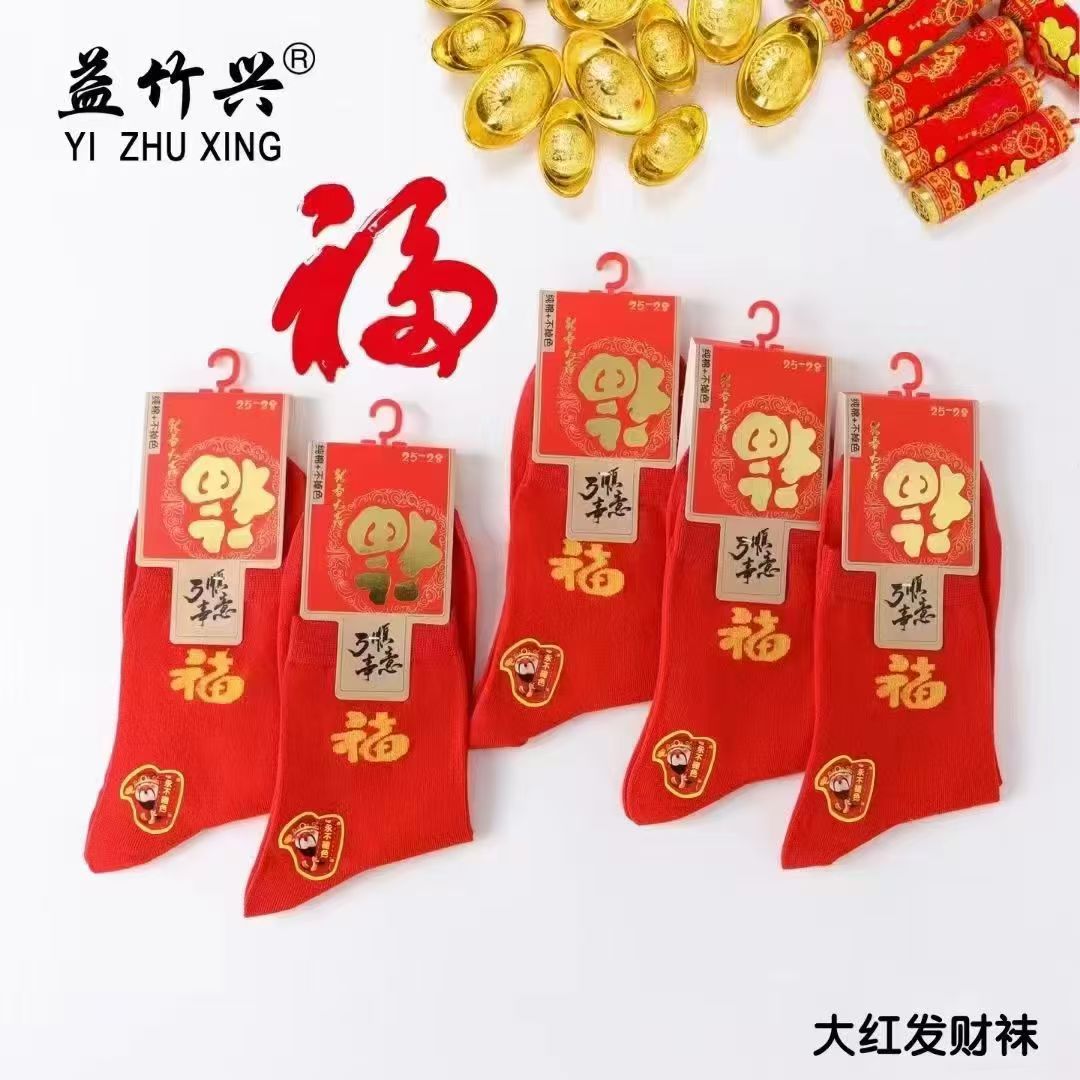 양말 가을과 겨울 빨간 남자와 여자의 중간 허리 비행기 결혼식 올해 남자와 여자의 빨간 면 양말 재고 도매스토어 가기