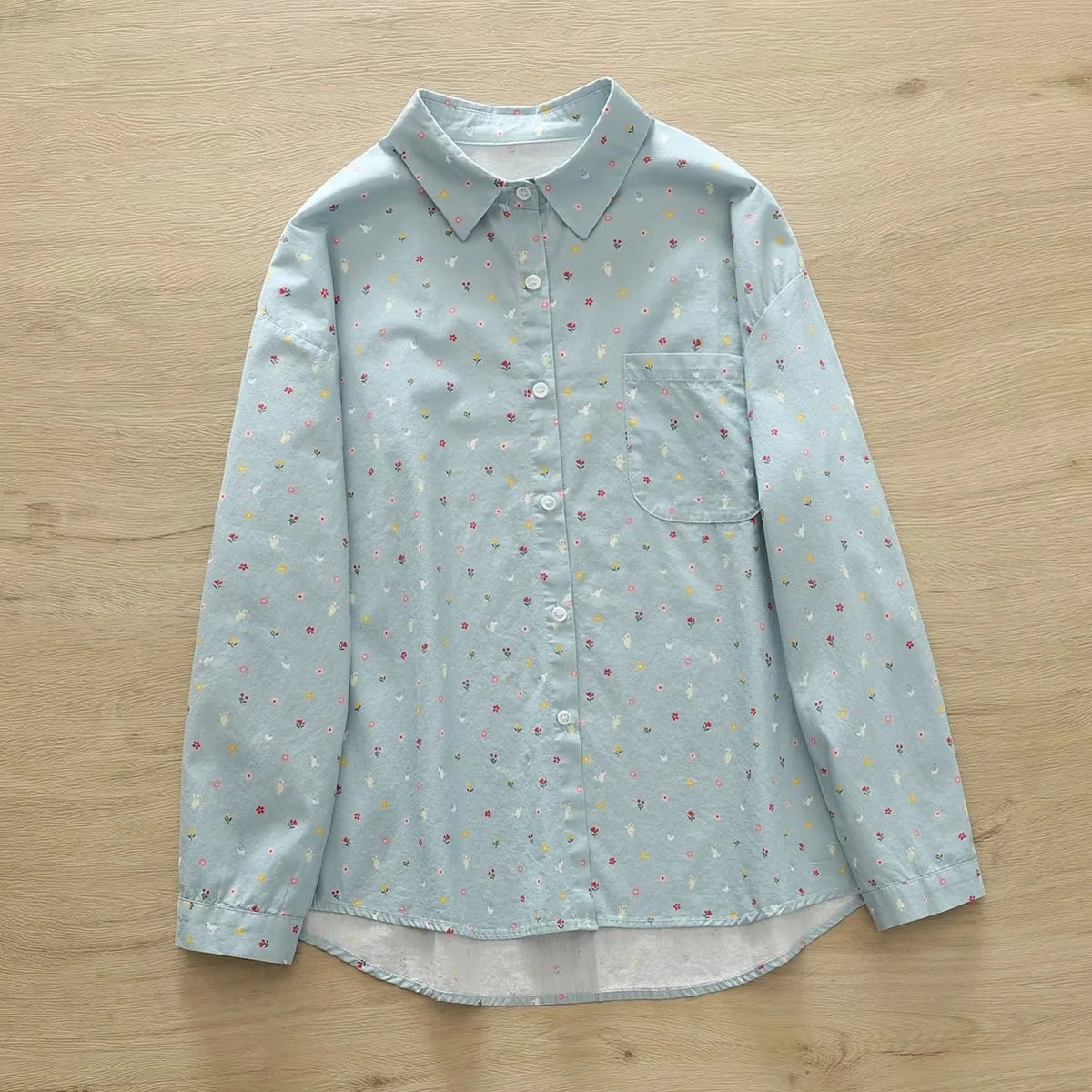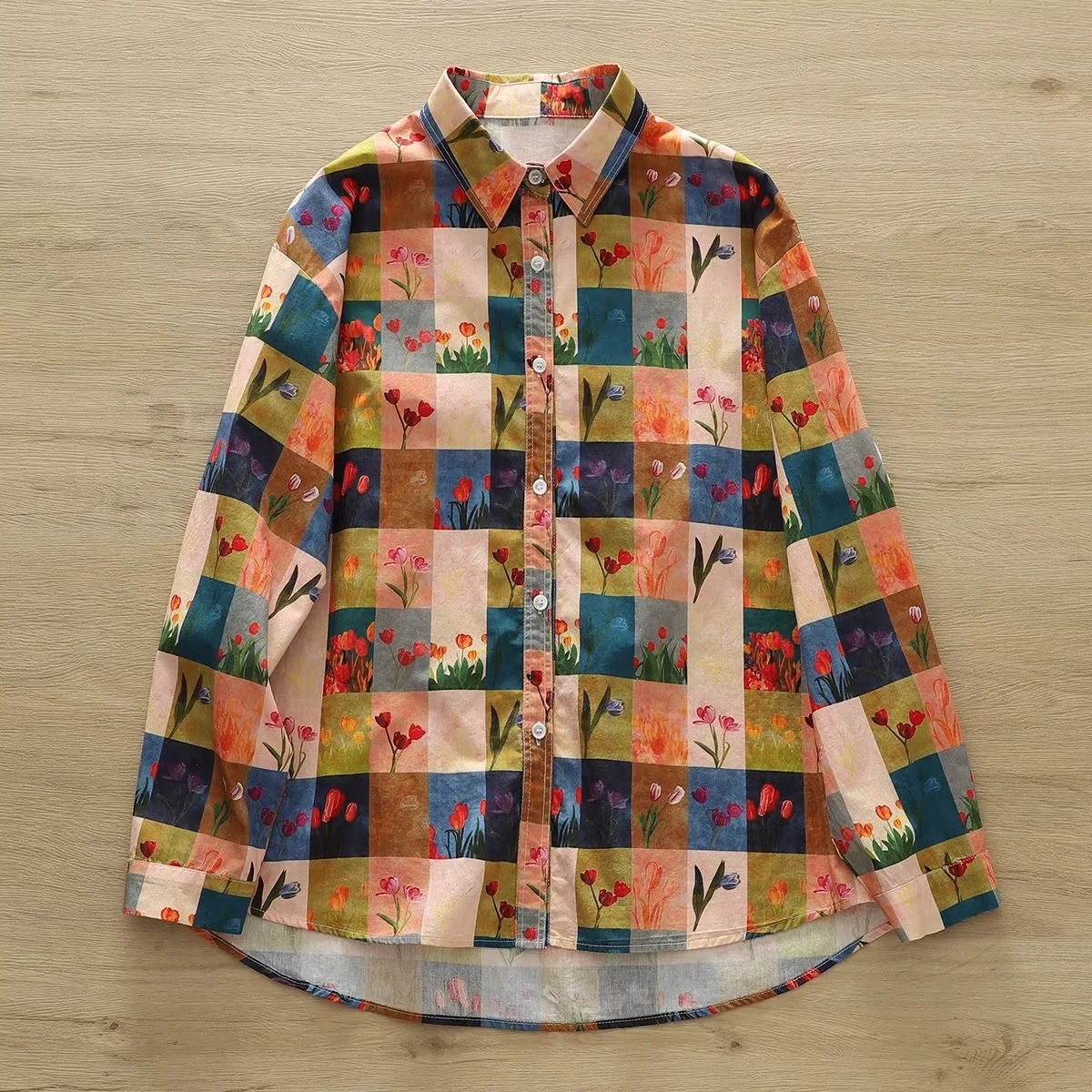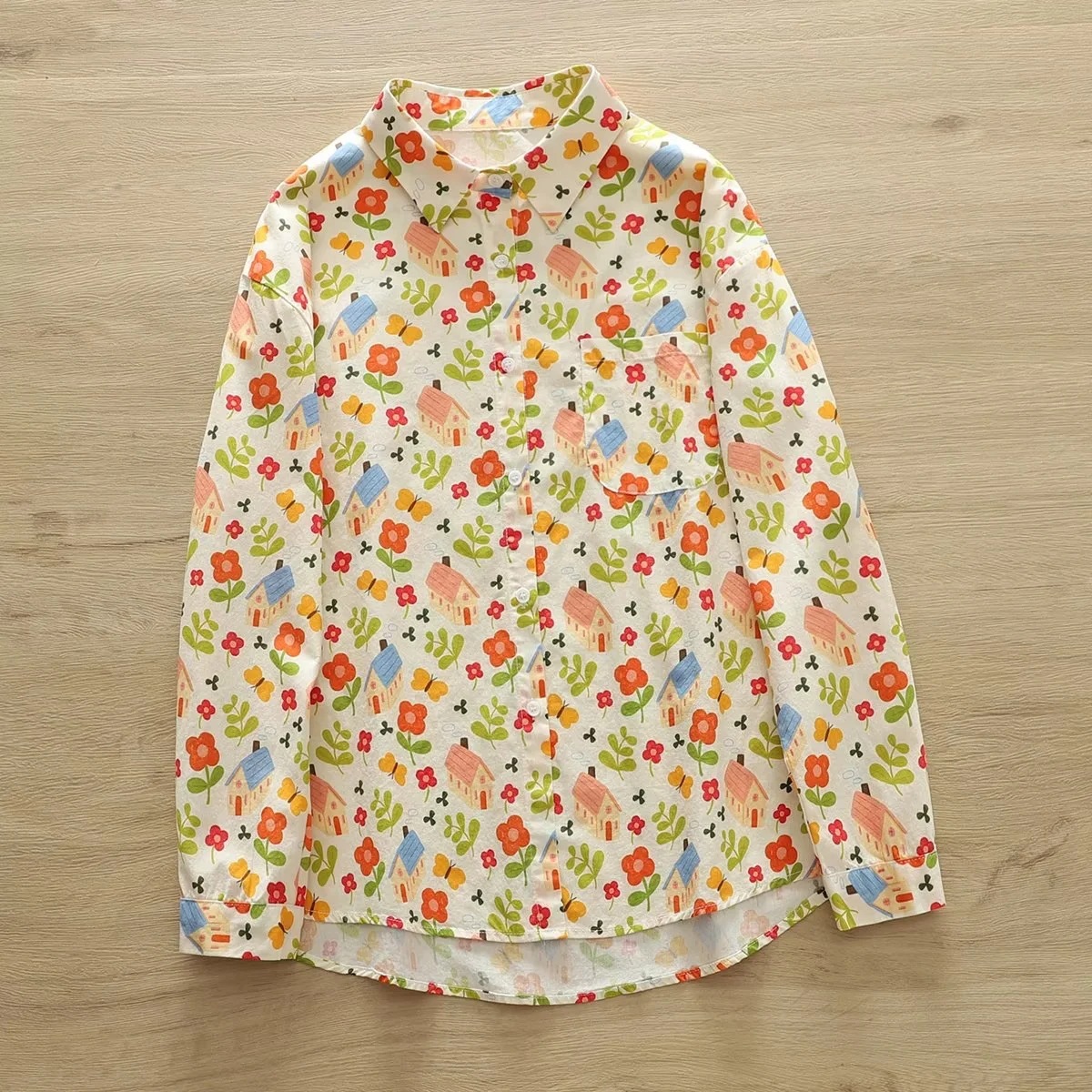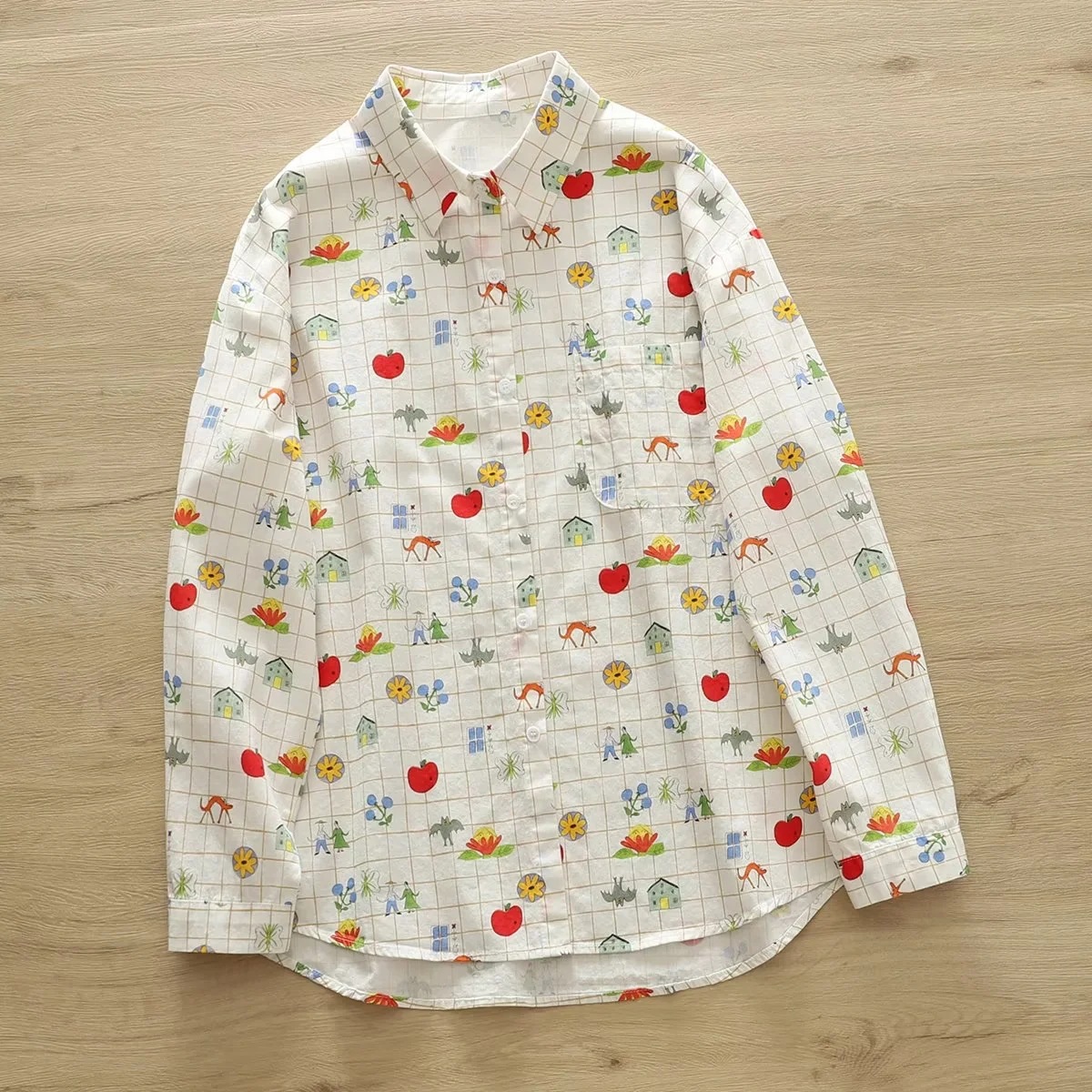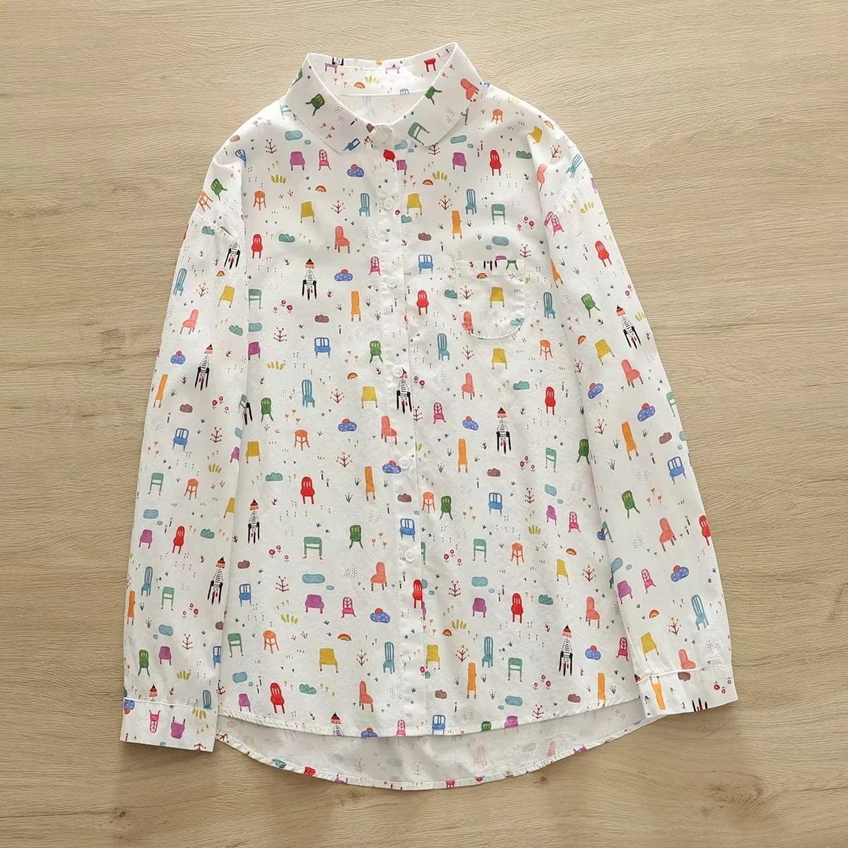 81546 프린트된 라펠 긴소매 셔츠의 에이지 리저빙 버라이어티 여성용 서양식 가을 뉴 느슨한 슬림 셔츠 탑