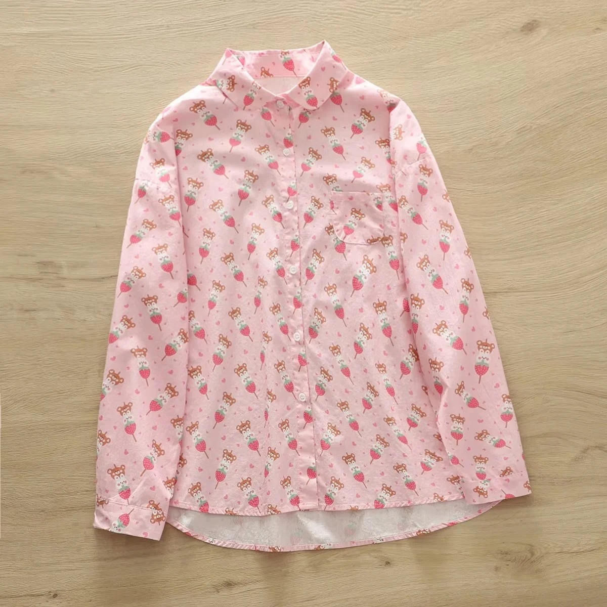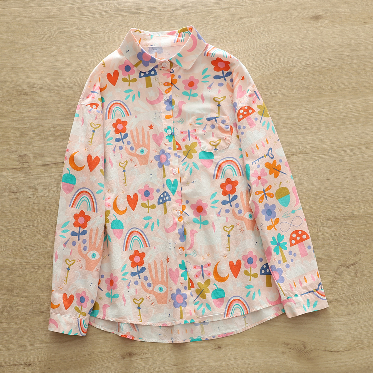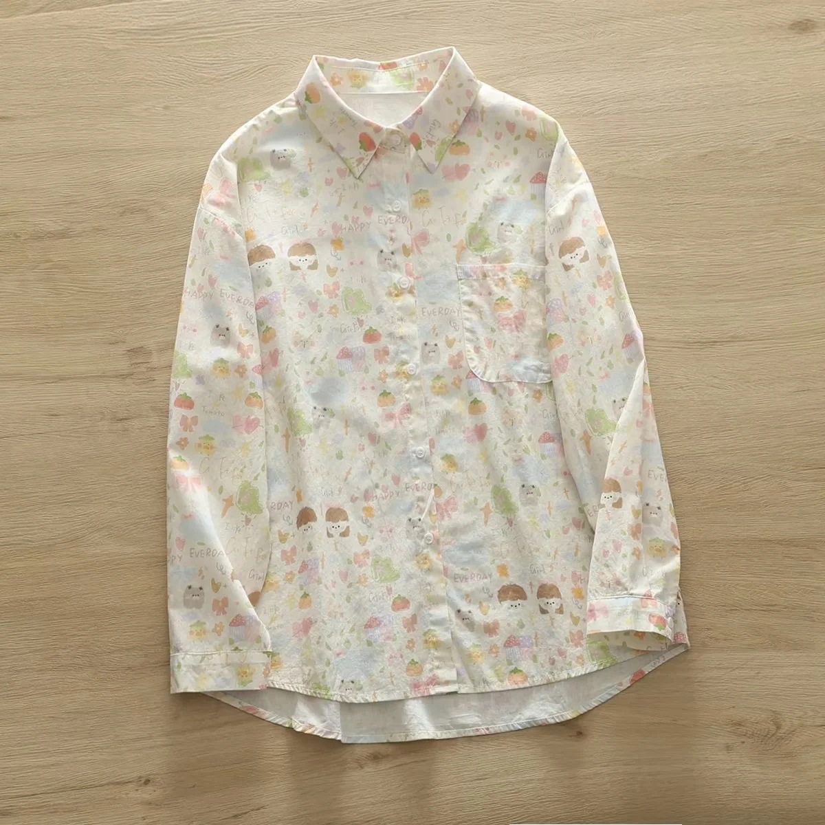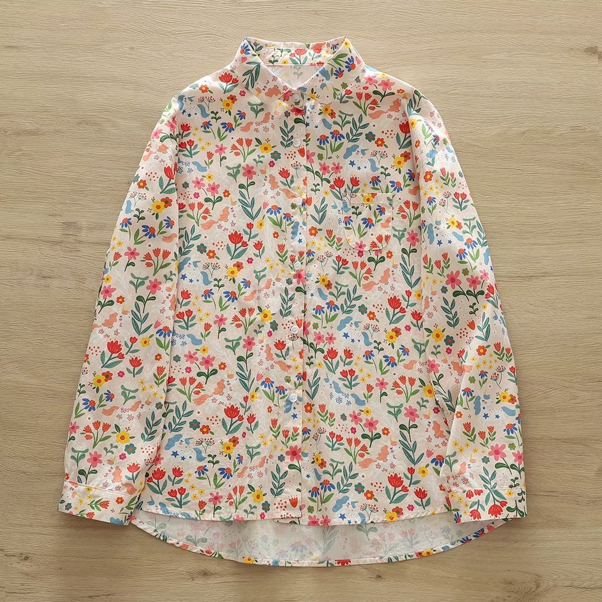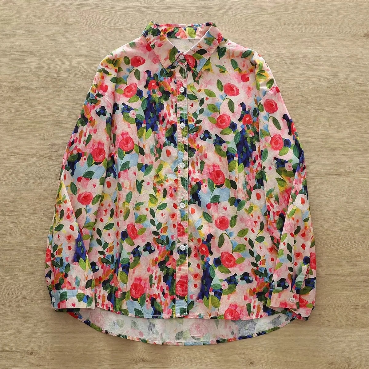 81546 프린트된 라펠 긴소매 셔츠의 에이지 리저빙 버라이어티 여성용 서양식 가을 뉴 느슨한 슬림 셔츠 탑