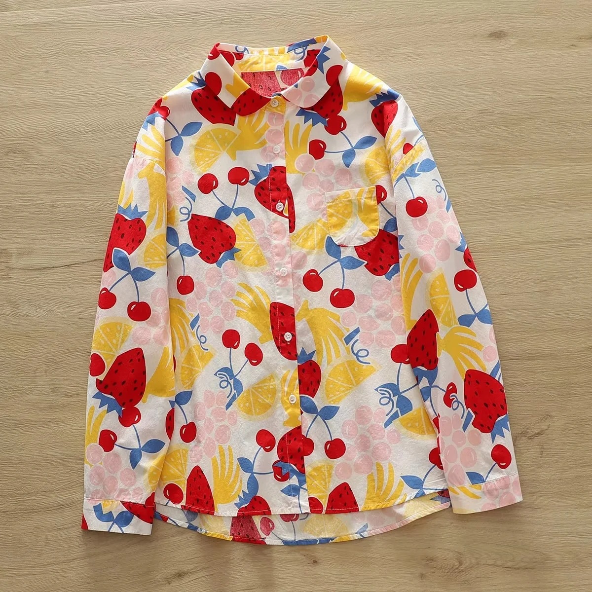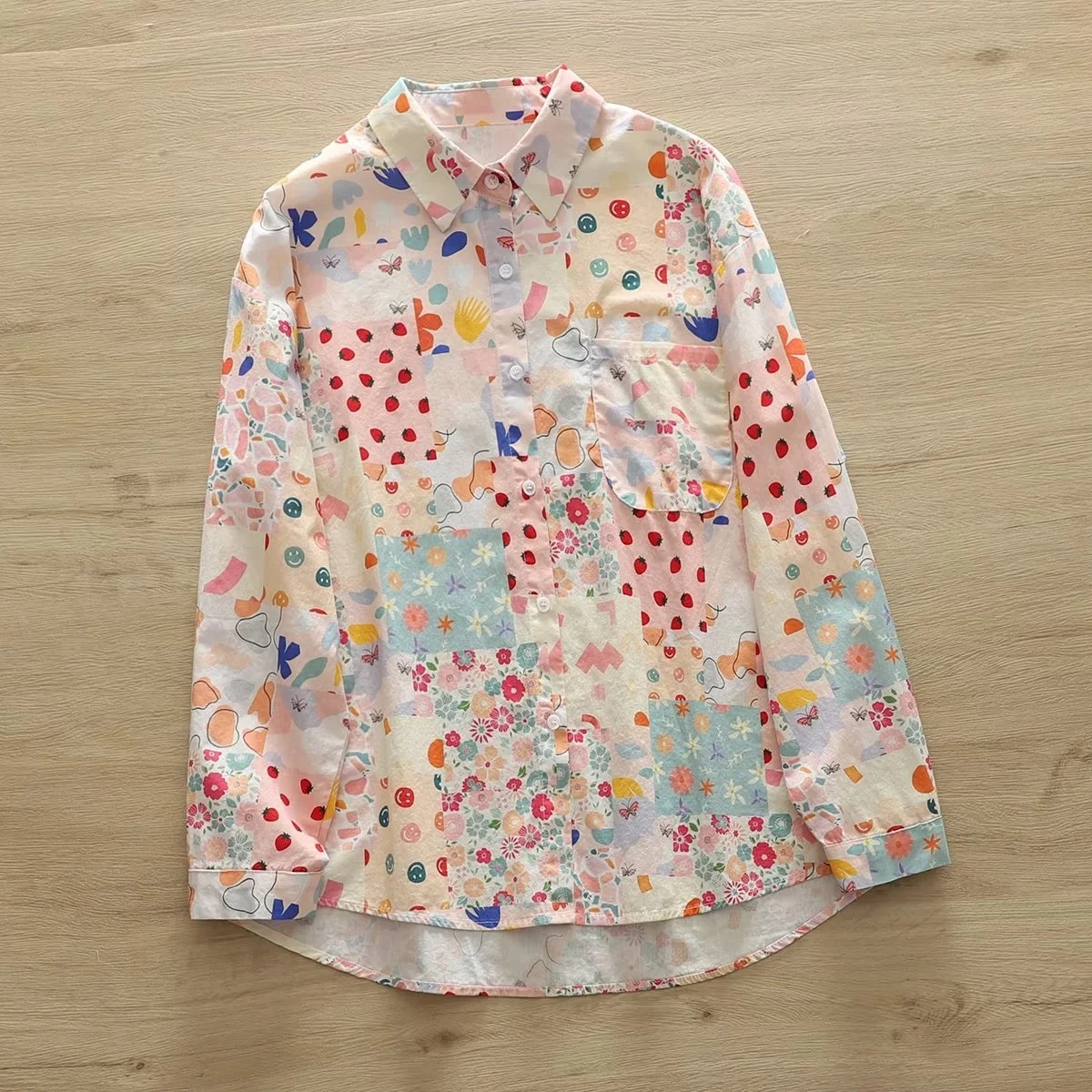 81546 프린트된 라펠 긴소매 셔츠의 에이지 리저빙 버라이어티 여성용 서양식 가을 뉴 느슨한 슬림 셔츠 탑스토어 가기