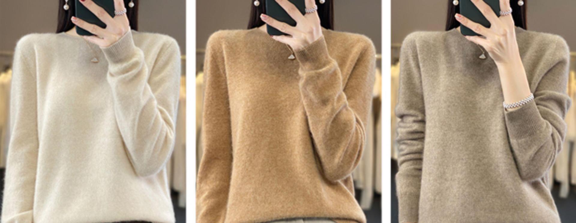 원 라인 레디 메이드 라운드 넥 스웨터 여성용 느슨한 니트베이스 스웨터 긴 소매 단색 탑 가을과 겨울 새로운 풀오버
