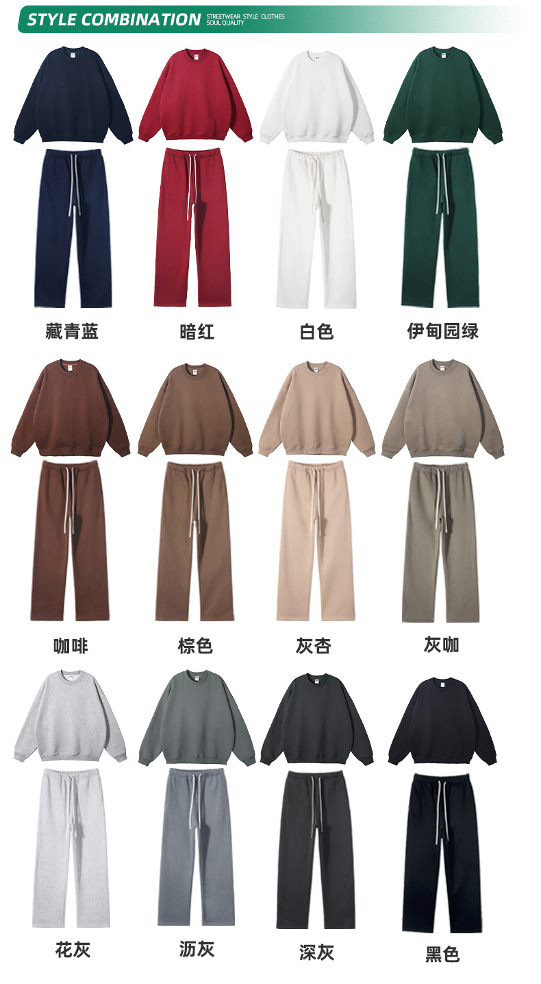 2026 가을 겨울 신상품 350g 도파민 플러스 벨벳 두꺼운 오버사이즈 루즈핏 트렌디 브랜드 남성 스웨트셔츠&팬츠 세트