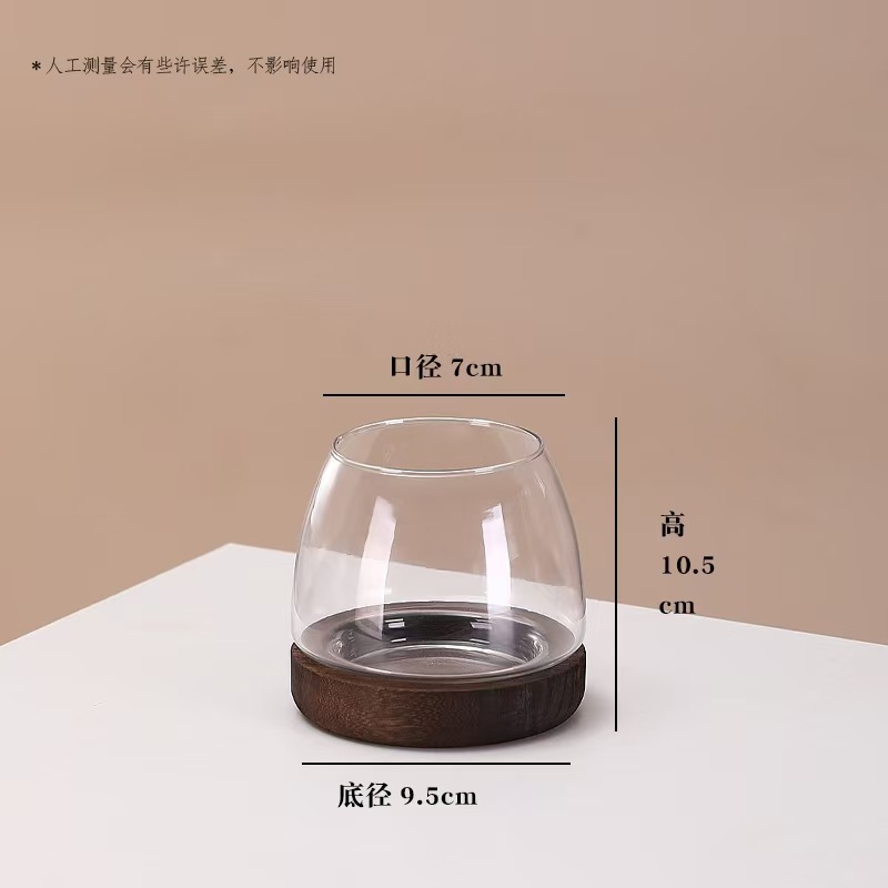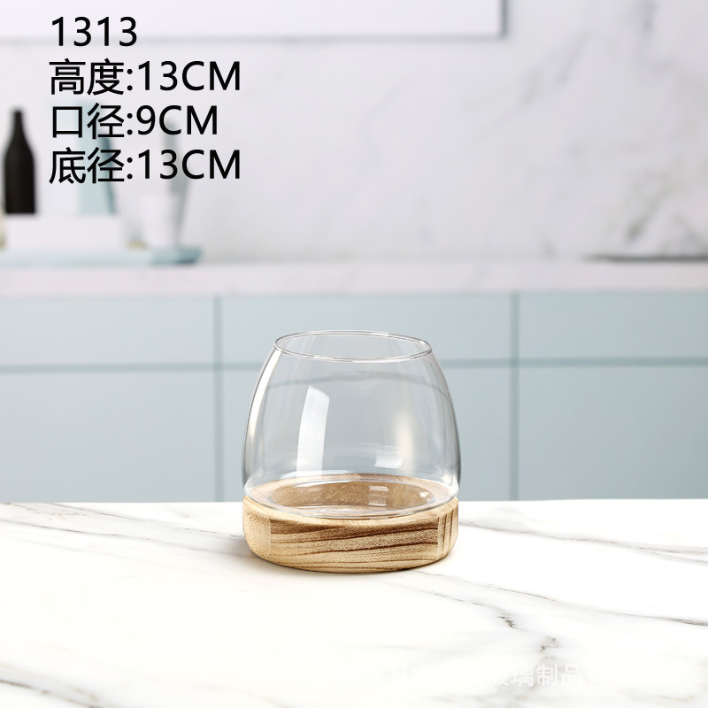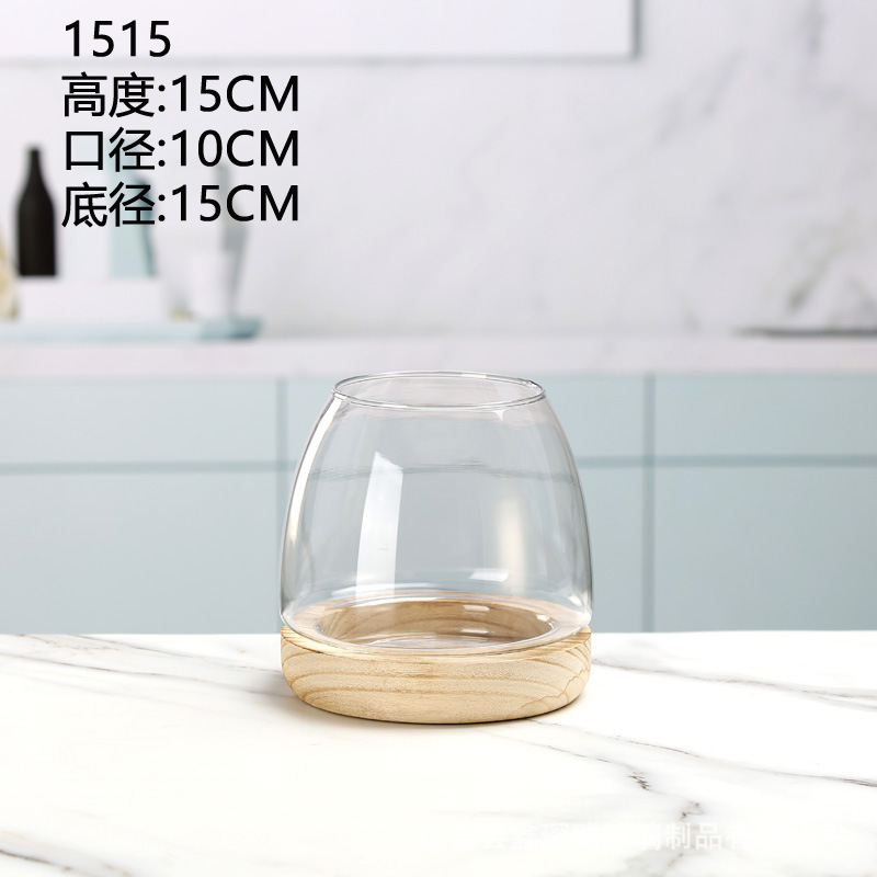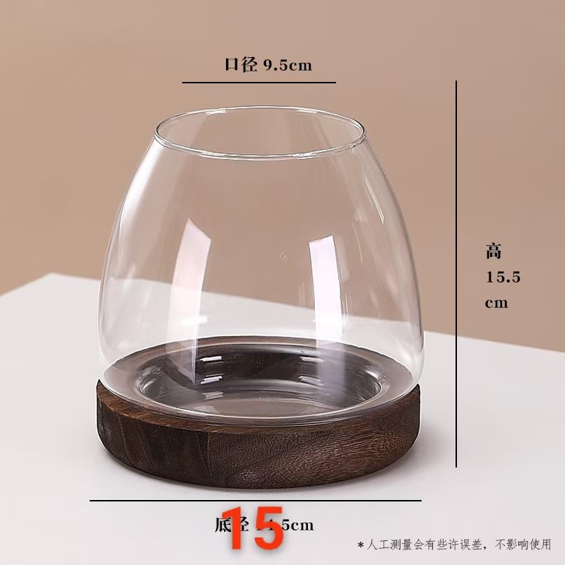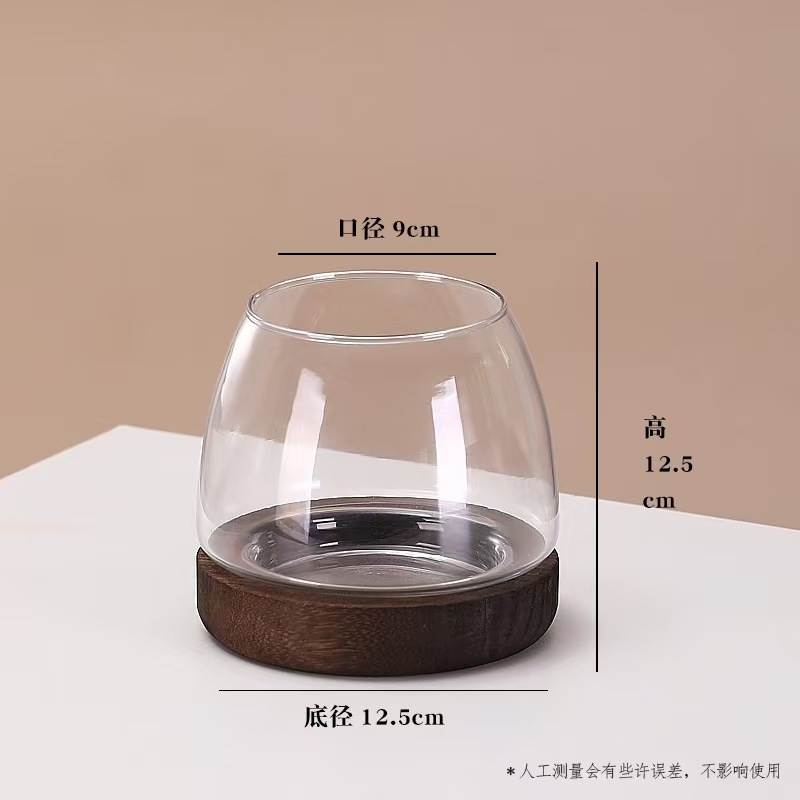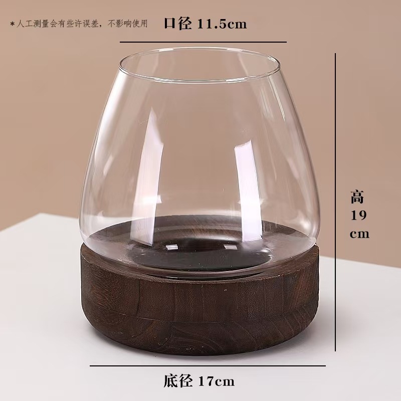 간단한 일본식 나무 홀더 투명 유리 꽃병 거실 꽃 장식품 수생 식물 녹색 장미 수경 생태 어항