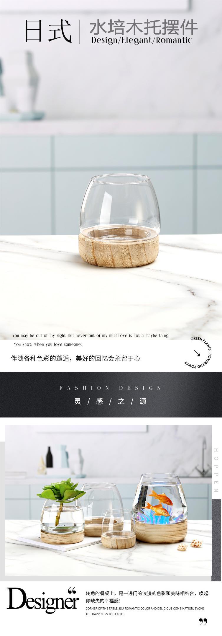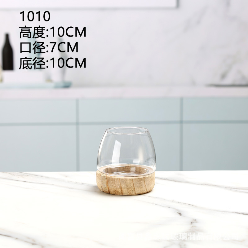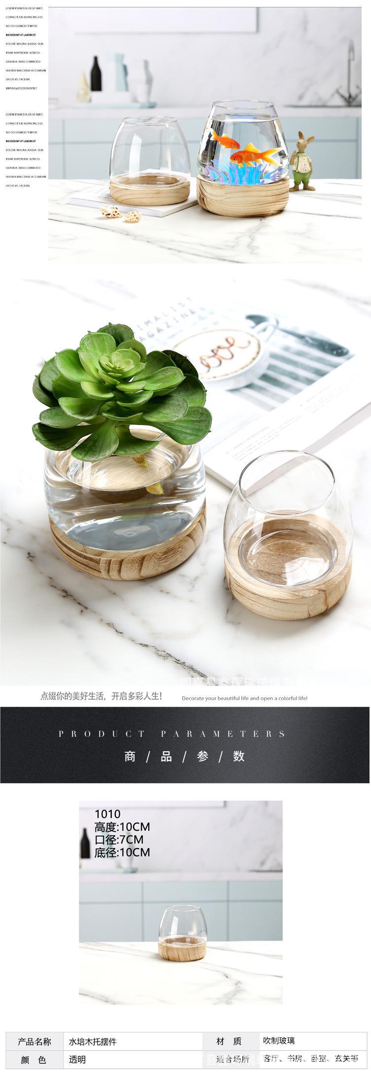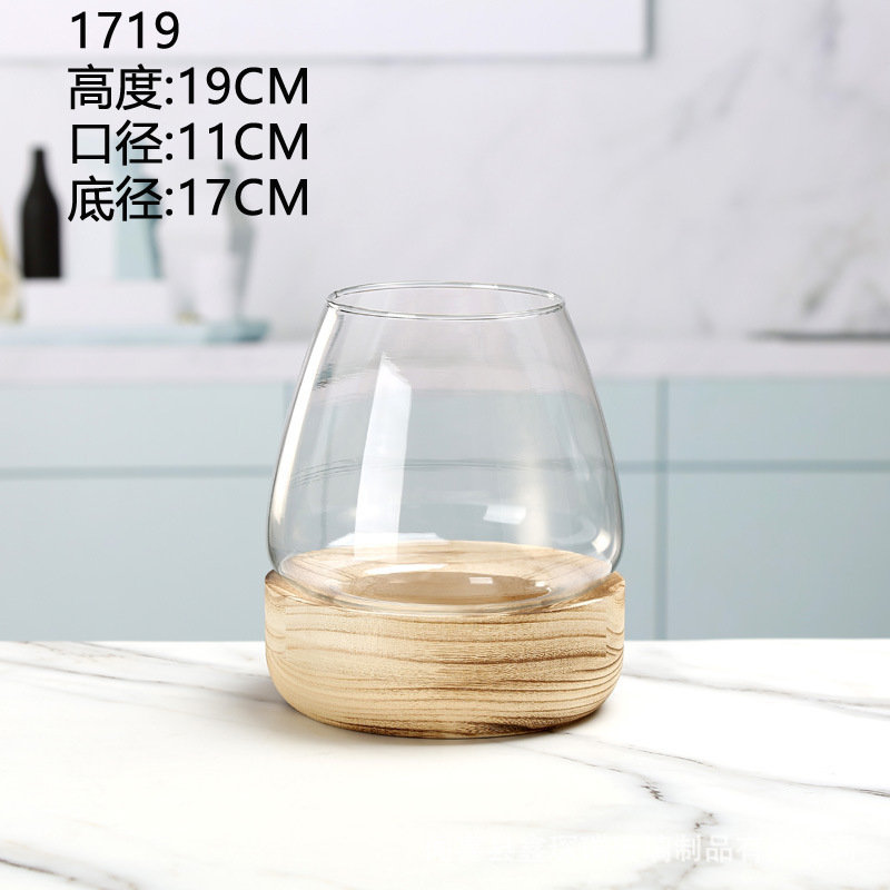 간단한 일본식 나무 홀더 투명 유리 꽃병 거실 꽃 장식품 수생 식물 녹색 장미 수경 생태 어항스토어 가기