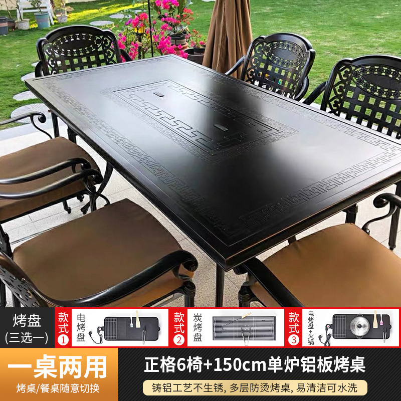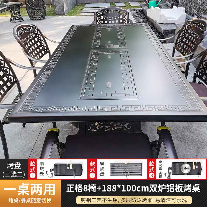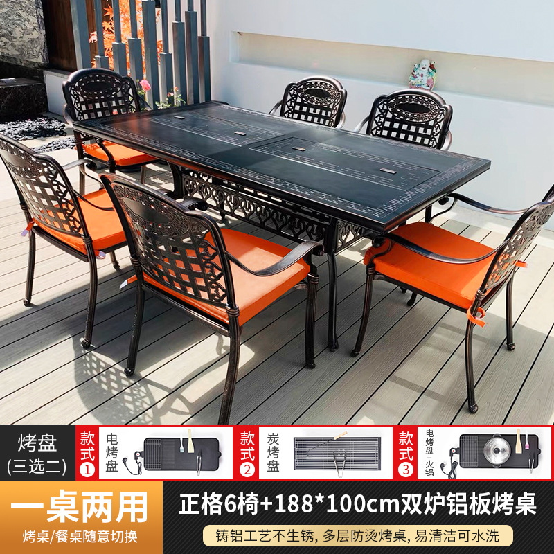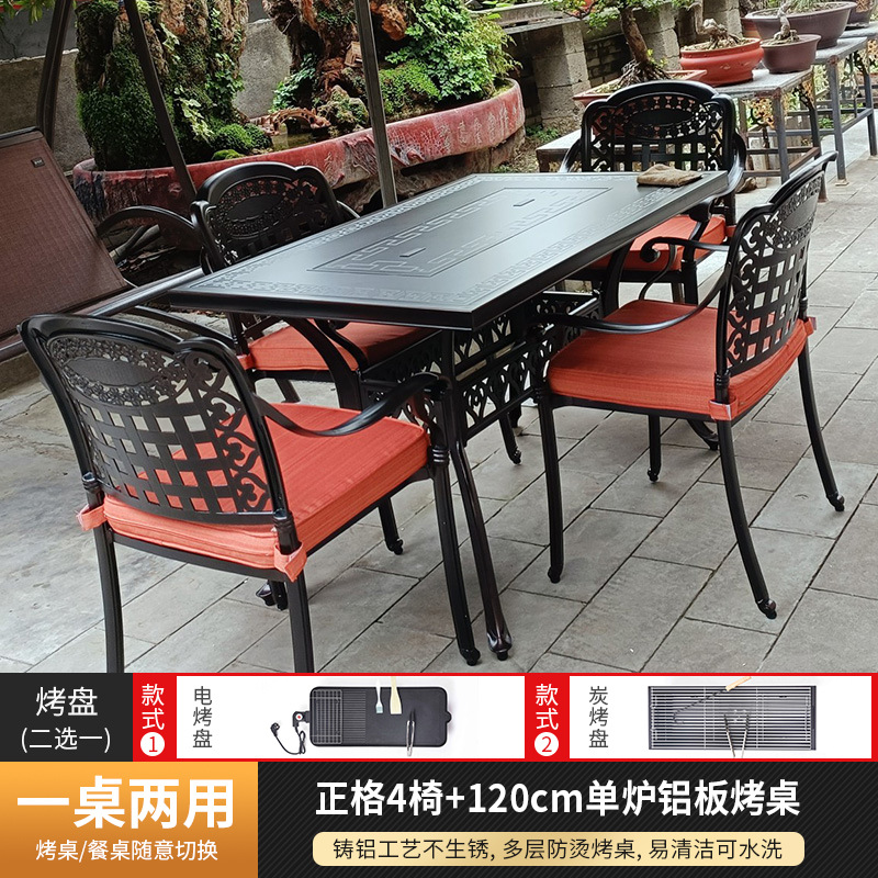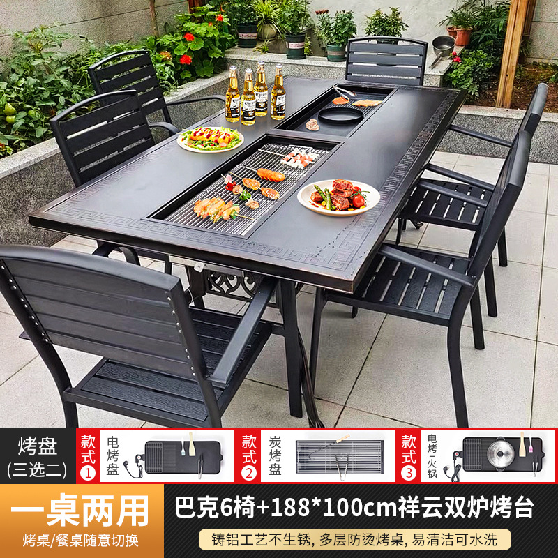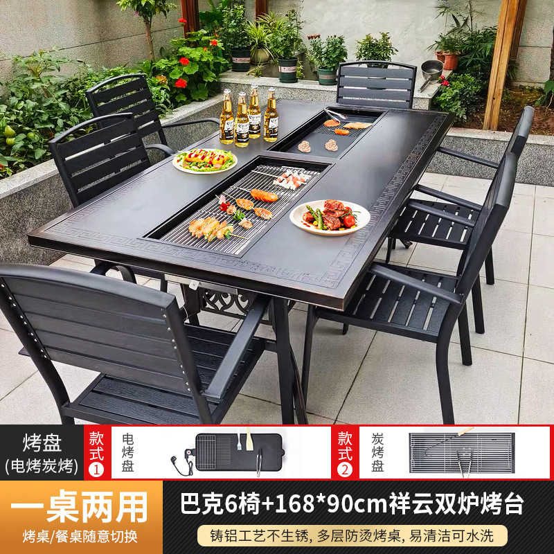 야외 바베큐 테이블 및 의자 북유럽 바베큐 테이블 가정용 바베큐 스토브 전기 탄소 이중 베이킹 테이블 안뜰 빌라 알루미늄 합금 테이블 및 의자