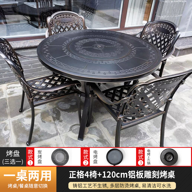 야외 바베큐 테이블 및 의자 북유럽 바베큐 테이블 가정용 바베큐 스토브 전기 탄소 이중 베이킹 테이블 안뜰 빌라 알루미늄 합금 테이블 및 의자스토어 가기