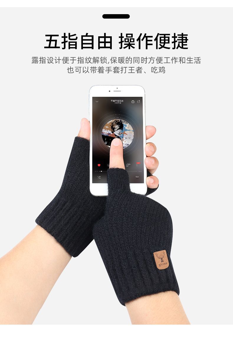 반 손가락 전체 손가락 단색 장갑 학생 겨울 따뜻한 한국 스타일 두꺼운 쓰기 터치 스크린 오픈 손가락 사이클링 따뜻한 장갑스토어 가기