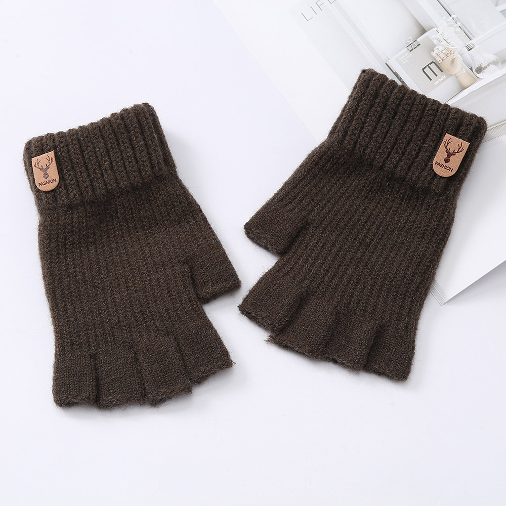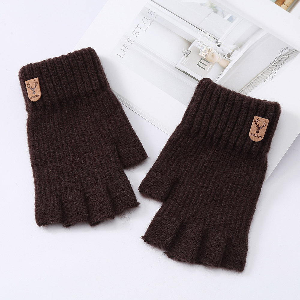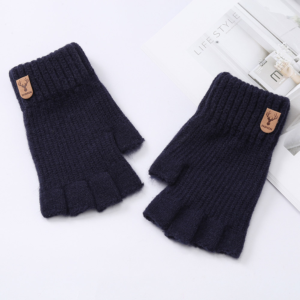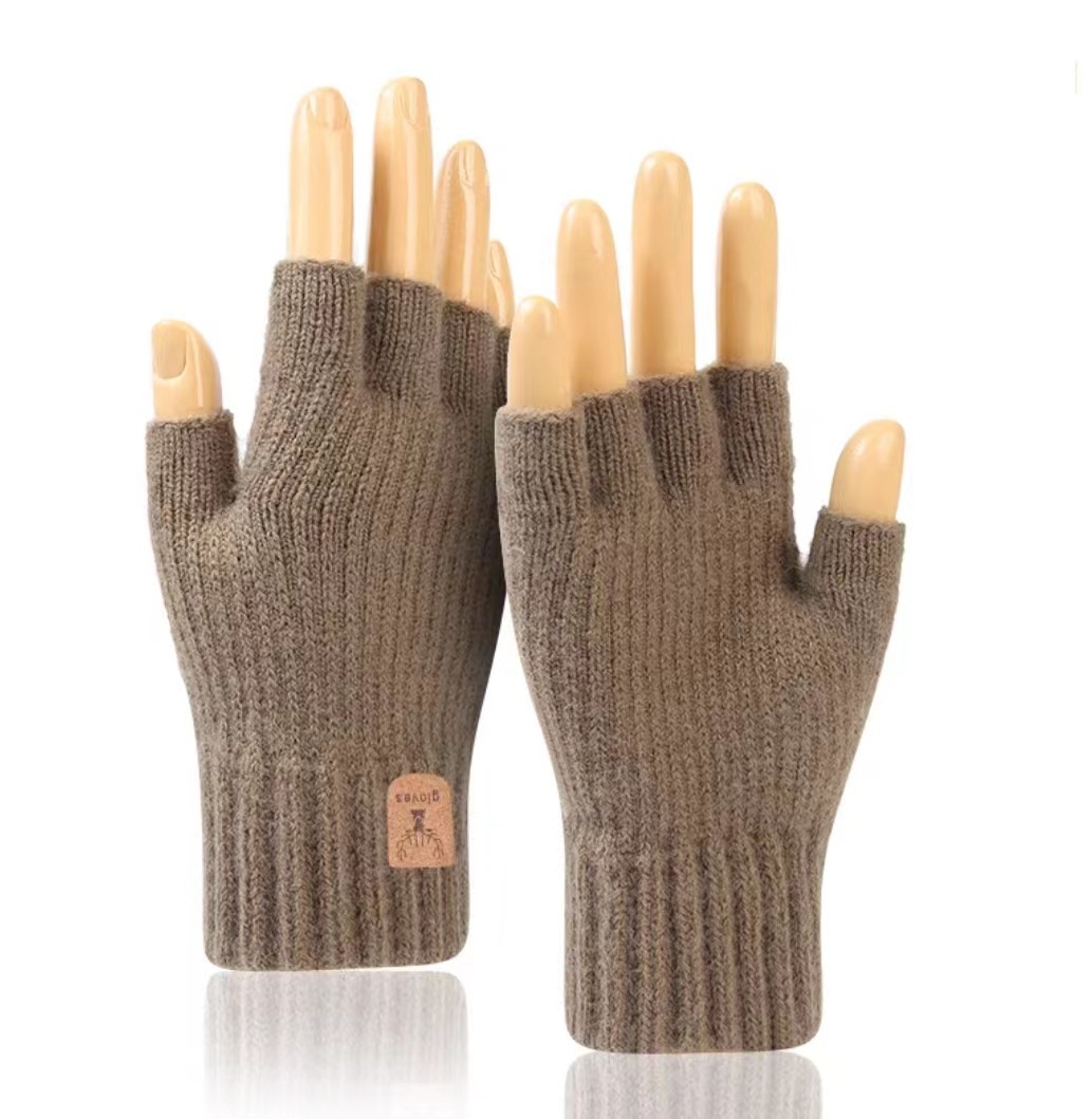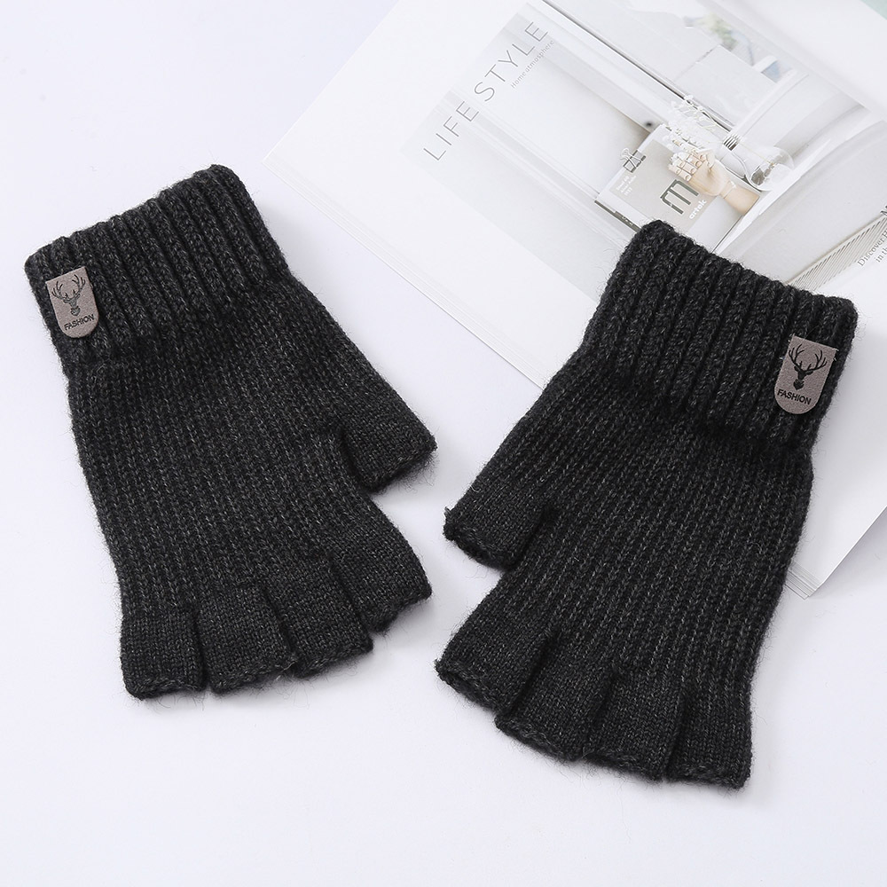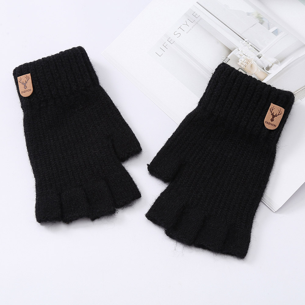 반 손가락 전체 손가락 단색 장갑 학생 겨울 따뜻한 한국 스타일 두꺼운 쓰기 터치 스크린 오픈 손가락 사이클링 따뜻한 장갑
