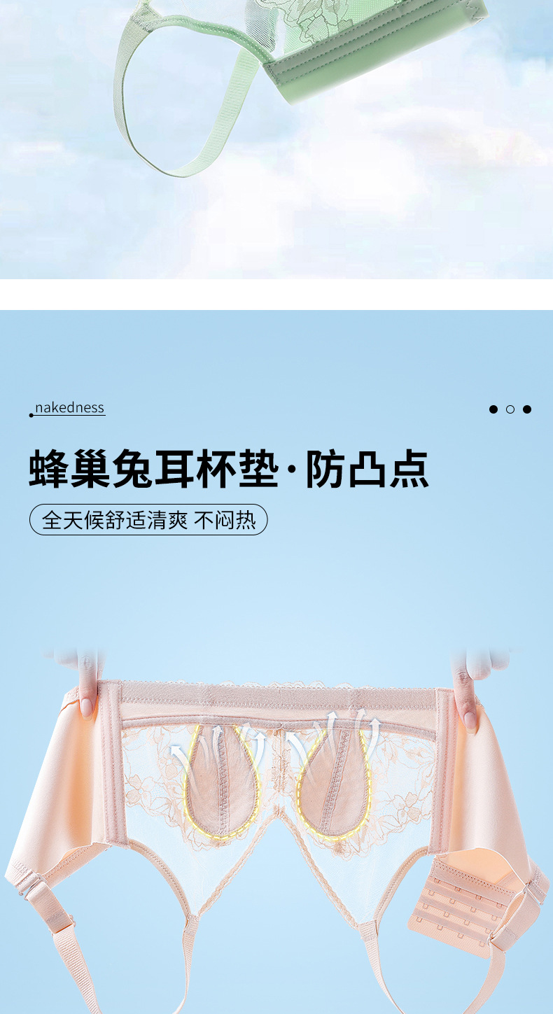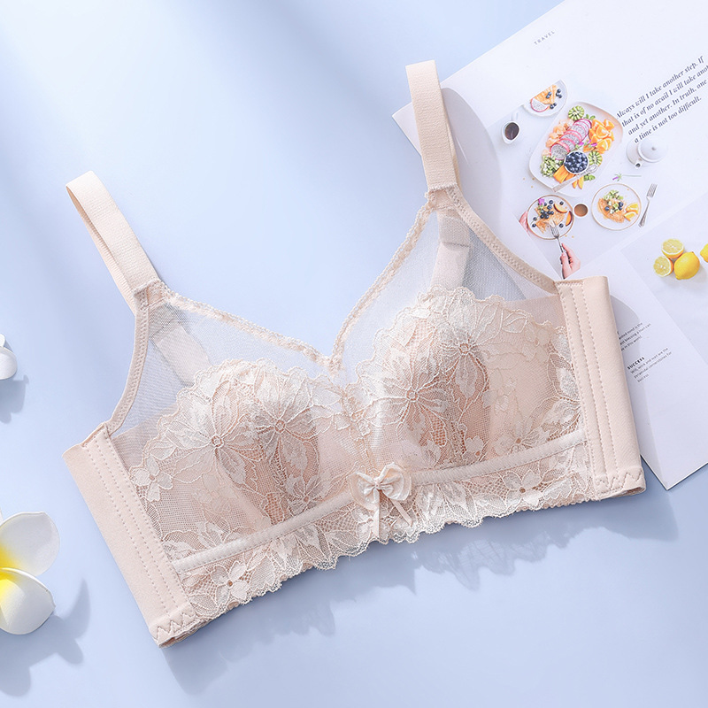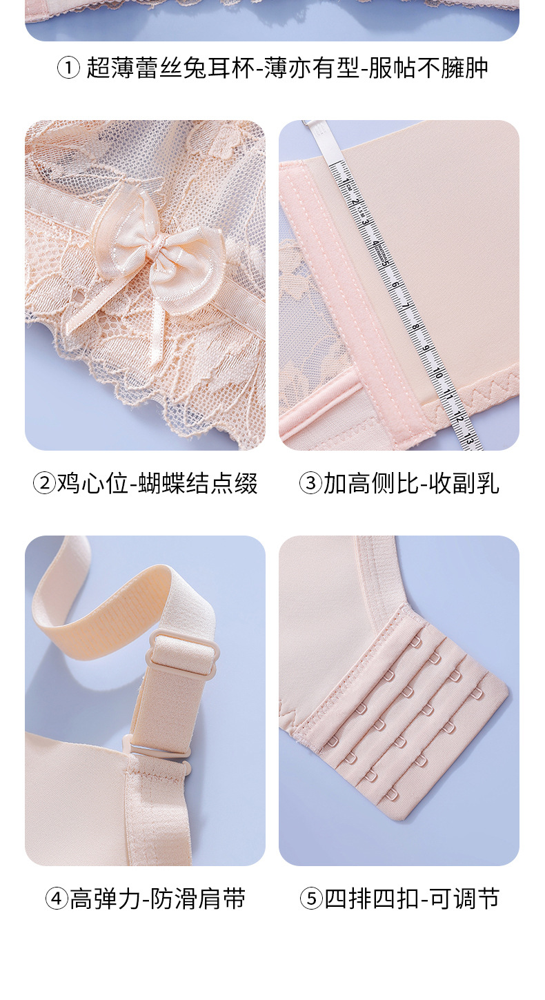 토끼 귀 크리스탈 컵 속옷 여성용 큰 가슴 작은 개더 업 여름 울트라 씬 조절 가능한 파라메리 가슴 비 림 브라