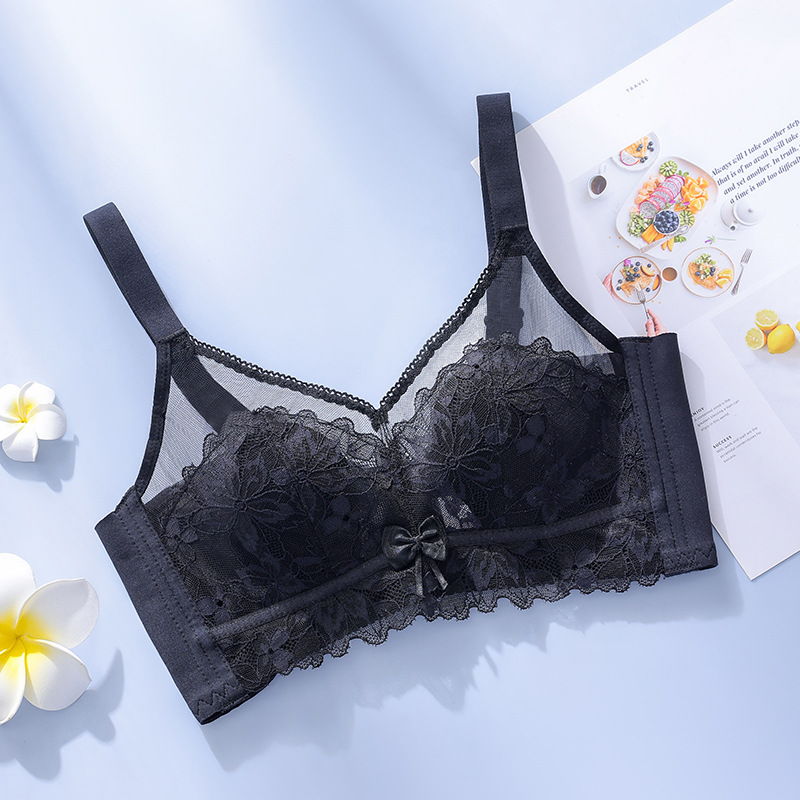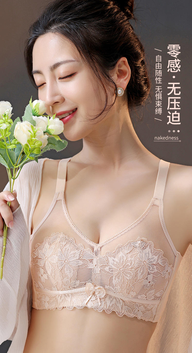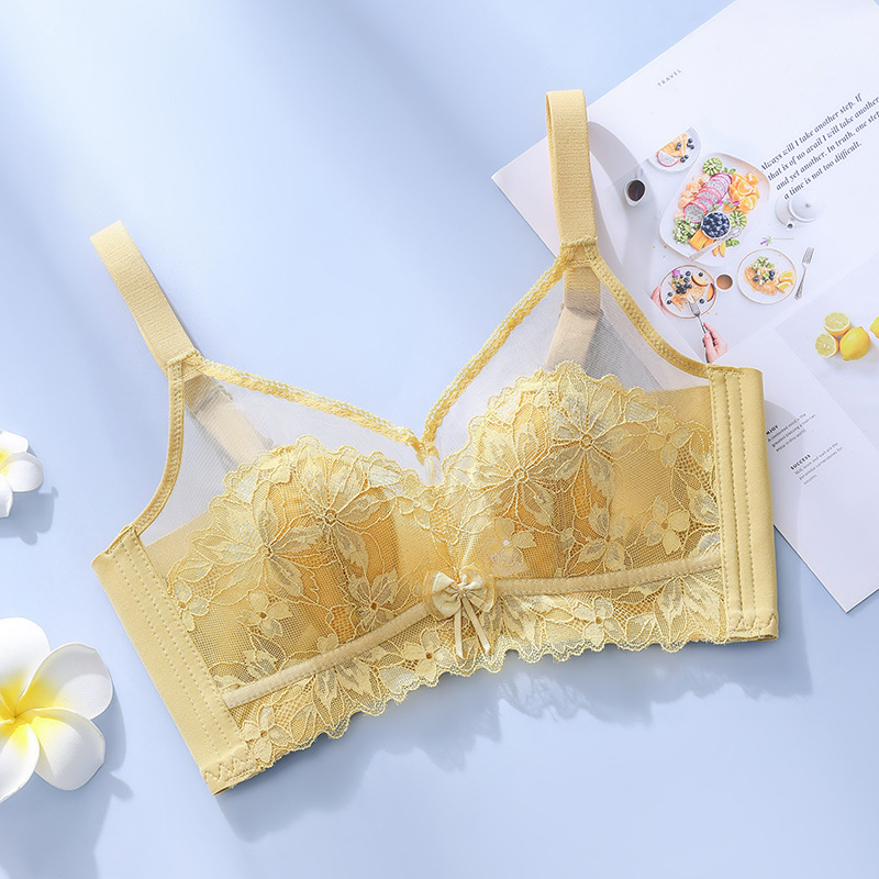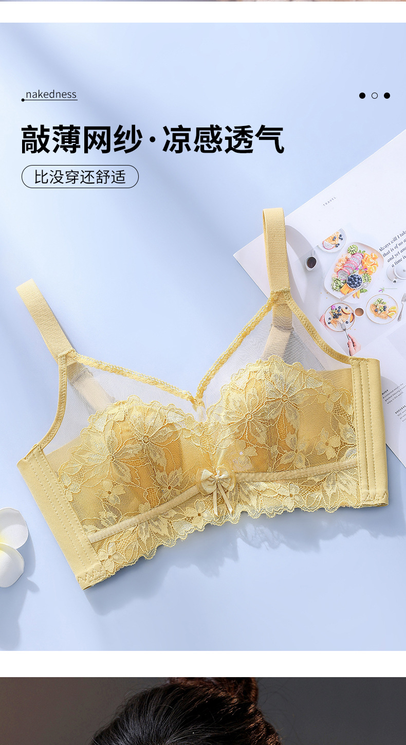 토끼 귀 크리스탈 컵 속옷 여성용 큰 가슴 작은 개더 업 여름 울트라 씬 조절 가능한 파라메리 가슴 비 림 브라