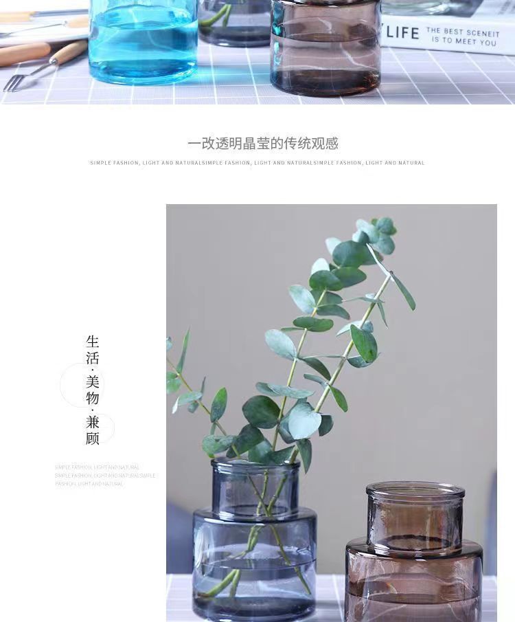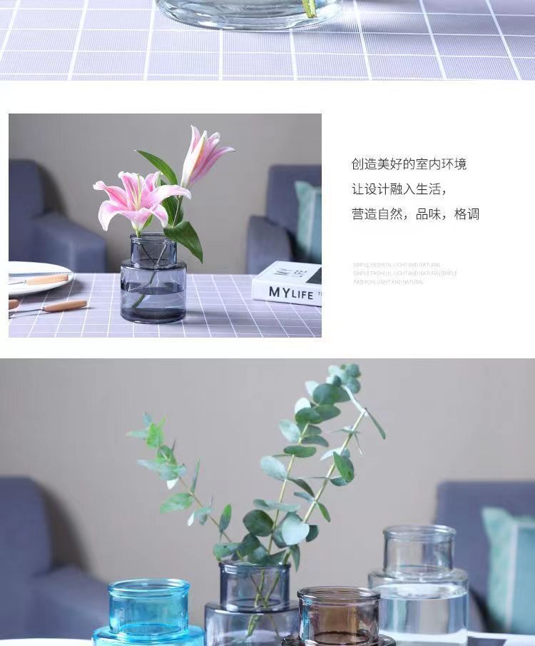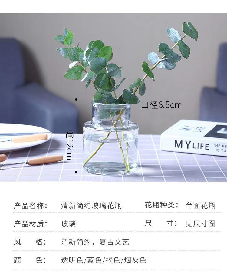 간단한 투명 수경 작은 꽃병 데스크탑 장식품 유럽 스타일 창조적 인 유리 꽃병 고급 장식스토어 가기