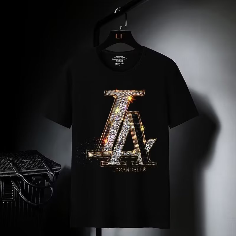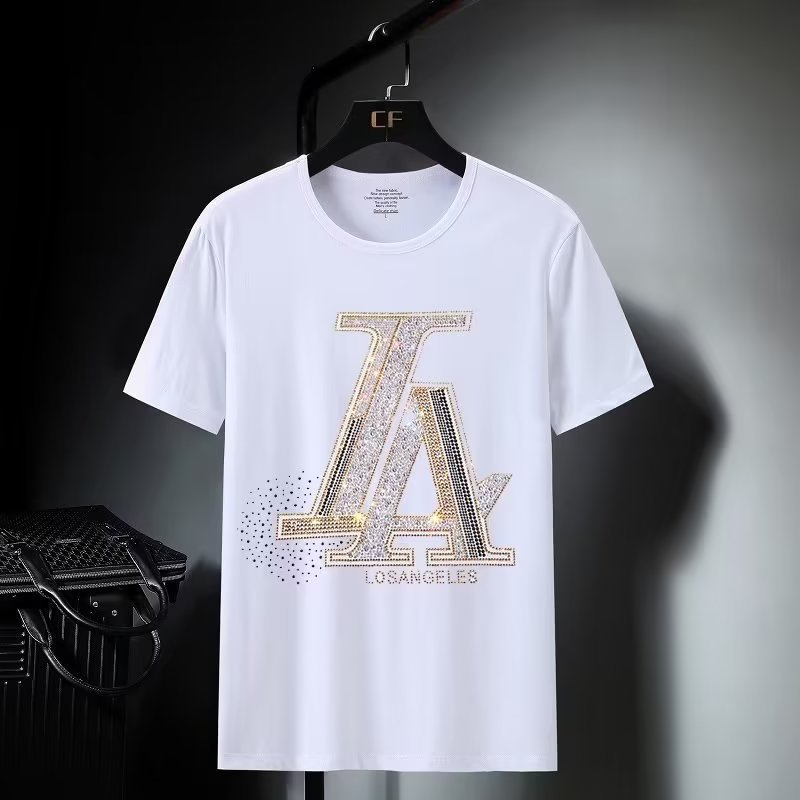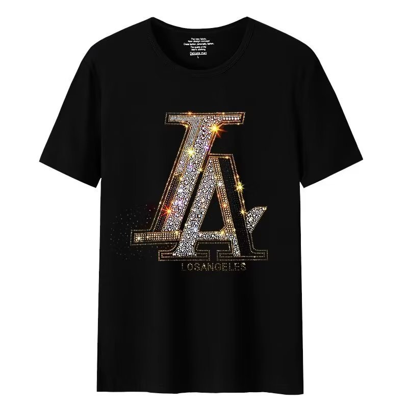 면 하이 엔드 핫 드릴링 레터 반팔 루즈한 플러스 사이즈 반팔 캐주얼 편안한 피부 친화 패션 트렌디 남성 틈새 티셔츠