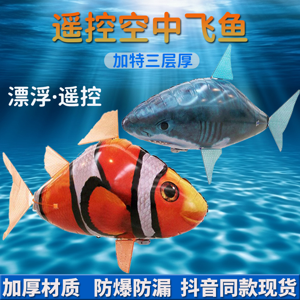 크로스보더 만화 원격 조종 날아다니는 물고기 틱톡 동일 스타일 풍선 상어 광대 물고기 결혼식 생일 장식 풍선 장난감스토어 가기