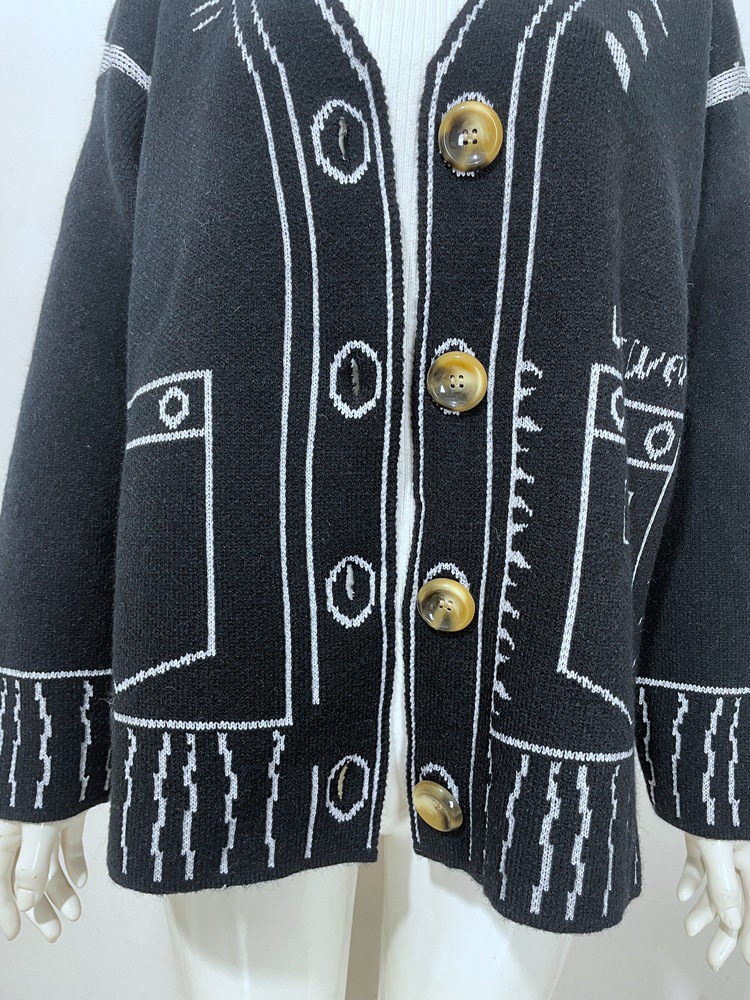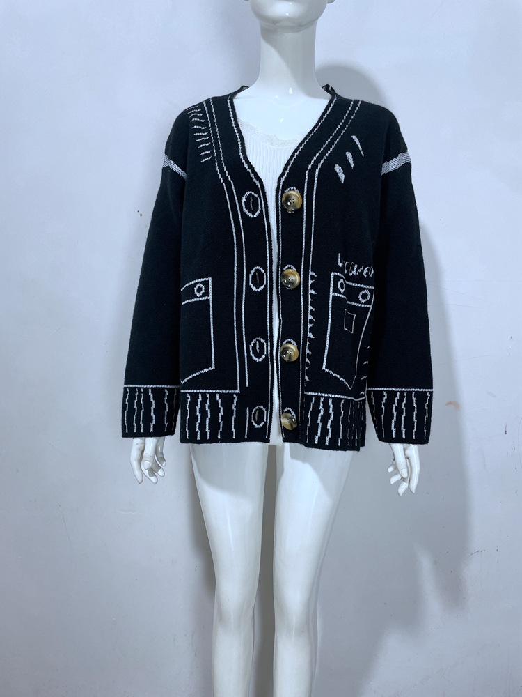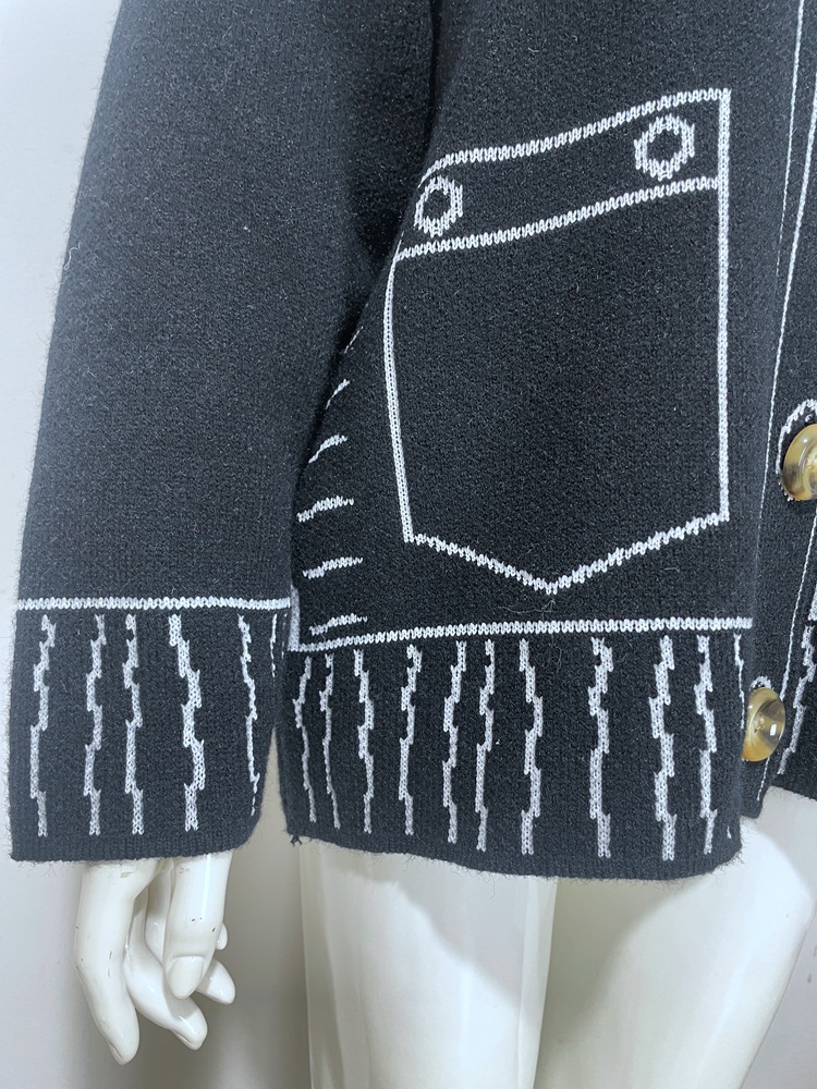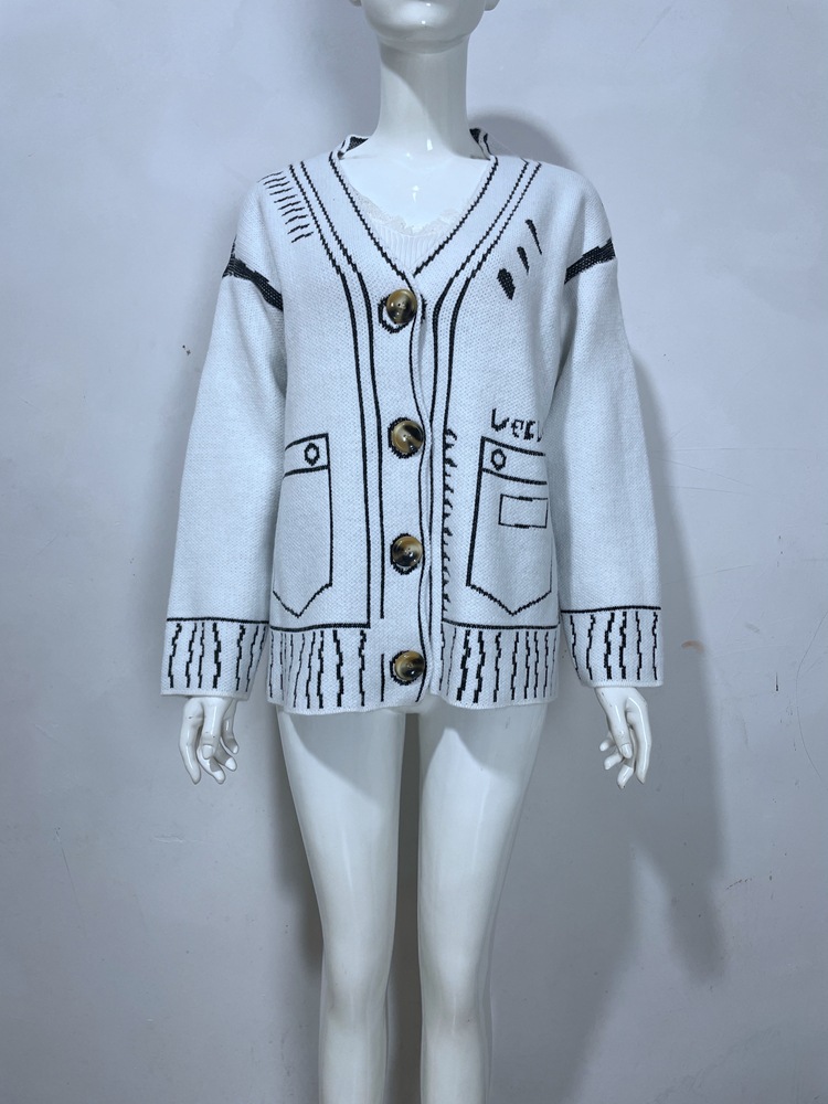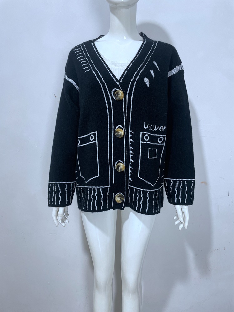 아마존 크로스 보더 새로운 유럽과 미국 코트 느슨한 색상 매칭 니트 버튼 카디건 해외 무역 장식 포켓 스웨터 여성스토어 가기