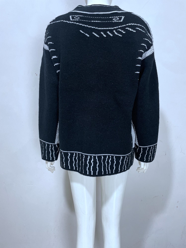 아마존 크로스 보더 새로운 유럽과 미국 코트 느슨한 색상 매칭 니트 버튼 카디건 해외 무역 장식 포켓 스웨터 여성