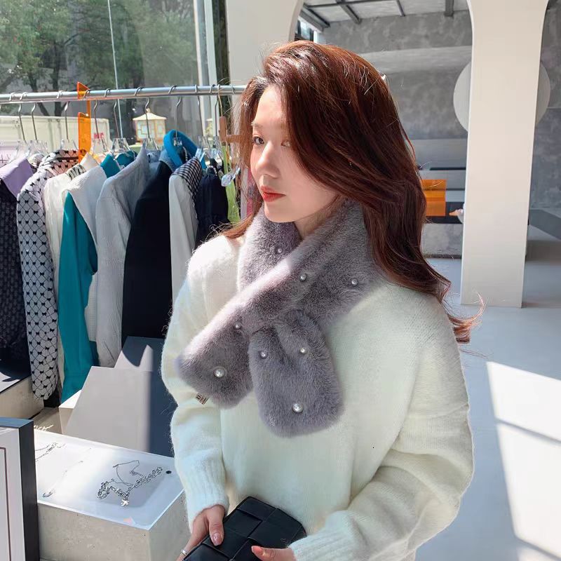 2023 스카프 여자 겨울 한국 스타일 여성 양모 봉제 달콤한 두꺼운 따뜻한 가을과 겨울 학생의 목 올매치 모조 토끼 모피스토어 가기