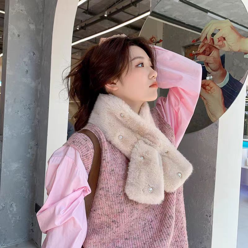 2023 스카프 여자 겨울 한국 스타일 여성 양모 봉제 달콤한 두꺼운 따뜻한 가을과 겨울 학생의 목 올매치 모조 토끼 모피