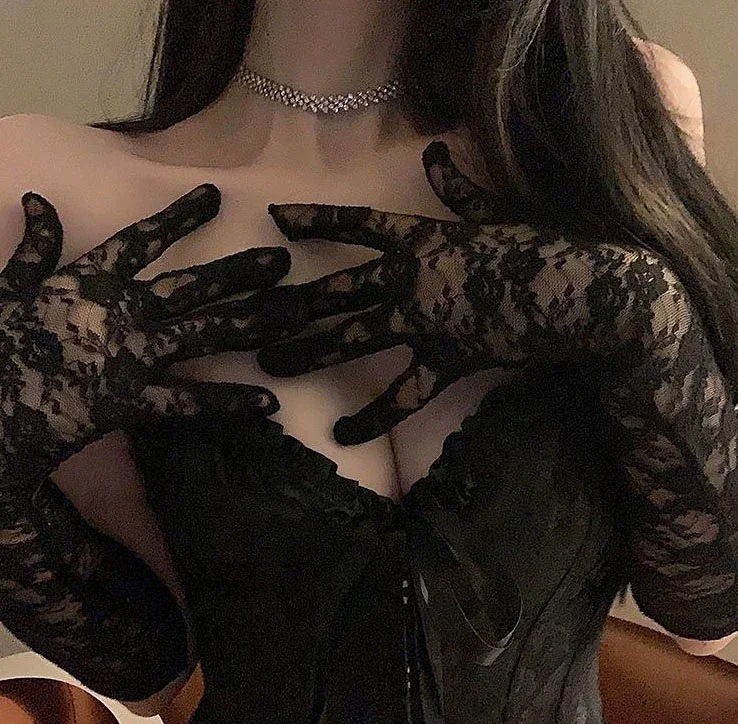 • 1131 (다크 나이트 로즈 섹시 블랙 레이스 장갑)