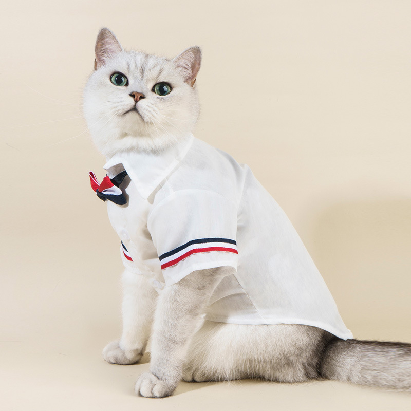 • 애완 동물 흰색 셔츠 + 컬러 줄무늬 나비 넥타이