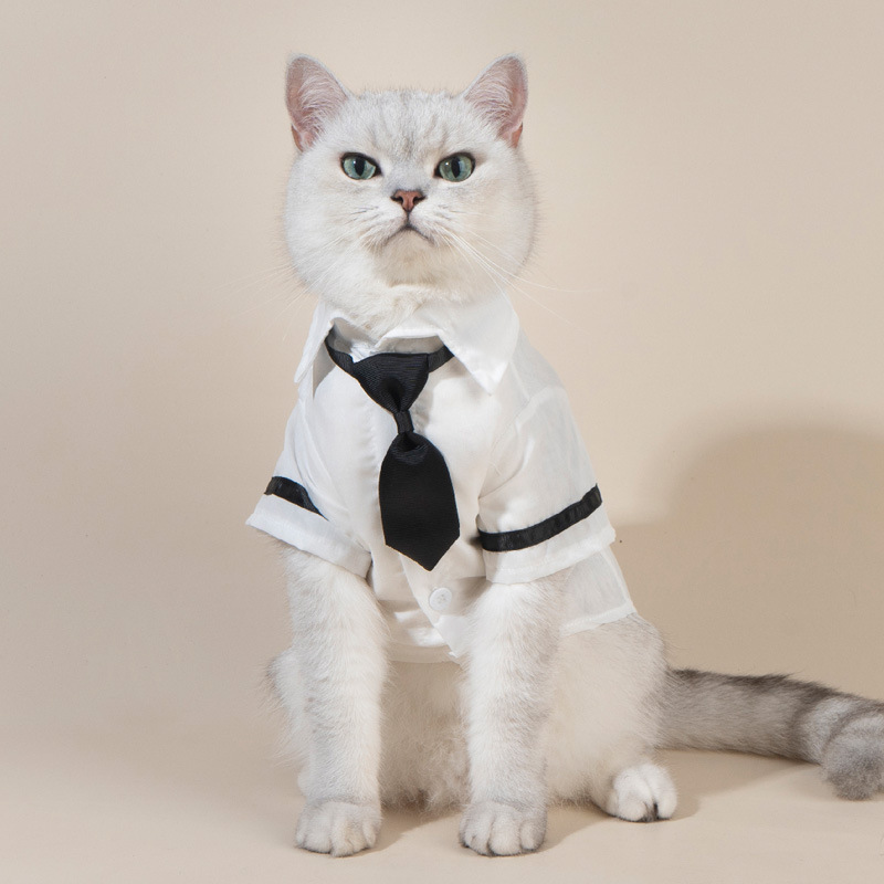 • 애완동물 흰 셔츠 + 검은 넥타이