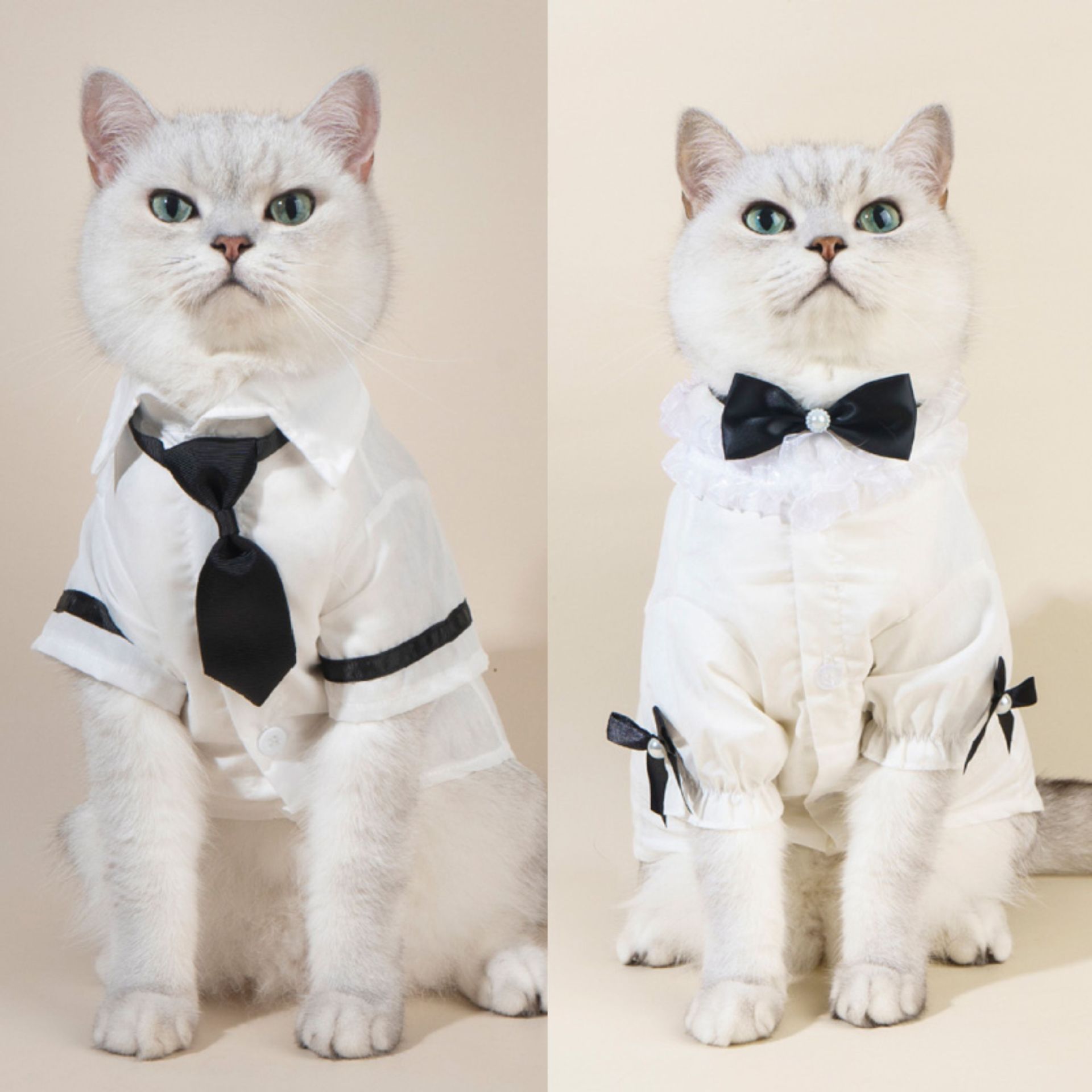 • 애완동물 흰 셔츠 + 검은 나비 넥타이