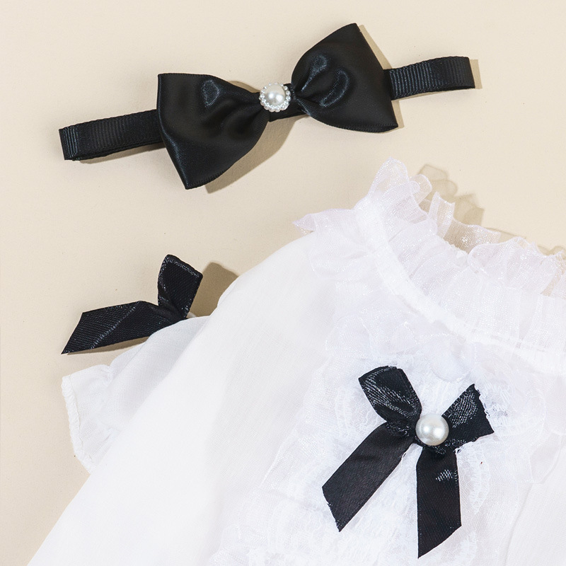 • 레이스 화이트 셔츠 + 검은 나비 넥타이