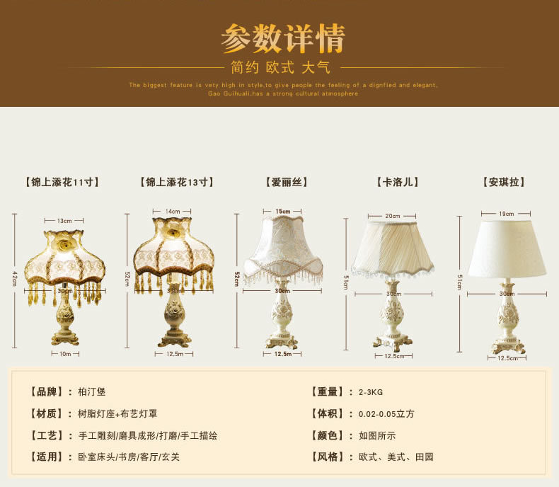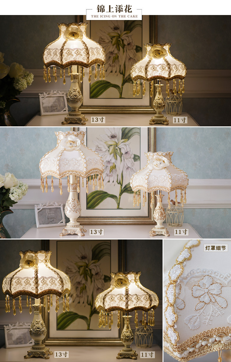 유럽식 테이블 램프 침실 장식 복고풍 창조적 인 낭만적 인 따뜻한 간단한 현대 웨딩 룸 거실 침대 옆 램프 도매