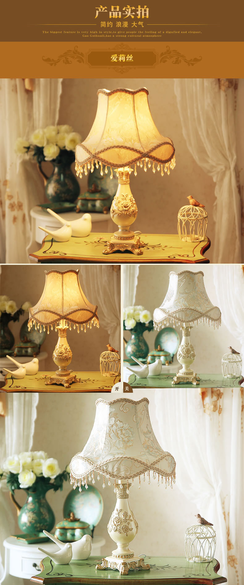 유럽식 테이블 램프 침실 장식 복고풍 창조적 인 낭만적 인 따뜻한 간단한 현대 웨딩 룸 거실 침대 옆 램프 도매스토어 가기
