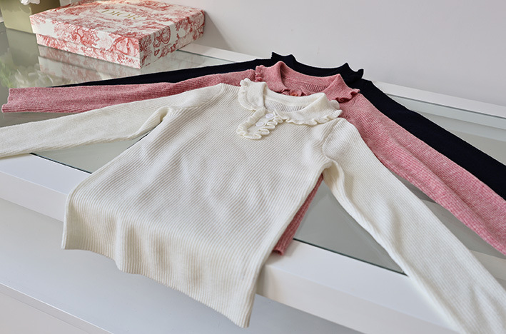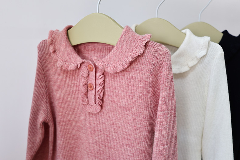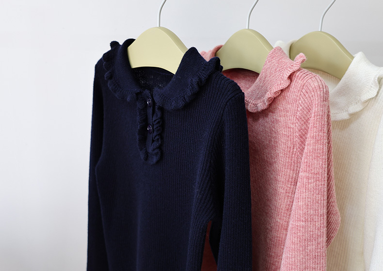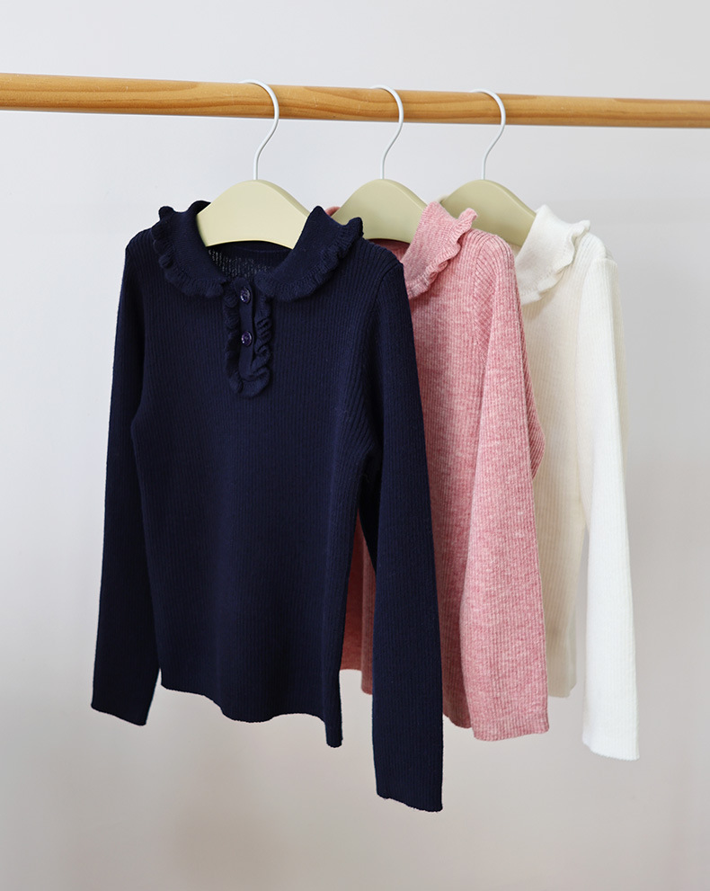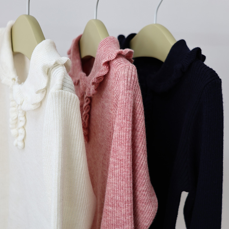 봄과 가을 소녀의 울 라펠 바닥 셔츠, 버진 레이스 핏 스트라이프 스웨터, 얇은 긴팔 풀오버, 신제품