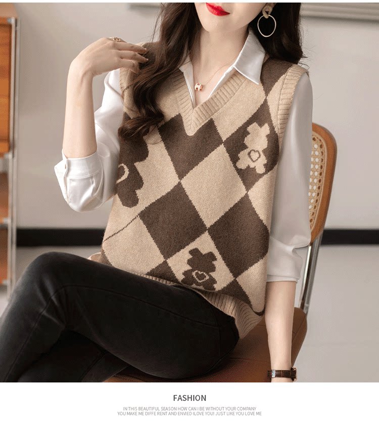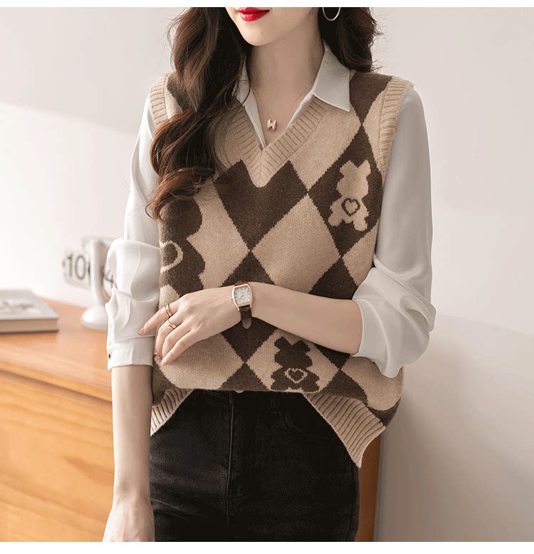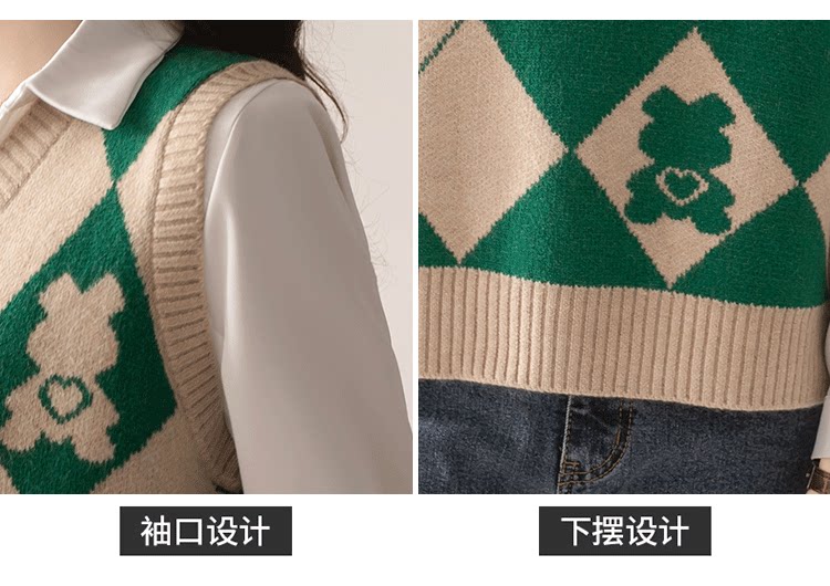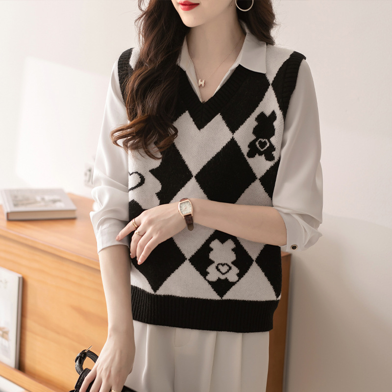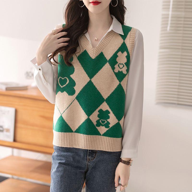 빈티지 마름모꼴 만화 나이 감소 니트 조끼 조끼 여자의 겉옷 봄 폭발 가을과 겨울 스웨터 조끼스토어 가기