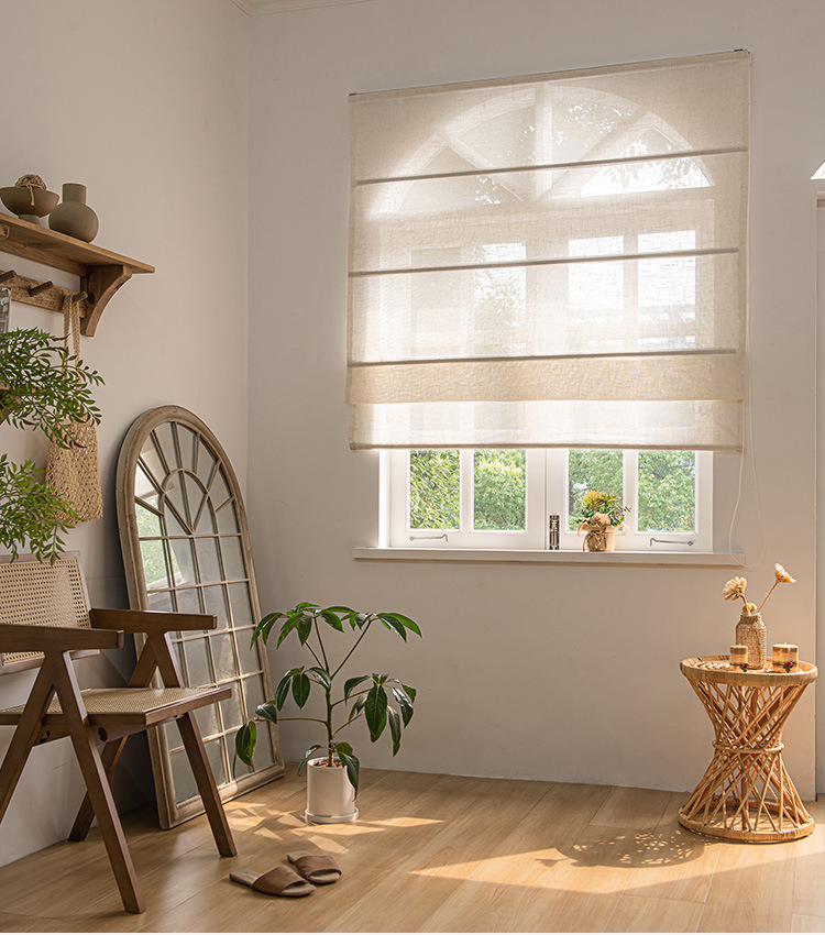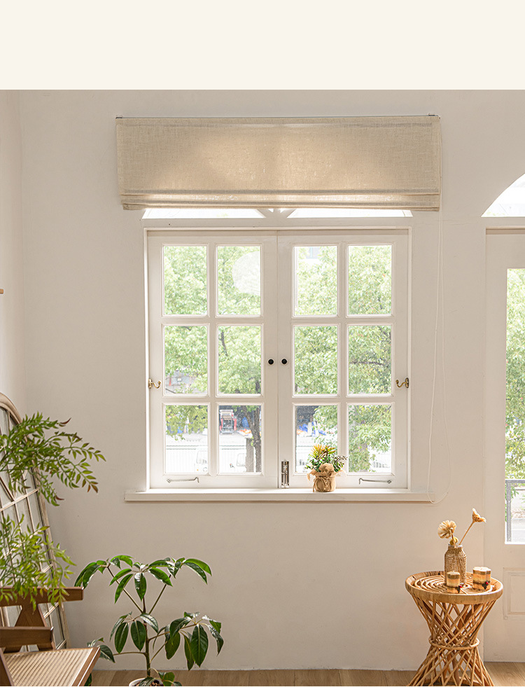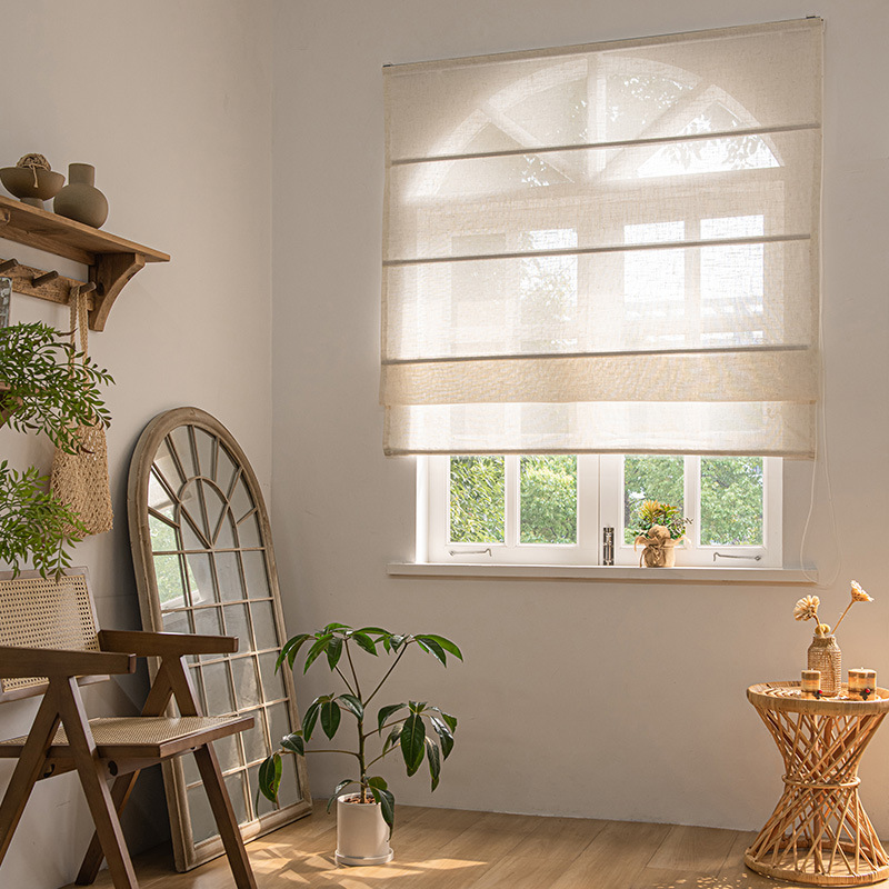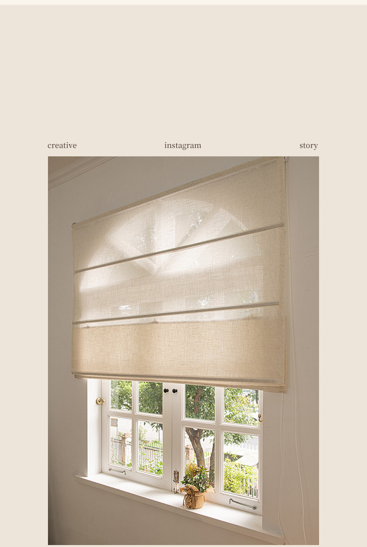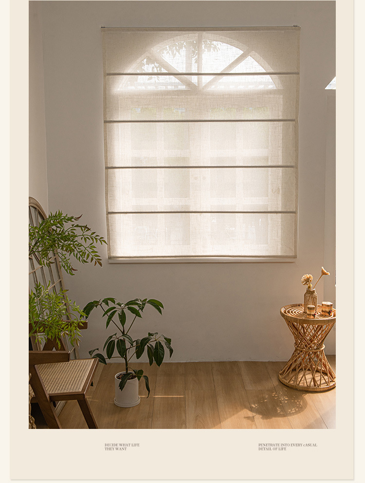 새로운 일본식 린넨 리프팅 로마 커튼 거실 발코니 침실 투명 침투성 접는 로마 커튼 커튼