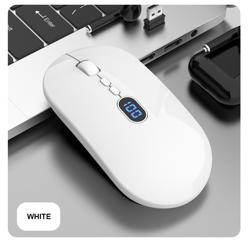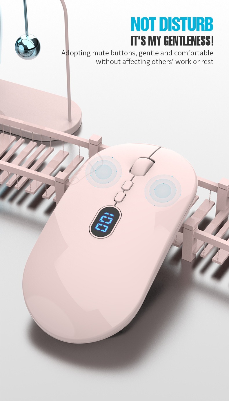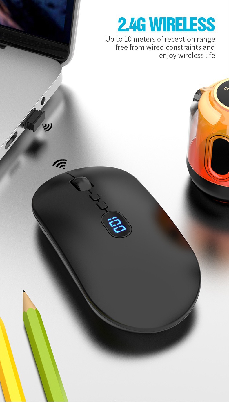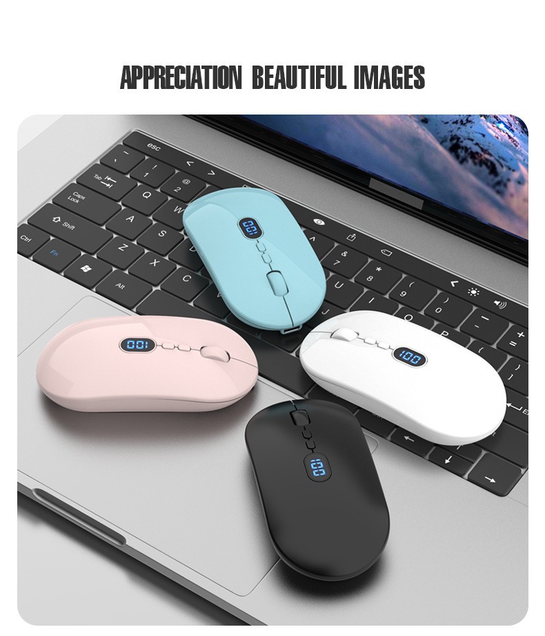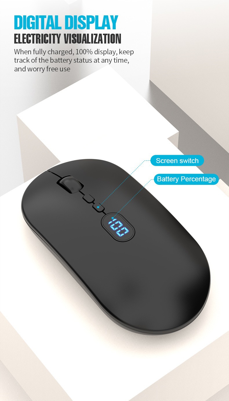 새로운 USB 화면 전원 표시 기능이 있는 무선 듀얼 모드 블루투스 마우스 충전식 노트북 사무실용 무소음 마우스