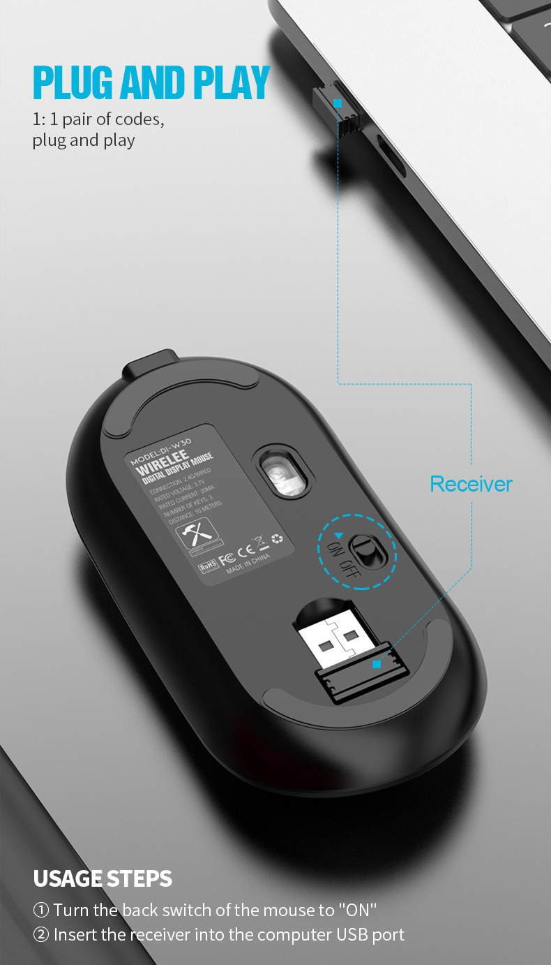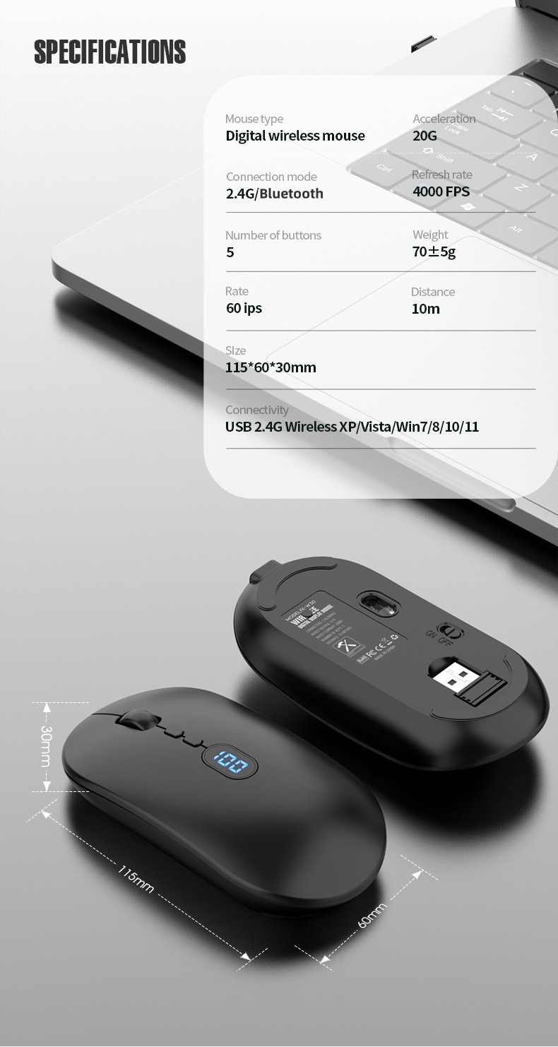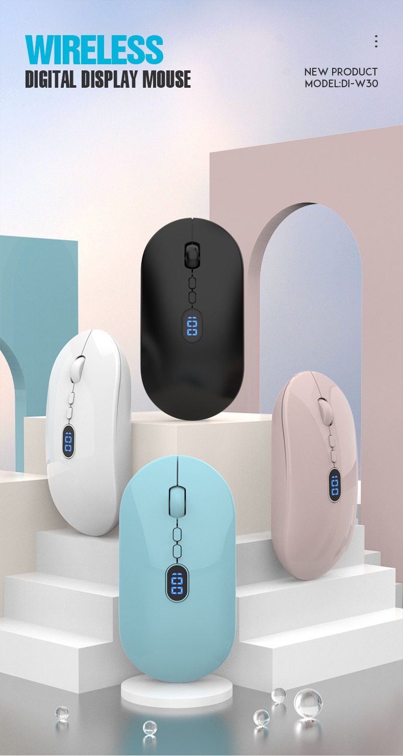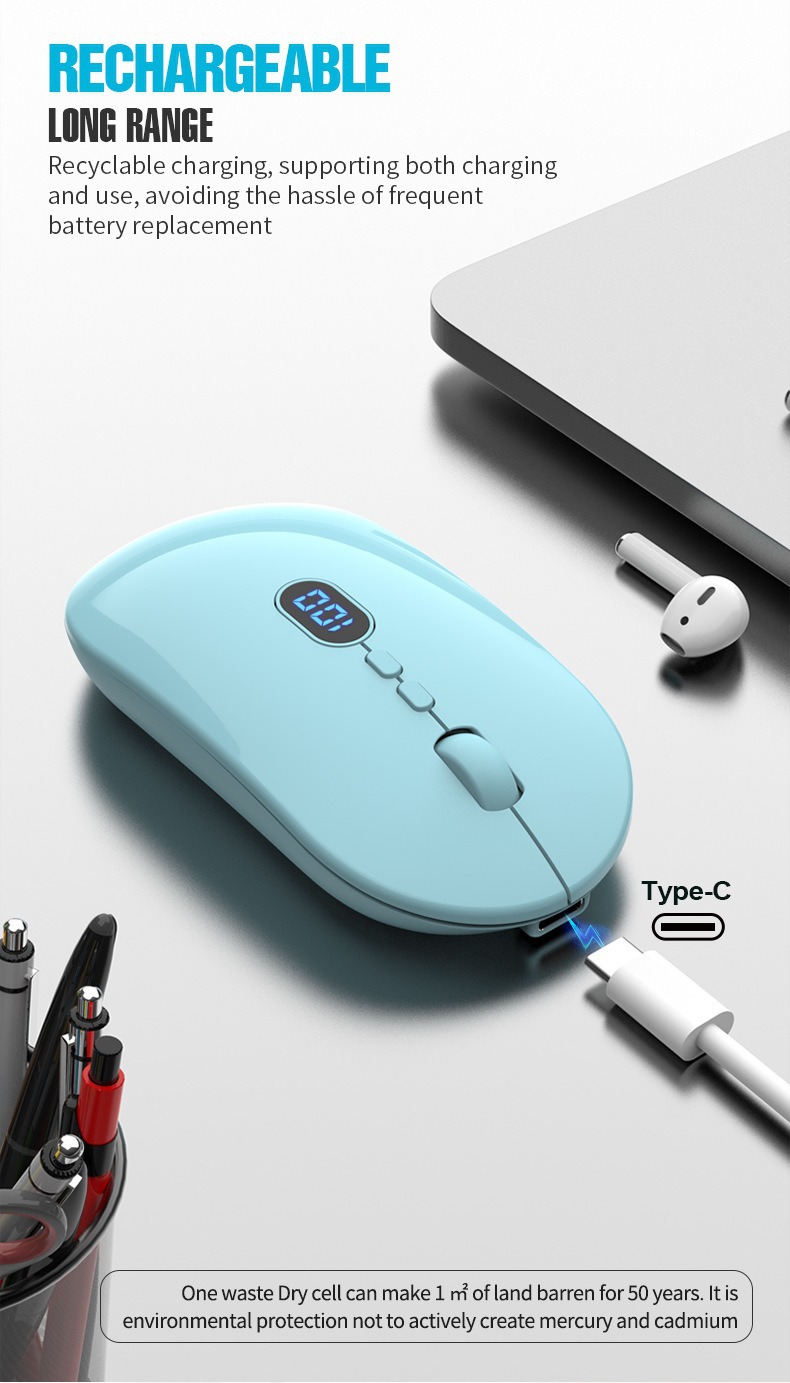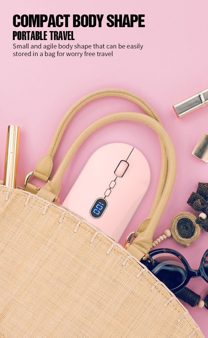 새로운 USB 화면 전원 표시 기능이 있는 무선 듀얼 모드 블루투스 마우스 충전식 노트북 사무실용 무소음 마우스
