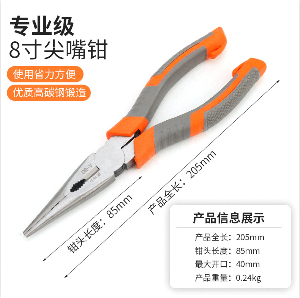 • 8 인치 바늘 코 플라이어 [하이 퀄리티 고탄소강] 12/상자, 72/상자