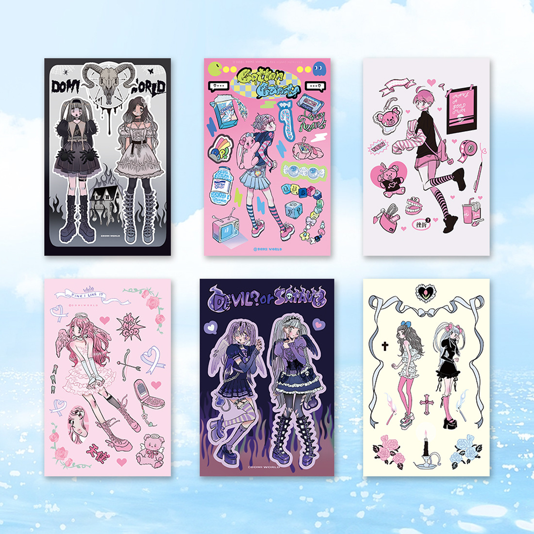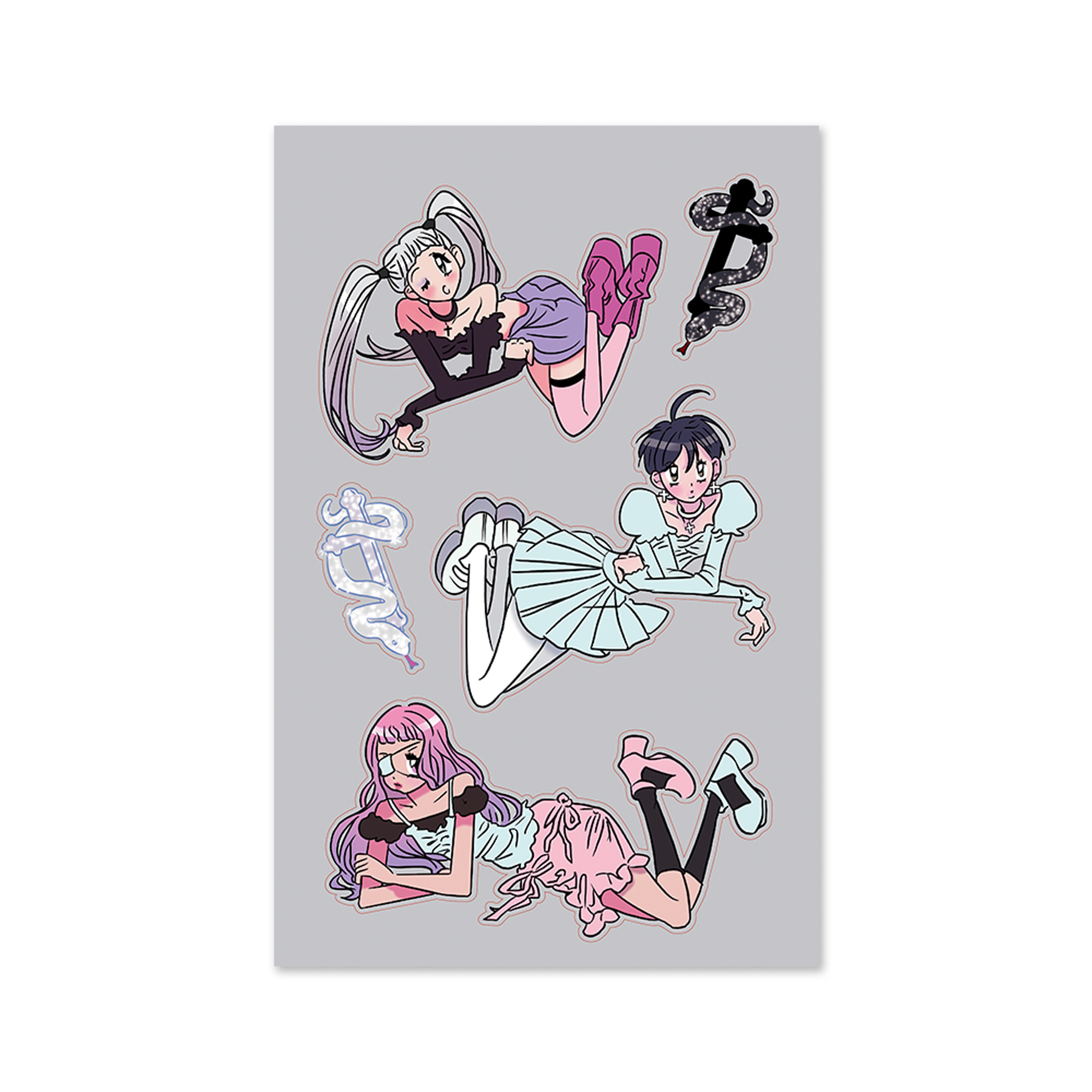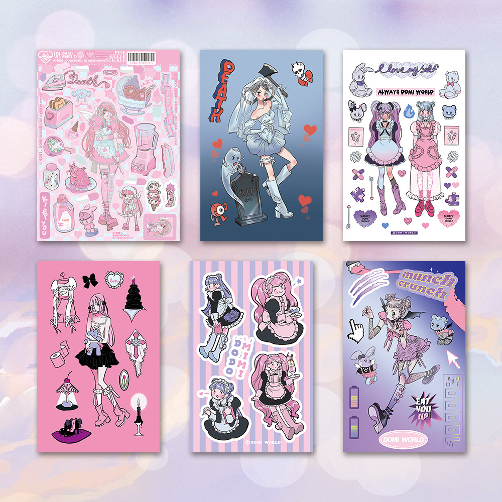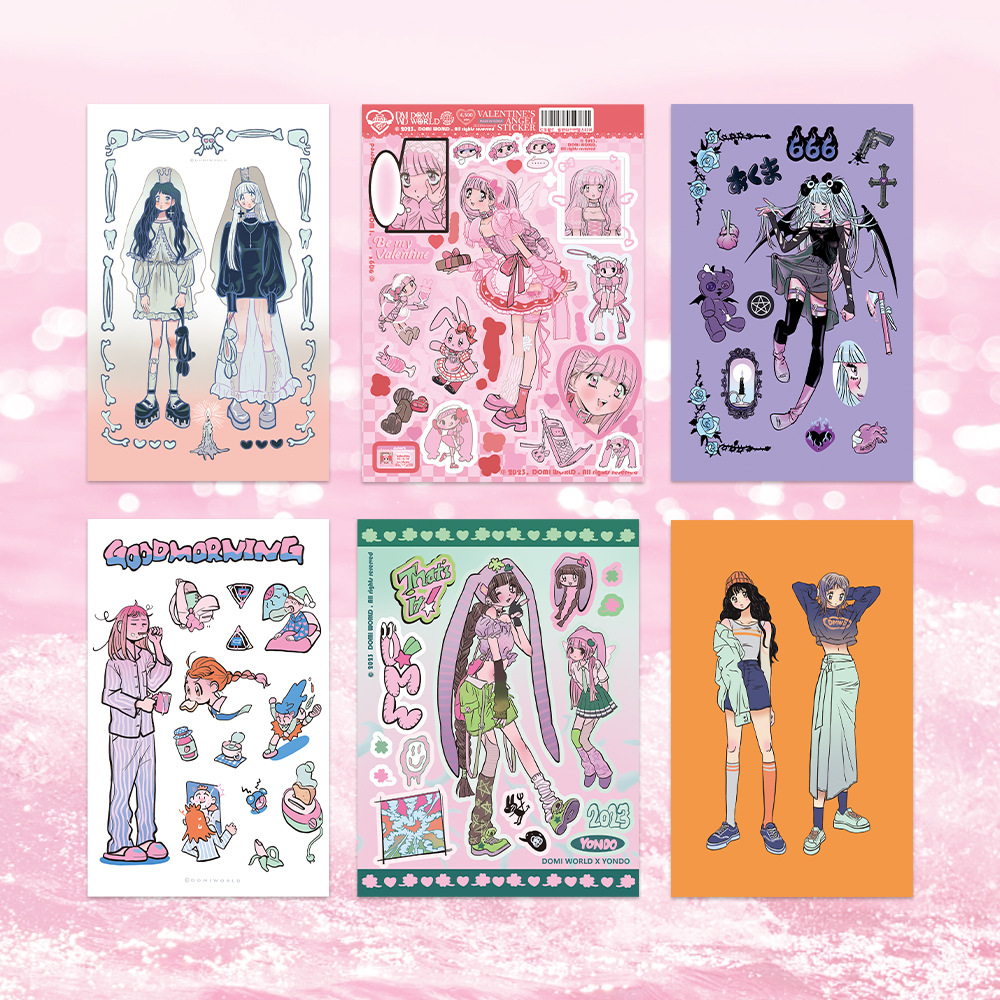 此链接内为48款人物贴纸(已模切),尺寸有3种,覆膜分哑光膜和镭射膜(星星镭射、素面镭射、爱心镭射等),无背卡,1张入1个OPP袋。