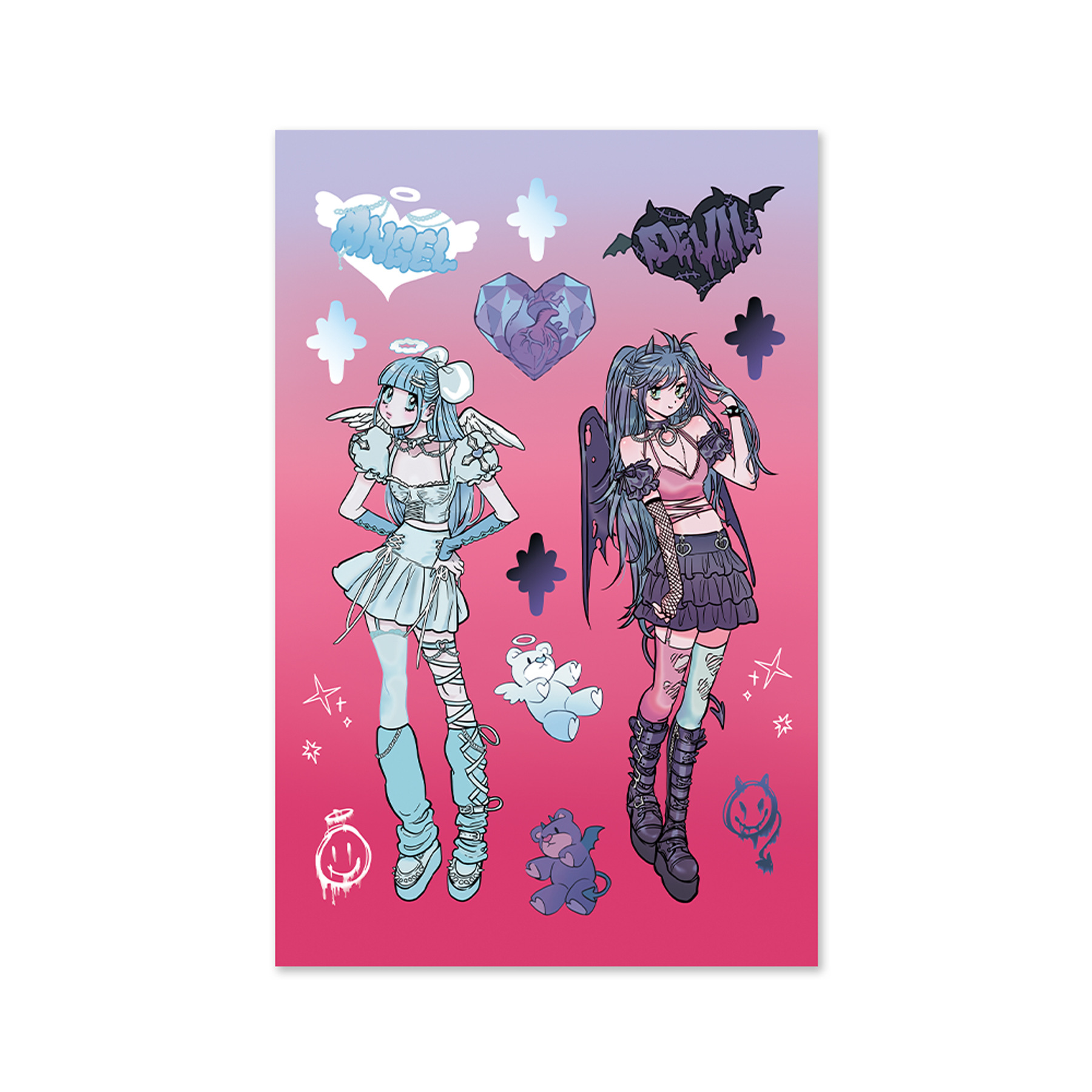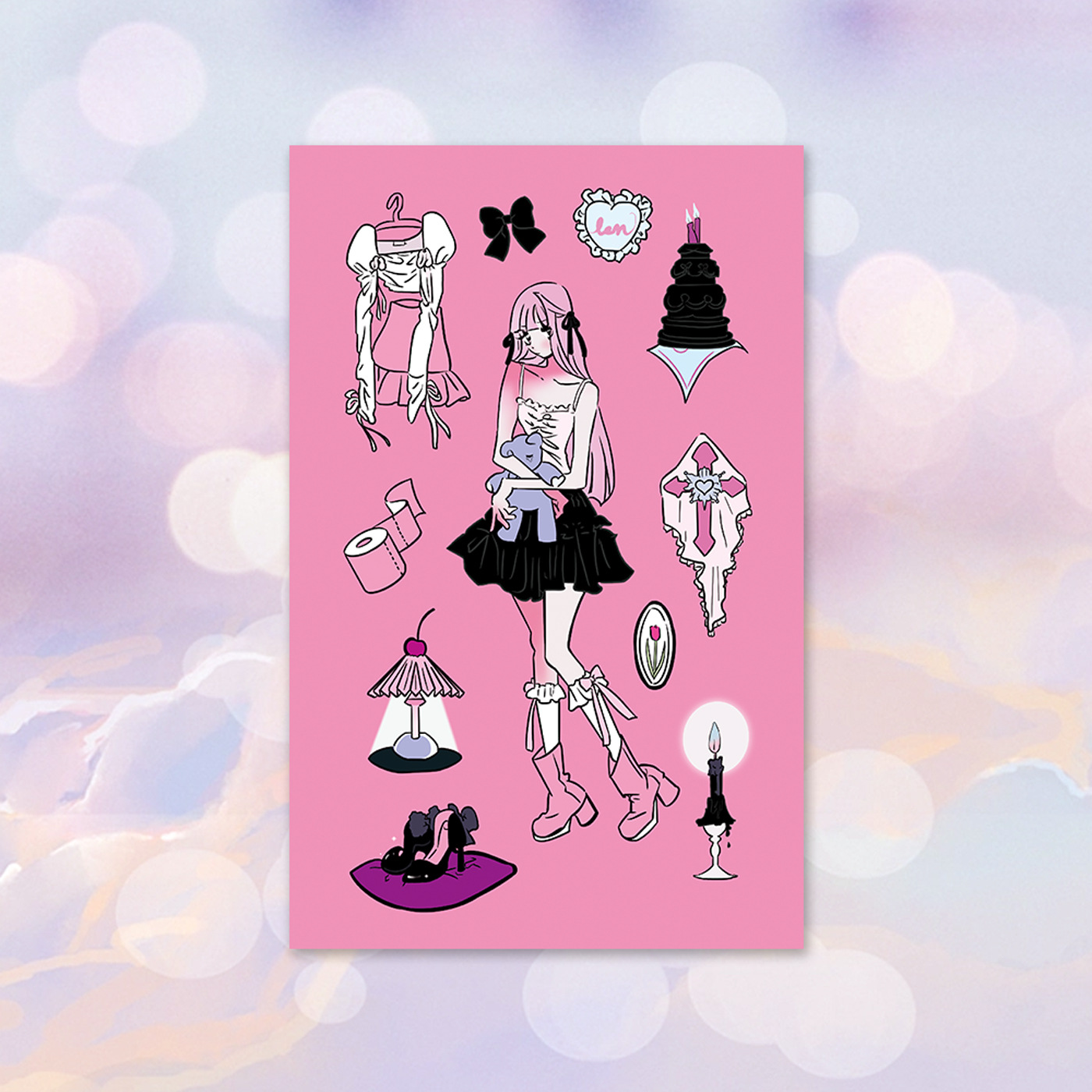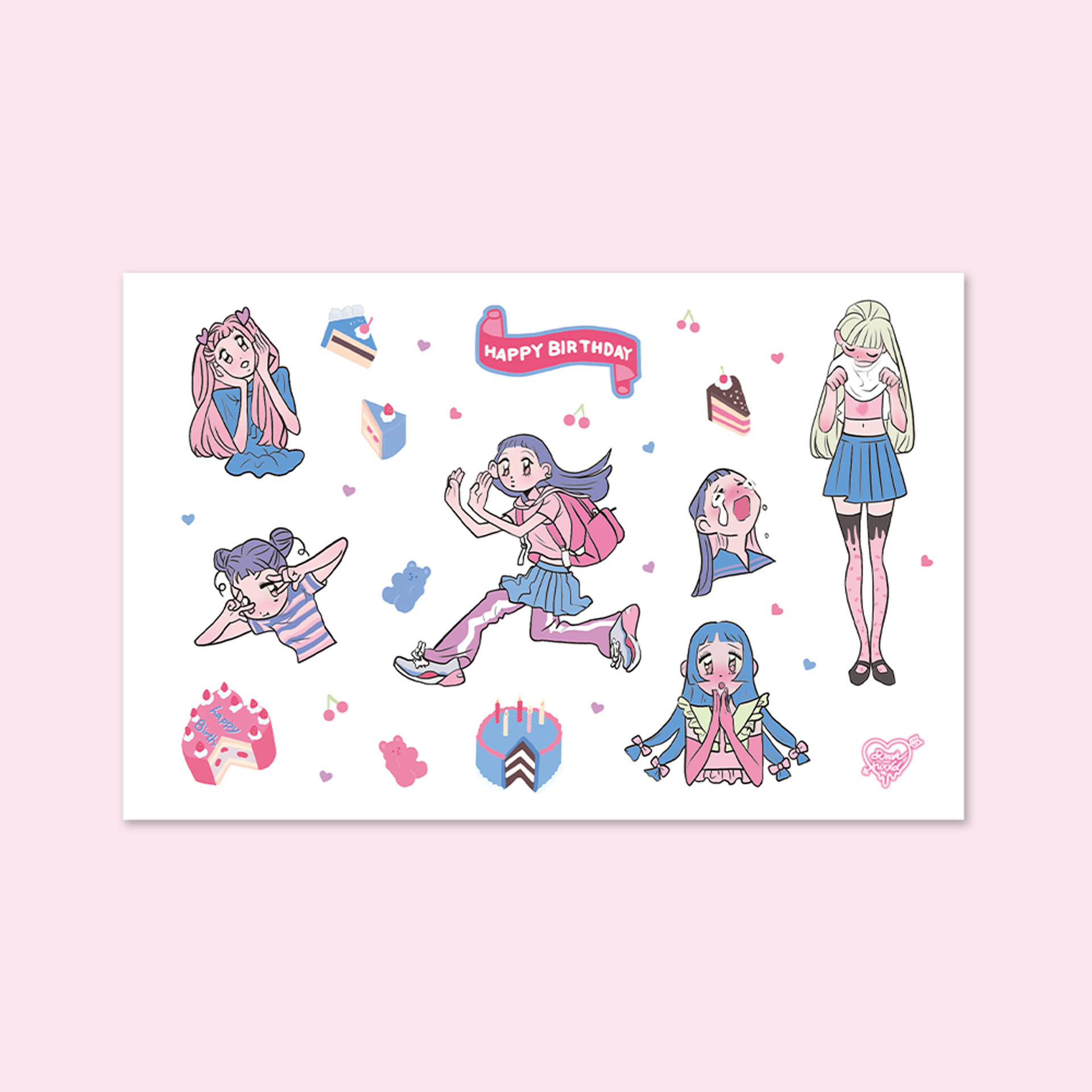 此链接内为48款人物贴纸(已模切),尺寸有3种,覆膜分哑光膜和镭射膜(星星镭射、素面镭射、爱心镭射等),无背卡,1张入1个OPP袋。